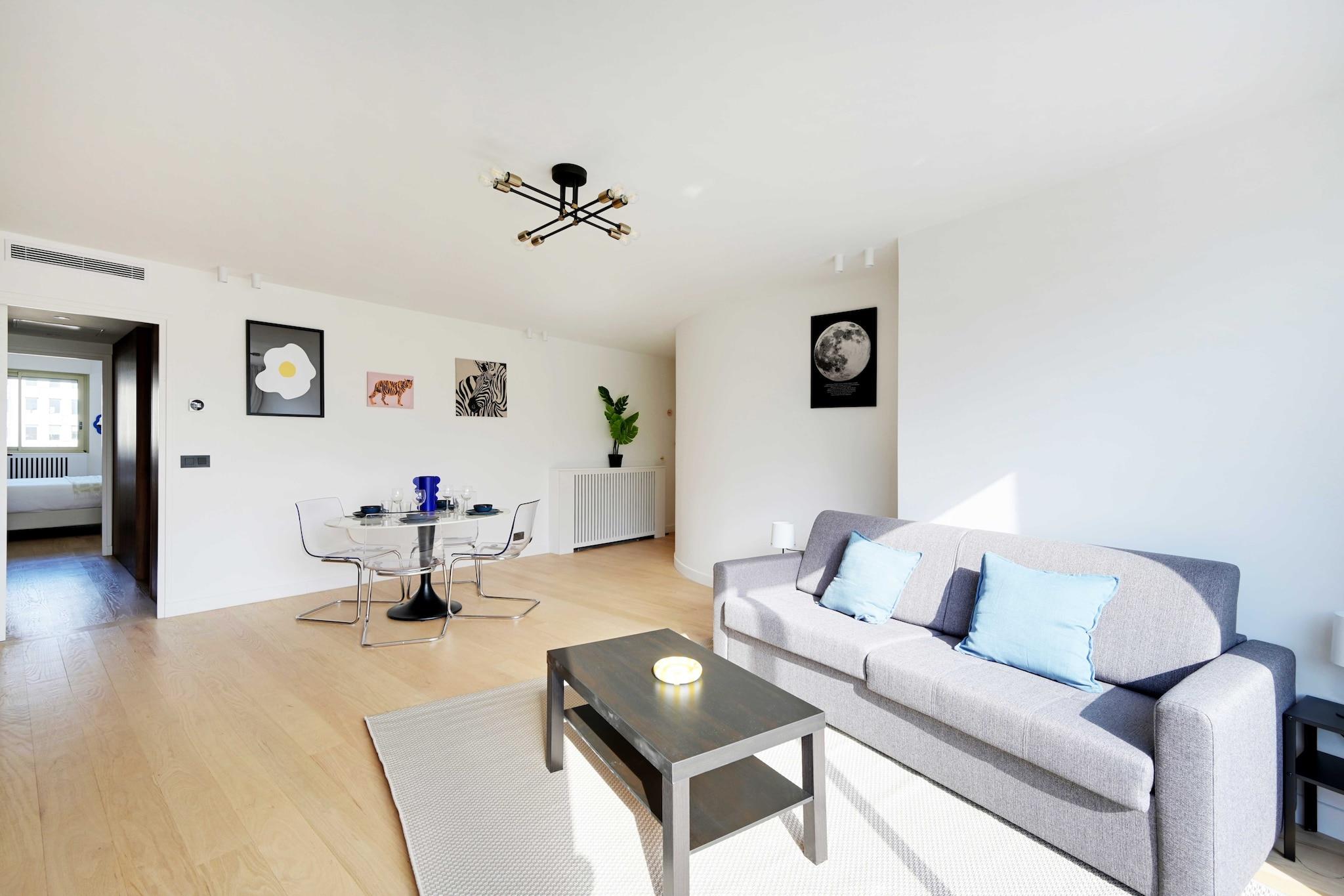På 6. etage: (Stue(Fjernsyn, sofahjørne), åbent køkken(spisebord, kakkelovn, kogeplade, elkedel, brødrister, kaffemaskine, ovn, mikrobølgeovn, opvaskemaskine , køleskab, , , Wine glasses), soveværelse(Queen Bed), badeværelse(bruser, toilet, føntørrer, , , )) , , , , , Førstehjælp, Legeområde, køleskab, tørretumbler, vaskemaskine, balkon eller terrasse, varme, klimaanlæg, strygejern, føntørrer, Håndklæder/sengelinned (inkl.), , , Carbon monoxide detector, Cleaning Disinfection, Downtown, Enhanced cleaning practices, High touch surfaces disinfected, Long term stays allowed, Path to entrance lit at night, Room-darkening shades, Town