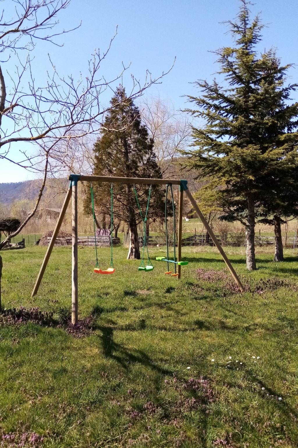 Private terrace with garden furniture, roller blind and barbecue. The adjoining lawn provides space for sun loungers and poufs. A play area (swing with double swing, etc.) is available for children under adult supervision. A fire pit is available for evenings under the stars. Outdoor games and bicycles are available on request. The grounds are fenced and therefore perfectly suited to children. Parking available.