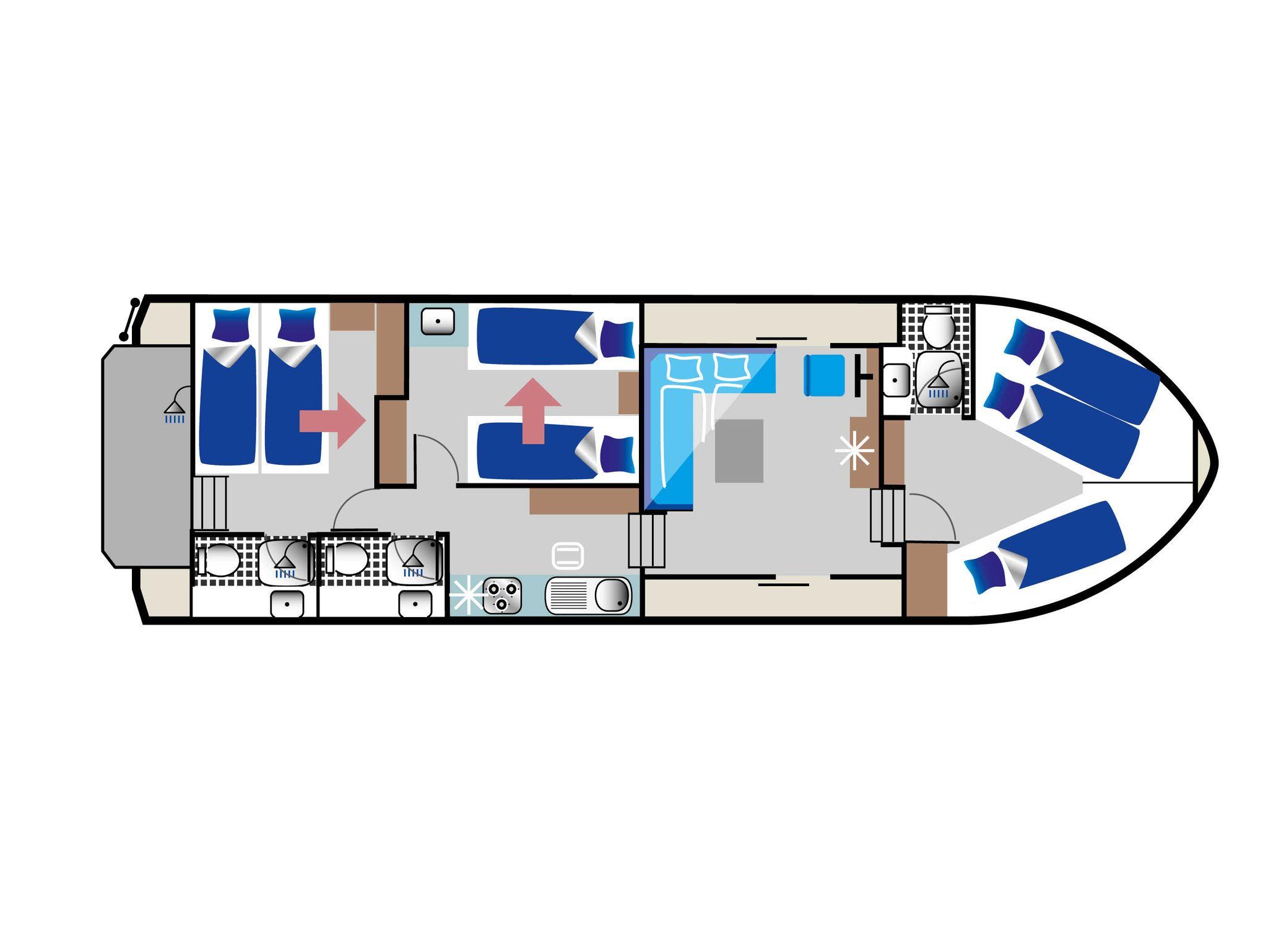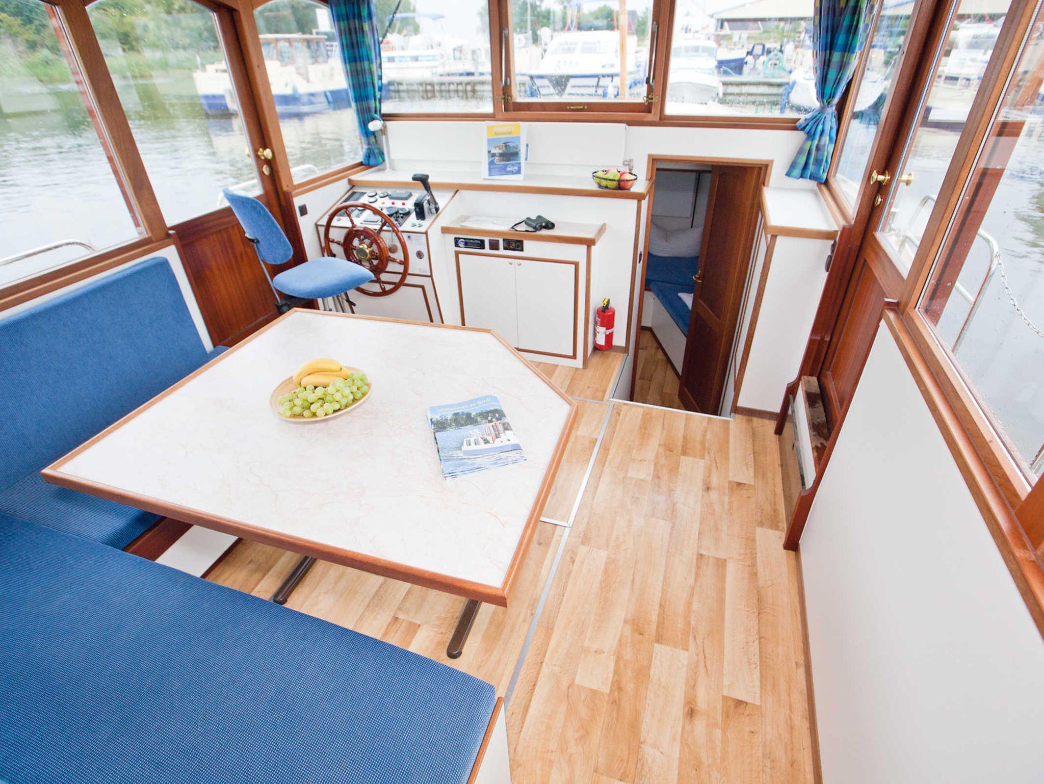 Dieses moderne Hausboot im traditionellen Stil ist leicht zu manövrieren und bietet allen Komfort über und unter Deck. Es ist ideal für drei Paare oder mehrere Familien.
