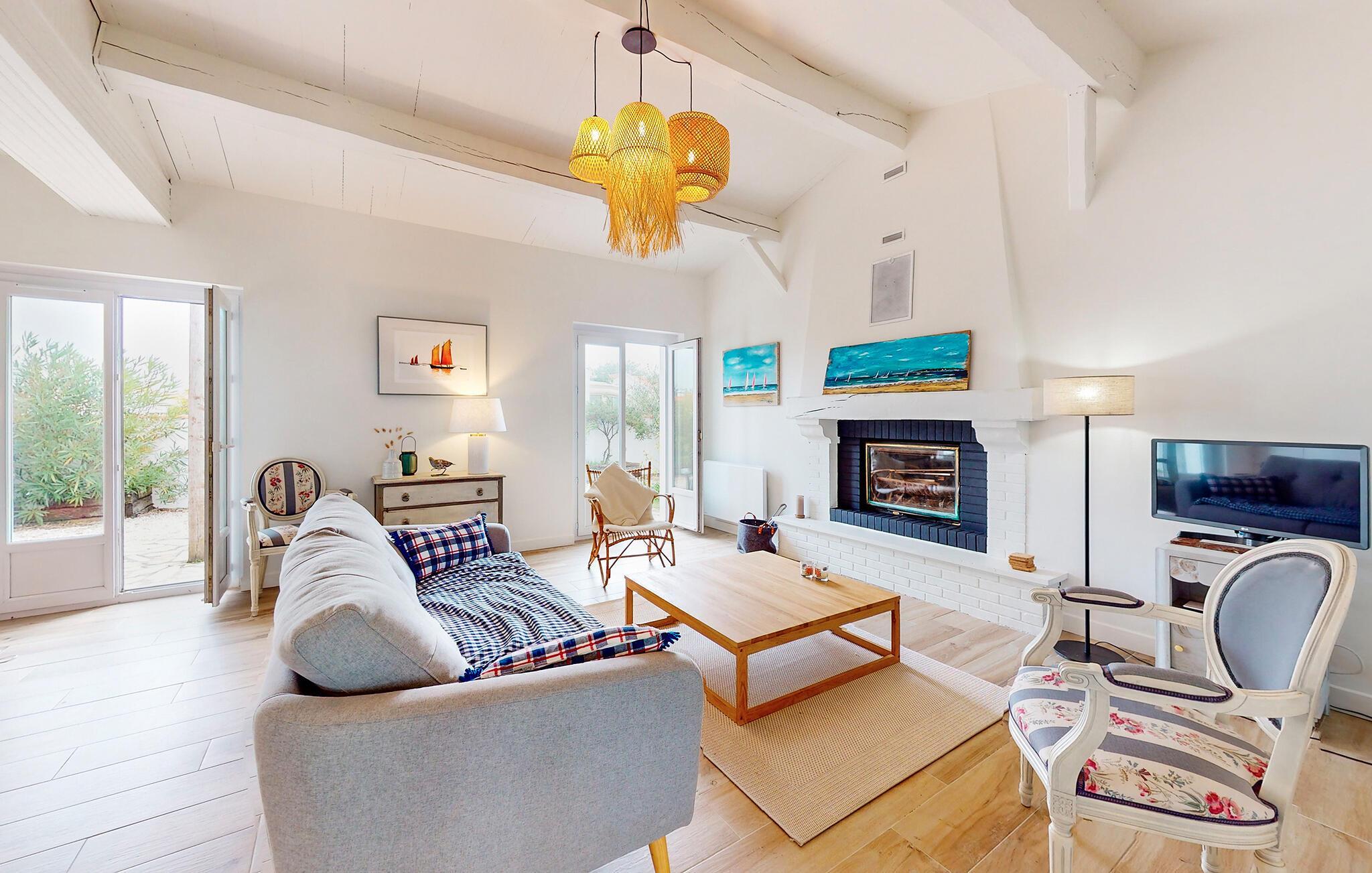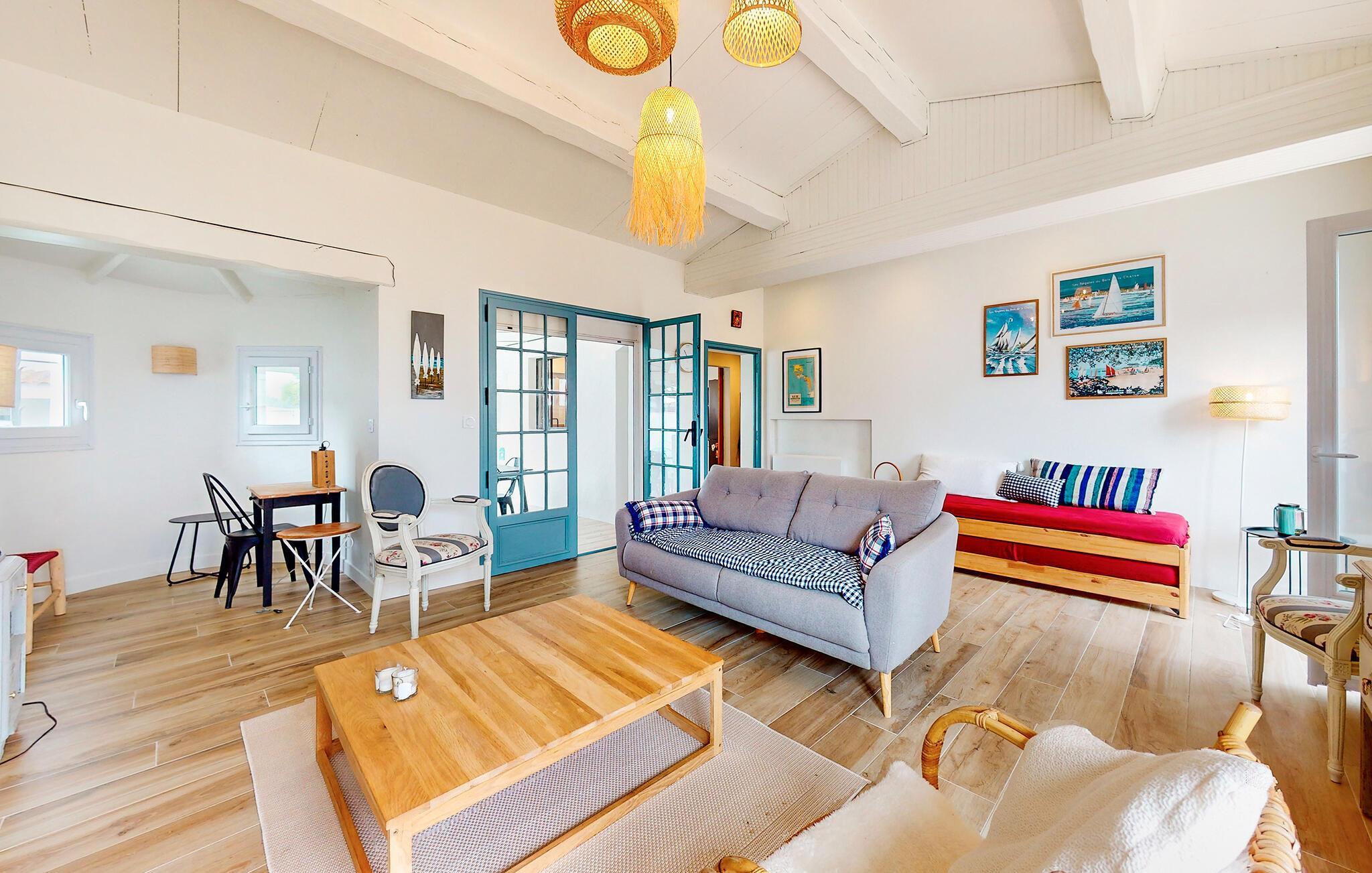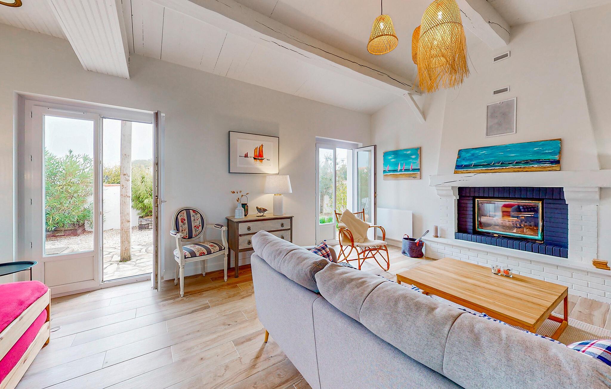 Dette charmerende feriehus på Noirmoutier-en-l'Île byder jer velkommen med et stilfuldt interiør og harmoniske farveindslag. Huset er fordelt på to etager og har hyggelige opholdsrum samt et veludstyret køkken, hvor I kan nyde feriedagene. Vinterhaven og den familievenlige have lægger op til fælles stunder, uanset om det er morgenmad i det fri eller afslapning i haven. Et lille nabohus kan lejes ved behov, perfekt til en ferie med venner eller hele familien.