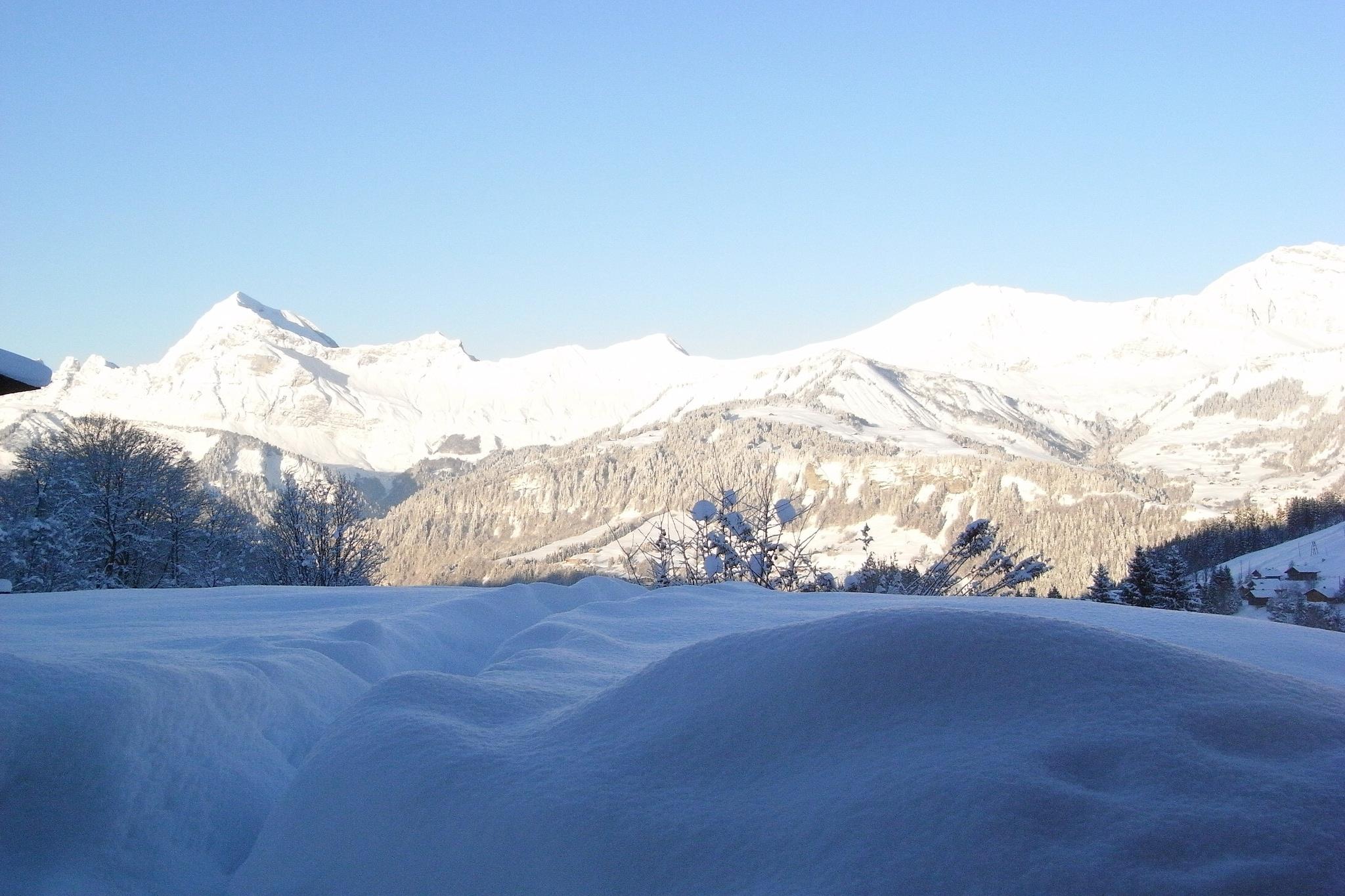 I den smukke omgivelser i Val dArly mellem Mont Blanc og Beaufortain er et glimrende, autentisk alperområde, Notre Dame Bellecombe (1150m), som giver dig en unik feriemulighed. I vinterperioden kan du blive i en af disse 4 hyggelige hytter og nyde mere end 150 km skiløjper (skilift inden for 300 m). Om sommeren er der nok at nyde (mountainbiking, minigolf, ridning, tennis, svømning, fiskeri, glidebane, parasailing, vandreture ..). For børnene er der en smuk legeplads. Fra hytten har du en fantastisk panoramaudsigt over "Aravis" og de nærliggende bjerge. Megeve (15km), St.Gervais, (20km), Chamonix (45km), Albertville (30km).