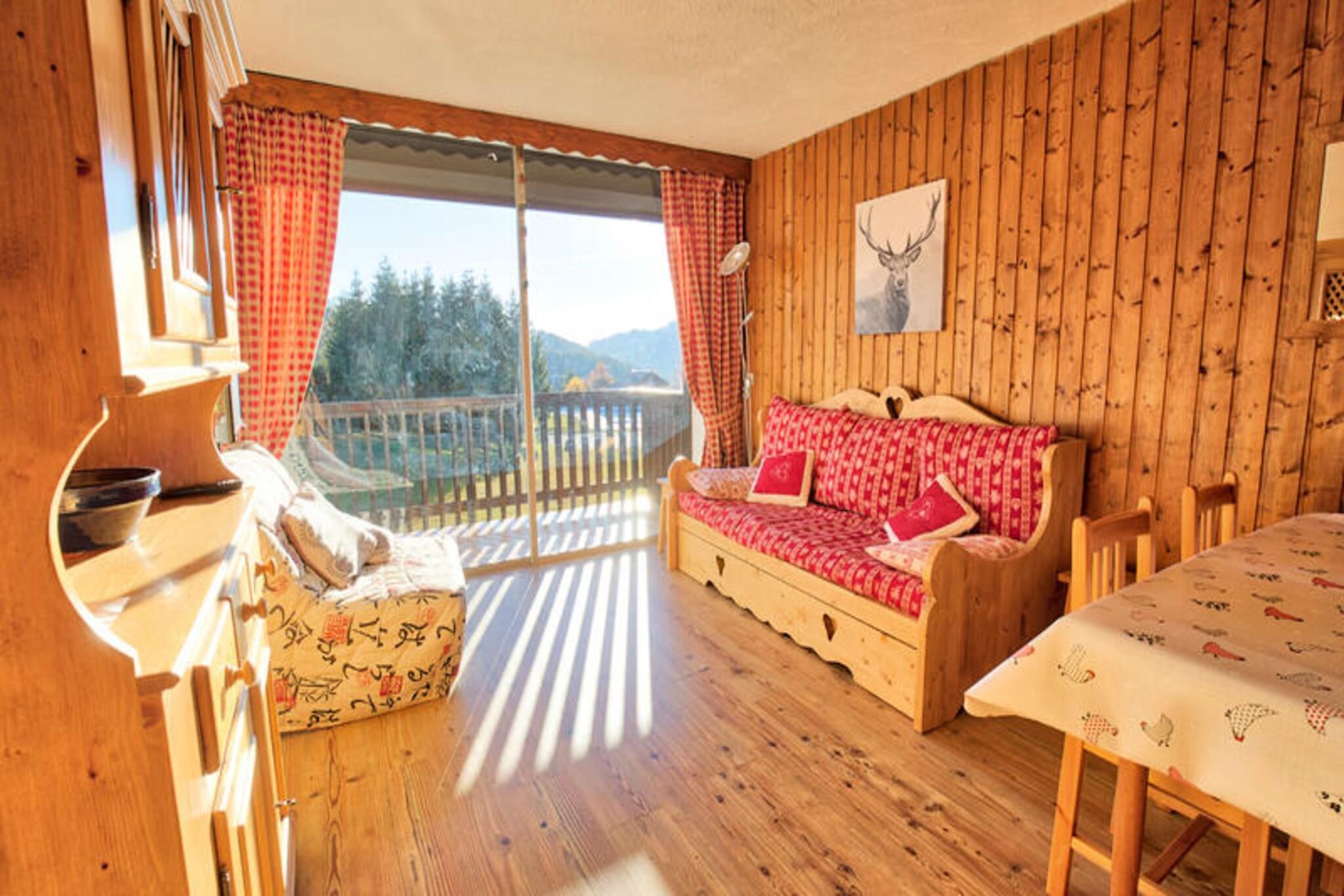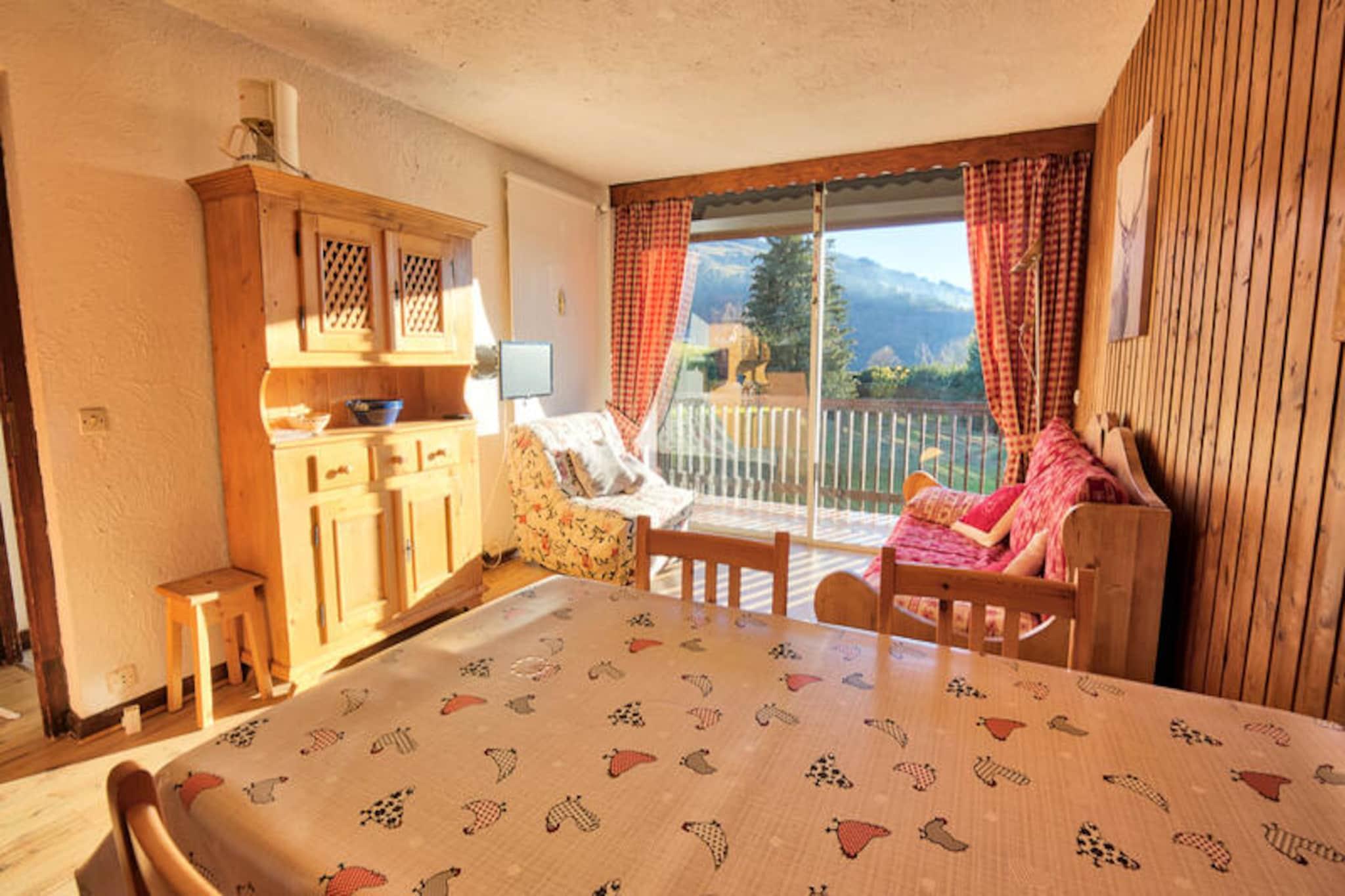 Midt i den fortryllende alpine charme i Notre Dame de Bellecombe tilbyder denne dejlige lejlighed i Les Alpages-residensen et perfekt tilflugtssted for bjergentusiaster. Vågn op til den fredfyldte skønhed i Mont Charvin og dalen fra din private 10 m² store balkon, hvor hver årstid tegner et unikt naturmesterværk. Uanset om du er her for de spændende skiløjper i Espace Diamant eller de rolige sommerløjper, placerer denne ejendom dig i hjertet af det hele. Landsbyens autentiske savoyard-atmosfære og nemme adgang til butikker, aktiviteter og tjenester sikrer en problemfri ferieoplevelse. \n\nIndvendigt er lejligheden omhyggeligt designet til komfort og praktisk anvendelighed. Stuen, badet i naturligt lys, indbyder til hyggelige sammenkomster med familie eller venner, komplet med et fladskærms-tv til underholdning. Det åbne køkken er udstyret med moderne apparater, herunder keramisk kogeplade, ovn, køleskab og mikrobølgeovn, hvilket gør madlavning til en leg. Sovearrangementer imødekommer forskellige behov med et dobbeltværelse, en enkelt sovesofa og en udtræksseng i stuen. Badeværelset har et afslappende badekar, og det separate toilet øger bekvemmeligheden. Yderligere faciliteter inkluderer et skirum, adgang til elevator og ureserveret udendørs parkering. Kæledyr er velkomne, hvilket bidrager til den hjemlige følelse. \n\nUd over boligen tilbyder landsbyen uendelige muligheder for udforskning. Om vinteren kan skiområdet Espace Diamant prale af 192 km sammenhængende pister, der henvender sig til alle niveauer. Sommeren forvandler landskabet til et paradis for vandreture og mountainbiking med stier, der fører til betagende udsigter. Den private swimmingpool og tennisbane i boligen giver afslapning efter aktive dage. I nærheden åbner stoleliften Mont Rond en spektakulær udsigt over Mont Blanc, mens ikoniske destinationer som Megève, Chamonix og Annecy kun ligger en kort køretur væk. \n\nUanset om du søger eventyr eller ro, er denne lejlighed din port til uforglemmelige alpine minder. Book nu og fordyb dig i den tidløse skønhed i Notre Dame de Bellecombe.