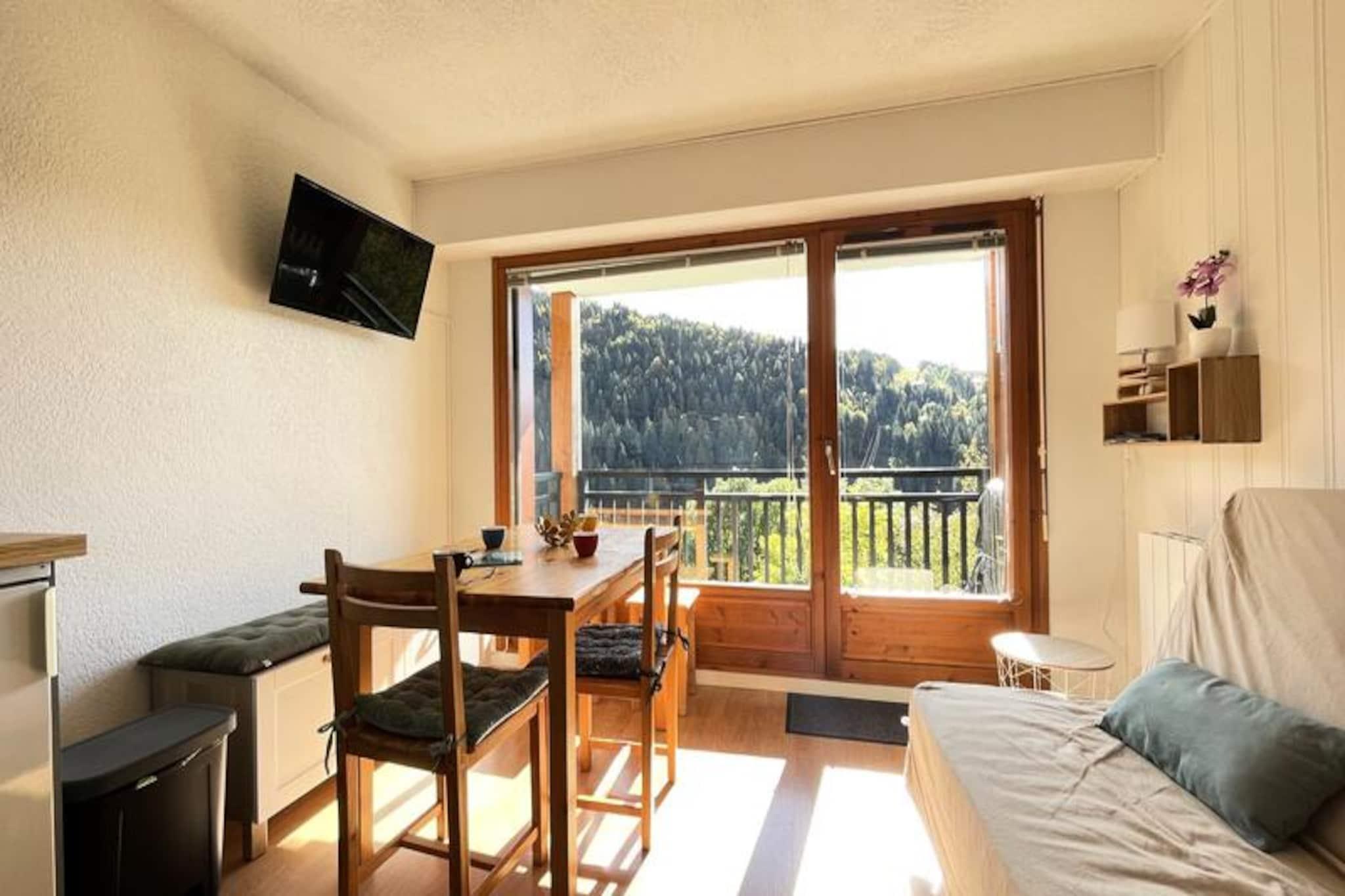 I hjertet af de fortryllende franske alper tilbyder denne hyggelige toværelseslejlighed i Les Balcons du Charvin-residensen en perfekt blanding af komfort og bekvemmelighed til din bjergferie. Beliggende i den maleriske landsby Notre Dame de Bellecombe, kun 400 meter fra butikker og 600 meter fra skiområdet Espace Diamant, tilbyder denne ejendom nem adgang til 192 km skiløjper, der forbinder seks charmerende resorts. Uanset om du er her for vintersport eller sommereventyr, lover de idylliske alpine omgivelser uforglemmelige øjeblikke. Lejligheden blev smagfuldt renoveret i 2020 og er ideel til 4-5 gæster. Den har en funktionel indretning med et fuldt udstyret køkken, en spiseplads med tv og en sydvendt balkon, hvor man kan nyde udsigten over bjergene. Soveværelset har en komfortabel dobbeltseng, mens entréen har en enkeltseng, og stuen har en sovesofa for ekstra fleksibilitet. Moderne faciliteter såsom opvaskemaskine, vaskemaskine og skiboks sikrer et problemfrit ophold. Den fælles udendørs parkering og nærheden til skibusstoppestedet bidrager til bekvemmeligheden. Ud over residensen charmerer Notre Dame de Bellecombe besøgende med sin autentiske savoyard-arkitektur, venlige atmosfære og nærhed til ikoniske destinationer som Megève, Chamonix og Annecy. Om sommeren kan du udforske vandrestier, mountainbike-ruter og Mont Rond-stoleliften for at nyde en betagende udsigt over Mont Blanc. Familier vil elske den nærliggende legeplads og Flumet-søen, der ligger kun 4 km væk. Uanset om du søger spændende skidage, rolige sommervandreture eller blot et fredeligt tilflugtssted, tilbyder denne lejlighed den perfekte base for at opleve magien i de franske alper.