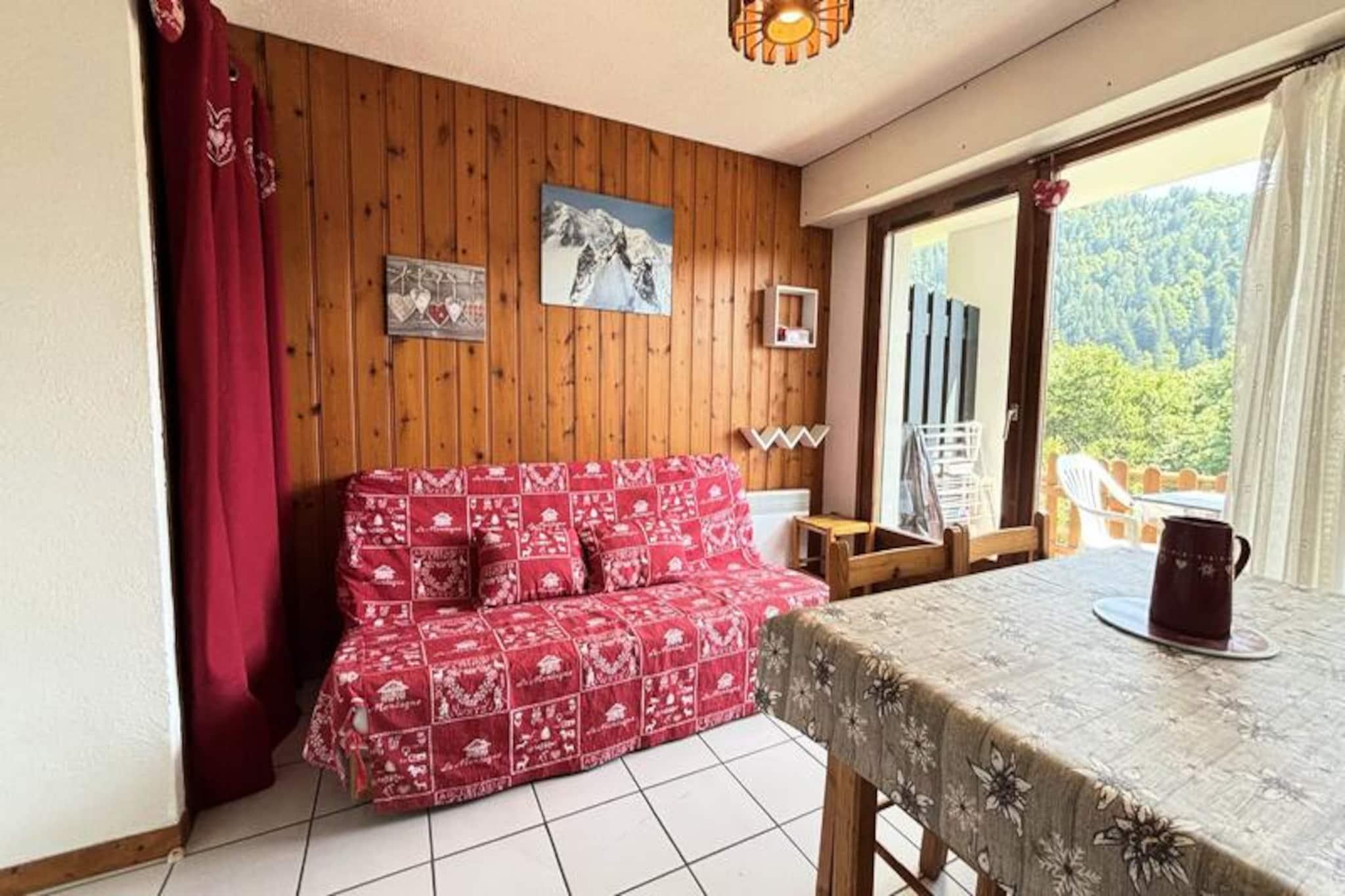 I hjertet af de fortryllende franske alper tilbyder denne hyggelige lejlighed i stueetagen i Les Balcons du Charvin-residensen den perfekte base for din bjergferie. Med sin sydvendte terrasse kan gæsterne nyde den betagende udsigt over Mont Charvin og de omkringliggende tinder, hvilket skaber en rolig og malerisk kulisse for dit ophold. Beliggende i den charmerende landsby Notre Dame de Bellecombe kombinerer residensen ro med bekvemmelighed, kun 400 meter fra butikker og aktiviteter og 600 meter fra skiområdet Espace Diamant. Uanset om du besøger om vinteren eller sommeren, lover denne destination uforglemmelige alpine eventyr. Indenfor er lejligheden omhyggeligt designet til at rumme op til fem gæster. Stuen har et fladskærms-tv, mens det åbne køkken er udstyret med moderne bekvemmeligheder, herunder en miniovn, mikrobølgeovn, opvaskemaskine og køleskab. Sovepladserne inkluderer et hyggeligt soveværelse med en dobbeltseng, en sovealkove med køjesenge og en sovesofa i stuen, alt suppleret af varm indretning i bjergstil. Badeværelset har et badekar, og der er et separat toilet for ekstra bekvemmelighed. Familier vil sætte pris på pladsen foran lejligheden, perfekt til børn at lege i trygge og fredelige omgivelser. Notre Dame de Bellecombe er en perle i skiområdet Espace Diamant og tilbyder 192 kilometer pister, der forbinder seks maleriske skisportssteder. Om vinteren stopper en skibus kun 100 meter væk, hvilket gør adgangen til pisterne ubesværet. Om sommeren forvandles regionen til et paradis for vandrere og mountainbikere med stier, der snor sig gennem alpine græsgange og skove. Den nærliggende Mont Rond-stolelift tilbyder en fantastisk panoramaudsigt over Mont Blanc, mens Flumet-søen, kun 4 kilometer væk, er perfekt til svømning og familiesjov. Uanset om du er tiltrukket af skiløbets tiltrækningskraft, charmen i Savoyard-landsbyerne eller skønheden i de alpine somre, tilbyder denne lejlighed et varmt og indbydende tilflugtssted. Med sin strategiske beliggenhed nær ikoniske destinationer som Megève og Chamonix vil din ferie blive beriget af kulturelle, sportslige og gastronomiske lækkerier. Kom og skab varige minder i denne idylliske alpine flugt.