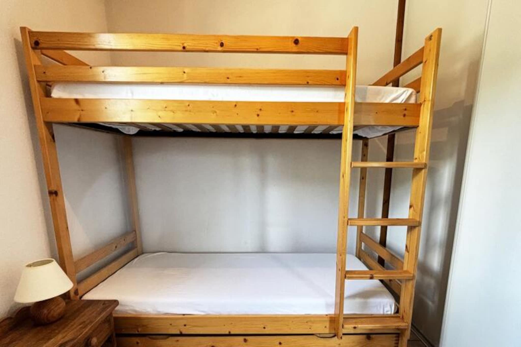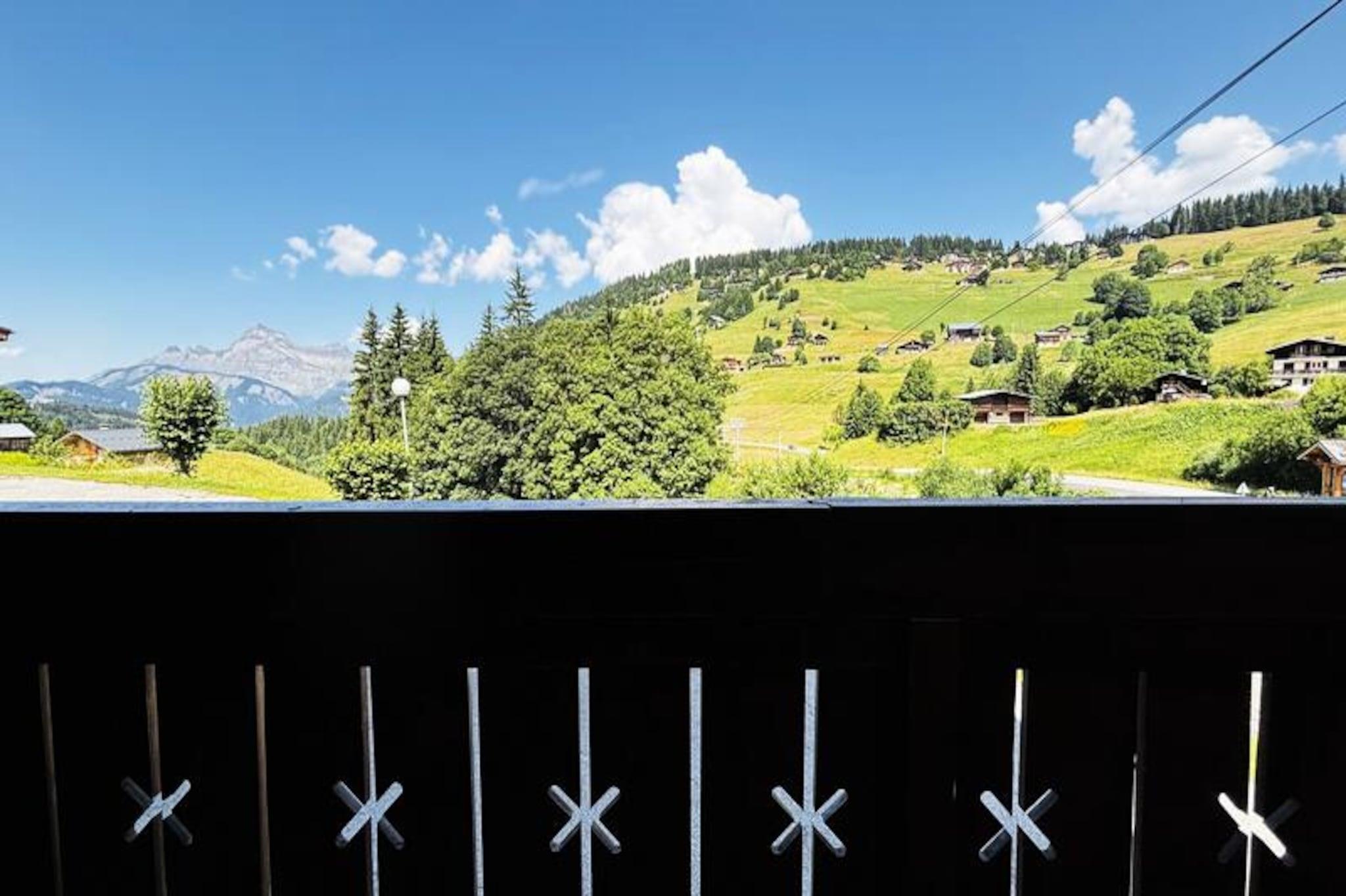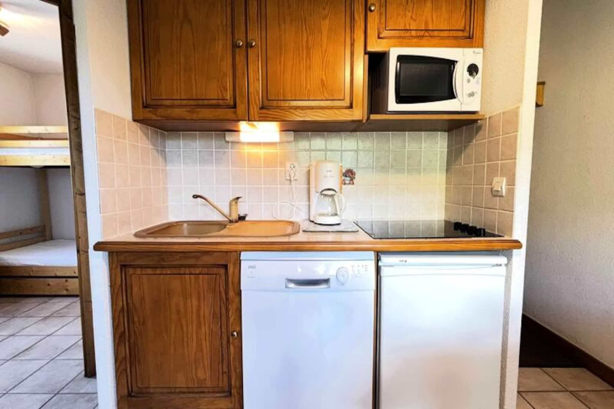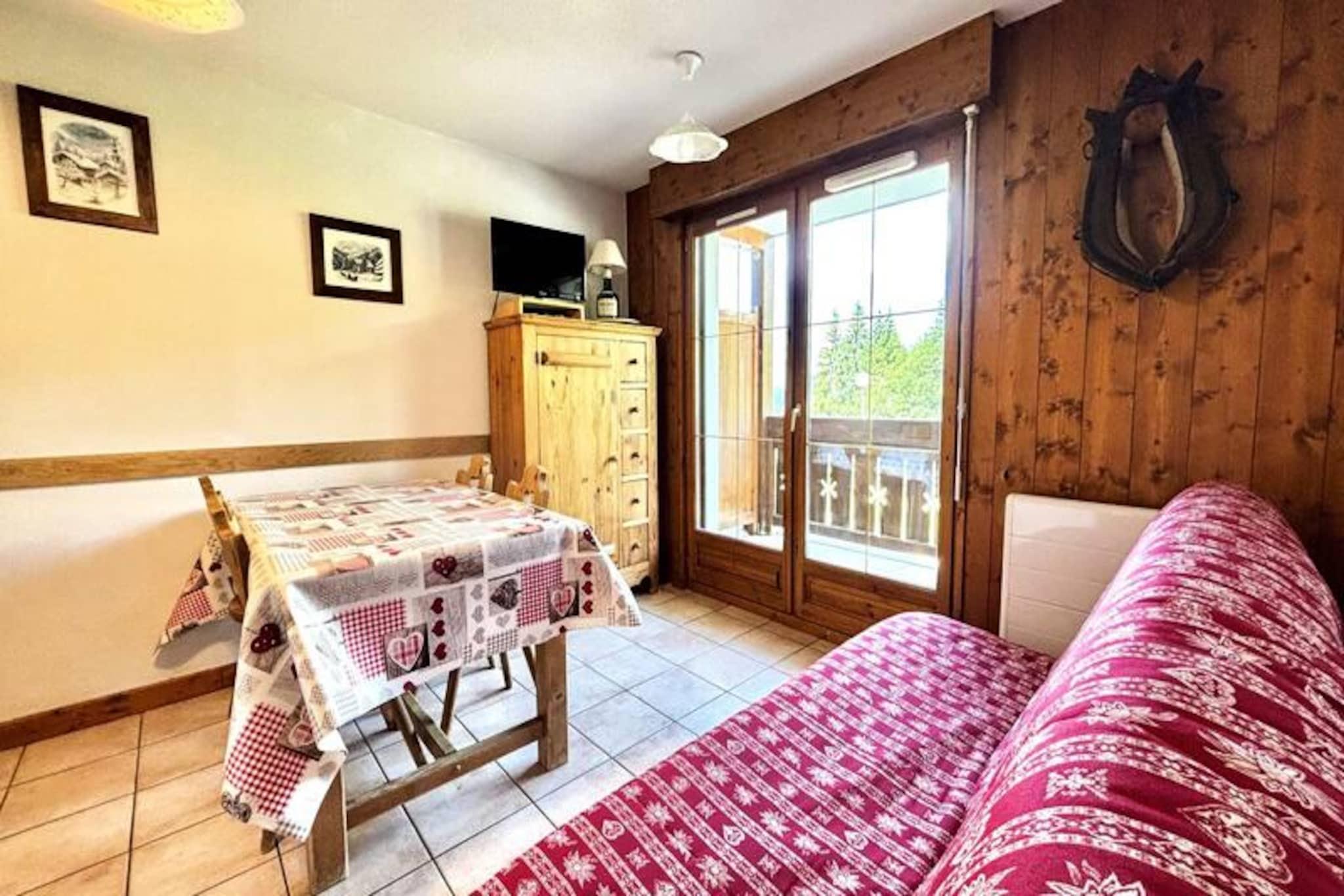 Midt i de franske alpers betagende landskab tilbyder denne charmerende lejlighed i Les Oursons-residensen et hyggeligt tilflugtssted ved foden af ??Espace Diamant-skiløjperne. Med direkte adgang til 192 km sammenhængende pister, der spænder over seks maleriske landsbyresorts, herunder Notre Dame de Bellecombe, Flumet og Les Saisies, er det en drømmedestination for skiløbere på alle niveauer. Uanset om du carver gennem puddersne eller nyder blide pister, skaber den familievenlige atmosfære og den fantastiske alpine udsigt en uforglemmelig vinterferie. Residensen er bekvemt placeret i nærheden af ??skiskolen, hvilket gør den ideel for både familier og begyndere.\n\nIndvendigt er lejligheden omhyggeligt designet til komfort og praktisk anvendelighed. Den har plads til op til seks gæster og har to soveværelser - et med en dobbeltseng og et andet med køjesenge - samt en sovesofa i stuen. Det åbne køkken er fuldt udstyret med keramisk kogeplade, køleskab, mikrobølgeovn og opvaskemaskine, hvilket sikrer, at du har alt, hvad du behøver for at tilberede solide måltider efter en dag på pisterne. Moderne bekvemmeligheder som Wi-Fi, fladskærms-tv og en privat, lukket garage bidrager til bekvemmeligheden, mens skiboksen holder dit udstyr organiseret.\n\nUd over skiløb forvandles regionen til et paradis for friluftsentusiaster i sommermånederne. Udforsk naturskønne vandrestier, mountainbikeruter, eller tag Mont Rond-stoleliften for at nyde panoramaudsigten over Mont Blanc. For en afslappende dag ude ligger Flumet-søen og fritidscentret kun 7 km væk og tilbyder familievenlige aktiviteter i rolige omgivelser. Med ladestationer til elbiler tilgængelige i hele Val d'Arly-landsbyerne, herunder Notre Dame de Bellecombe, er dit ophold både miljøvenligt og problemfrit.\n\nUanset om du søger spændende alpine eventyr eller rolige øjeblikke i naturen, er denne lejlighed den perfekte base for at opdage de franske alpers skønhed og charme året rundt.