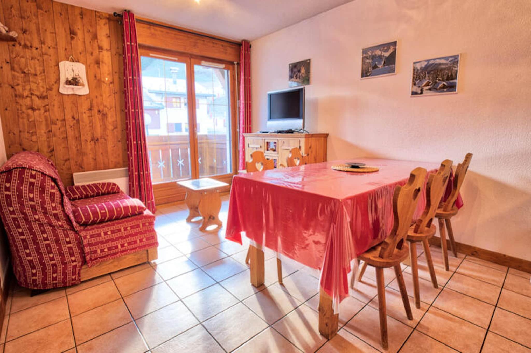 Midt i det betagende alpine landskab i Notre Dame de Bellecombe tilbyder denne charmerende lejlighed i Les Oursons-residensen et hyggeligt tilflugtssted for familier og venner, der søger eventyr og afslapning. Med sin førsteklasses beliggenhed ved foden af ??pisterne i skiområdet Espace Diamant kan du nyde problemfri adgang til 192 km pister, der forbinder seks maleriske landsbyresorts. Uanset om du snor dig gennem frisk puddersne eller tager dine første skridt på ski, lover den venlige atmosfære og det varierede terræn uforglemmelige øjeblikke for alle niveauer. Den sydvendte balkon tilbyder en fantastisk udsigt over Mont Rond-snefronten og inviterer dig til at nyde bjergenes fredfyldte skønhed. \n\nDenne omhyggeligt designede lejlighed på 38 m² har komfortabel plads til op til seks gæster. Indretningen har et soveværelse med dobbeltseng, en alkove med køjesenge og en sovesofa i stuen, hvilket sikrer fleksibilitet for familier eller grupper. Det åbne køkken er udstyret med moderne faciliteter, herunder keramisk kogeplade, køleskab, mikrobølgeovn og opvaskemaskine, hvilket gør madlavning til en leg. Efter en dag på pisterne kan du slappe af i den indbydende opholdsstue med et fjernsyn eller benytte den inkluderede Wi-Fi til at dele dine eventyr. Yderligere bekvemmeligheder såsom et skirum og privat udendørs parkering forbedrer dit ophold. \n\nUd over skiløb forvandles regionen til et paradis for friluftsentusiaster om sommeren. Udforsk naturskønne vandrestier, spændende mountainbikeruter, eller tag Mont Rond-stoleliften for panoramaudsigt over Mont Blanc. For familievenlige udflugter ligger Flumet-søen og fritidscentret kun en kort køretur væk. Ladestationer til elbiler i Val d'Arly-landsbyerne gør det endnu nemmere at udforske området. \n\nUanset om du søger vinterspænding eller sommerro, er denne lejlighed i bjergstil den perfekte base for at skabe dyrebare minder i hjertet af Alperne.