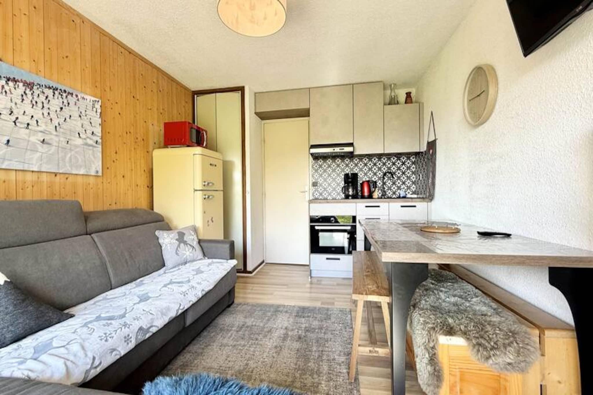 I den maleriske landsby Notre Dame de Bellecombe, hvor charmen fra Savoyard-traditionerne møder spændingen ved alpine eventyr, tilbyder denne hyggelige lejlighed i Le Chambet-residensen en uforglemmelig bjergferie. Omgivet af en betagende udsigt over Alperne og kun en kort gåtur fra lokale butikker og restauranter, er det det perfekte tilflugtssted for familier eller par, der søger både afslapning og spænding. Den sydvestvendte terrasse inviterer dig til at sole dig hele dagen og nyde fantastiske solnedgange over bjergtoppene. Lejligheden er designet til op til seks gæster og er mest komfortabel for fire, hvilket sikrer et rummeligt og behageligt ophold. Indretningen inkluderer en indbydende opholdsstue med sovesofa, et fuldt udstyret åbent køkken og et charmerende soveværelse med dobbeltseng og påklædningsværelse. Alkoven med køjesenge tilføjer et legende præg til yngre gæster. Moderne faciliteter såsom vaskemaskine, tv og et privat skirum gør dit ophold bekvemt og stressfrit. Residensen kan også prale af dedikeret parkering for ekstra bekvemmelighed. Beliggende kun 300 meter fra skisportsstedet Espace Diamant har du adgang til 192 km sammenhængende pister, der strækker sig over seks idylliske skisportssteder. Om sommeren kan du udforske naturskønne vandre- og cykelstier eller tage Mont Rond-stoleliften for at nyde panoramaudsigten over Mont Blanc. Nærliggende attraktioner omfatter Flumet-søen, hvor man kan dyrke vandsport, og den berømte landsby Megève, der ligger kun 15 minutters kørsel væk. Uanset om du er her for at stå på ski, vandre eller bare slappe af, tilbyder denne lejlighed den perfekte base for at skabe dine yndlingsminder i hjertet af de franske alper.