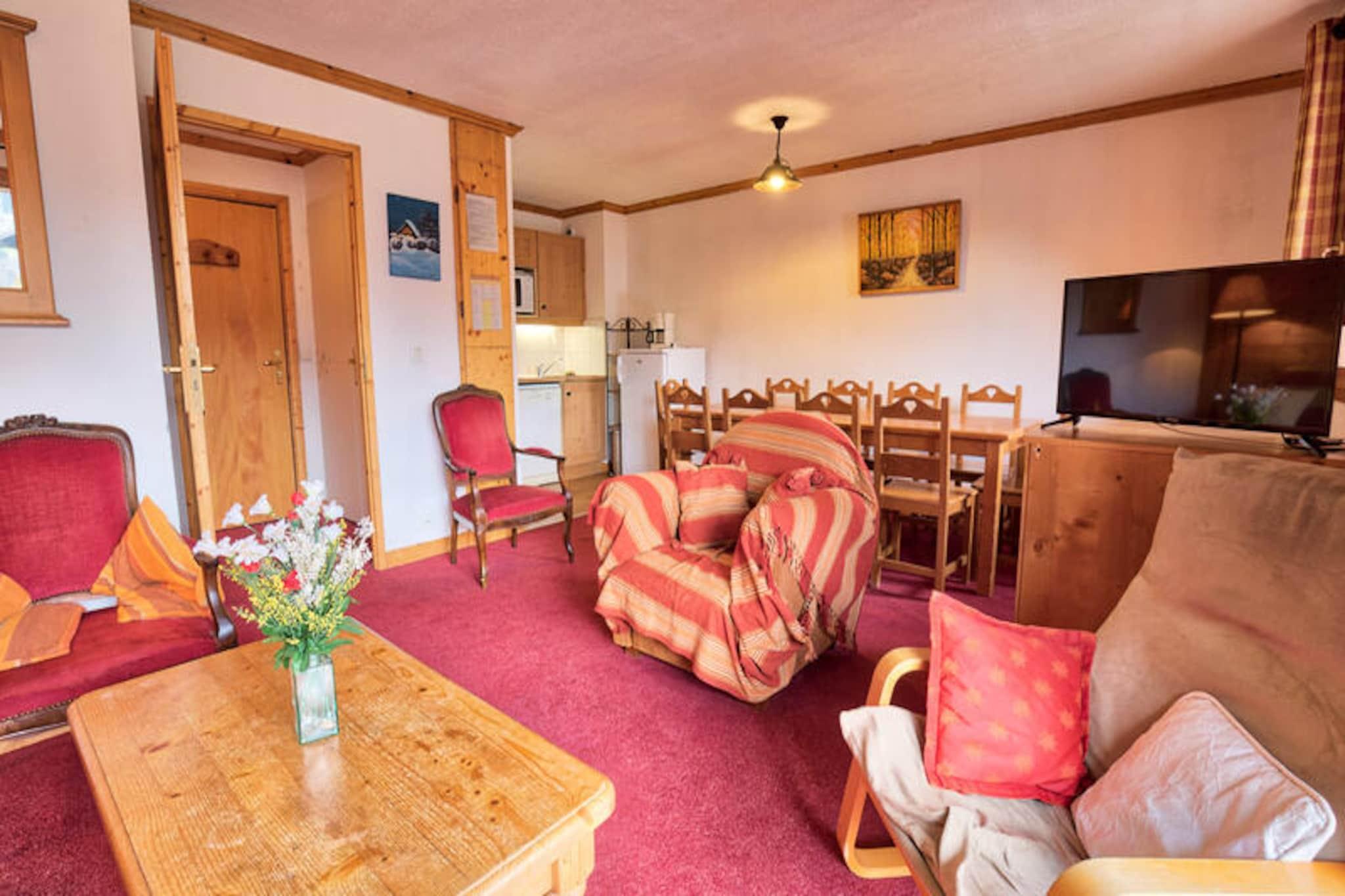 Midt i den maleriske charme i Notre Dame de Bellecombe tilbyder denne rummelige duplexlejlighed et roligt alpint tilflugtssted i hjertet af skisportsstedet Espace Diamant. Med sin førsteklasses beliggenhed kun 5 minutters gang fra pisterne og i en eksklusiv bolig med indendørs swimmingpool kombinerer denne ejendom bekvemmelighed med luksus for at skabe den perfekte bjergflugt. Vågn op til en betagende udsigt over de omkringliggende tinder fra de sydøstvendte altaner på begge etager, og fordyb dig i den autentiske savoyard-atmosfære i denne indbydende landsby. \n\nLejligheden på 87 m² har komfortabel plads til op til 10 gæster, hvilket gør den ideel til familier eller vennegrupper. Den har to soveværelser med dobbeltsenge, to soveværelser med to enkeltsenge og ekstra sovemuligheder i stuen, hvilket sikrer fleksibilitet for alle. Det åbne køkken er fuldt udstyret med moderne apparater, herunder keramisk kogeplade, mikrobølgeovn, varmluftsovn og opvaskemaskine, hvilket gør madlavning til en leg. To badeværelser, et med bruser og et med badekar, sammen med to separate toiletter, giver ekstra bekvemmelighed for større grupper. Gæsterne kan også nyde godt af adgang til et skirum, overdækket parkering og valgfrie faciliteter såsom sauna og Wi-Fi.\n\nUd over boligen tilbyder landsbyens centrum et livligt udvalg af butikker, restauranter og underholdning, alt sammen inden for gåafstand. Om vinteren kan skiområdet Espace Diamant prale af 192 km pister, der henvender sig til alle niveauer, mens sommeren forvandler regionen til et paradis for vandrere og mountainbikere. Nærliggende attraktioner omfatter stoleliften Mont Rond, som tilbyder en fantastisk panoramaudsigt over Mont Blanc, og familievenlige faciliteter som tennisbaner og legepladser kun 150 meter væk.\n\nUanset om du søger spændende skieventyr, rolige sommervandreture eller blot en hyggelig alpin ferie, tilbyder denne ejendom en harmonisk blanding af komfort, bekvemmelighed og naturlig skønhed. Skab uforglemmelige minder i hjertet af de franske alper, hvor hver årstid bringer sin egen unikke charme.