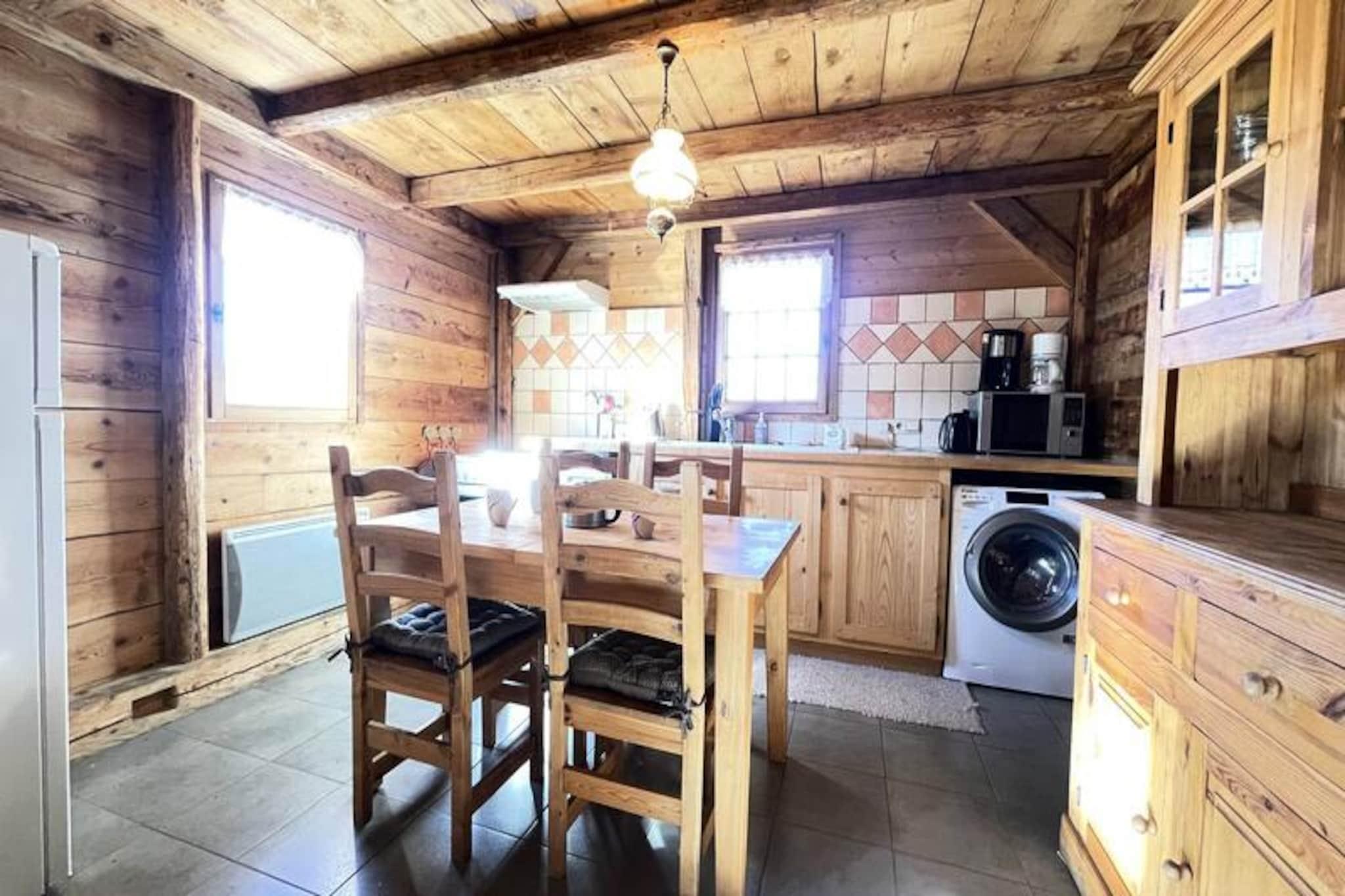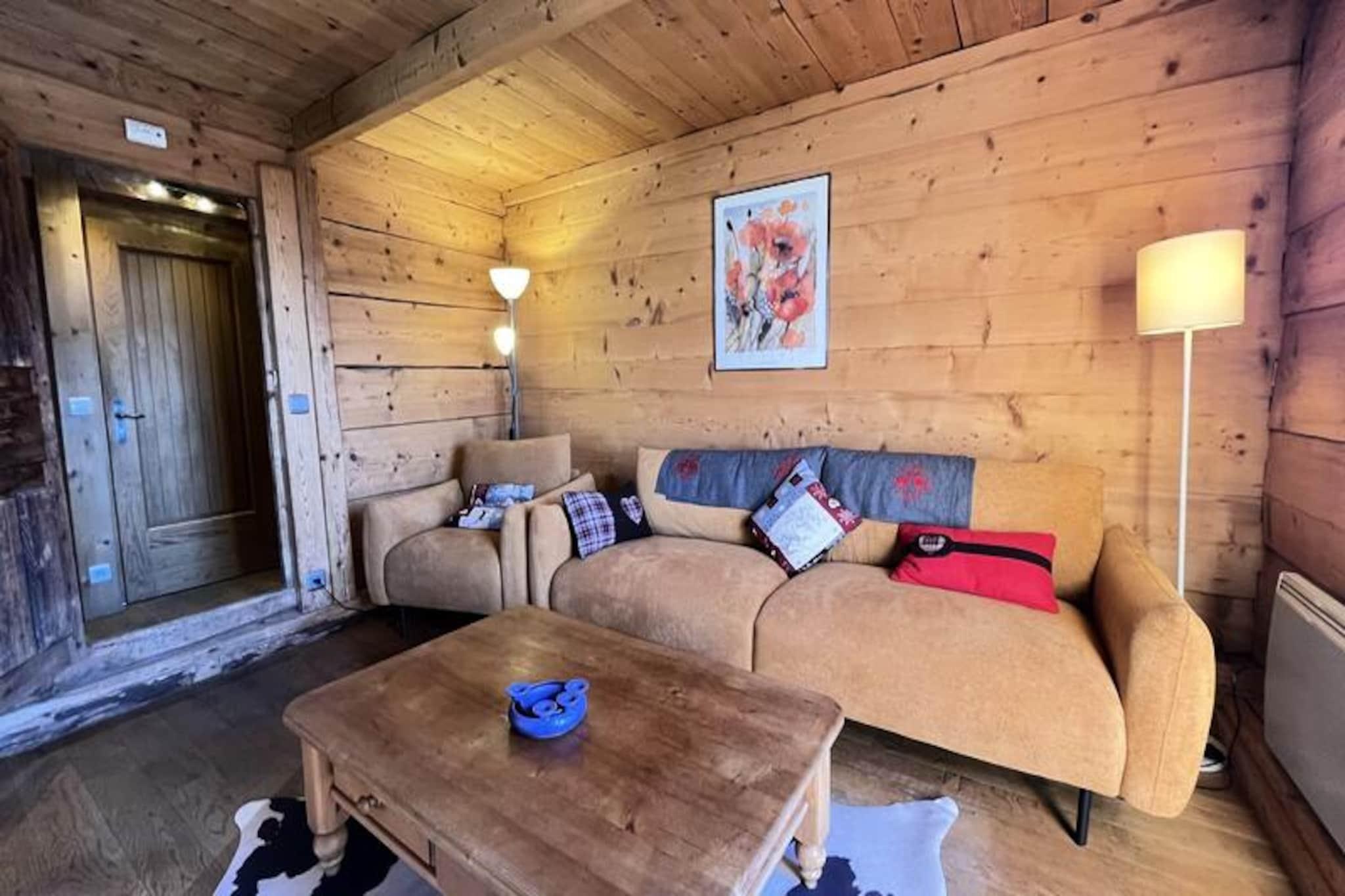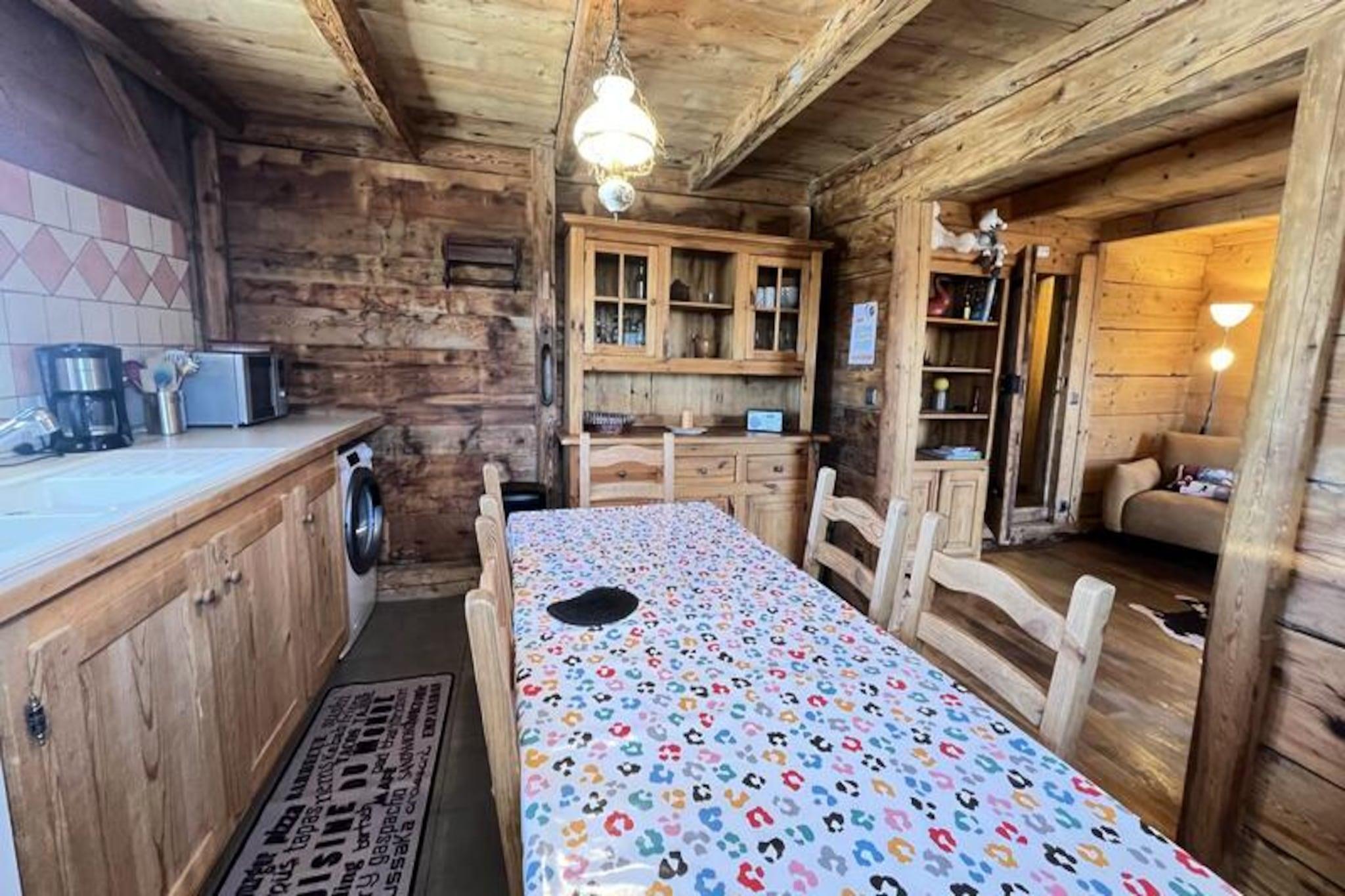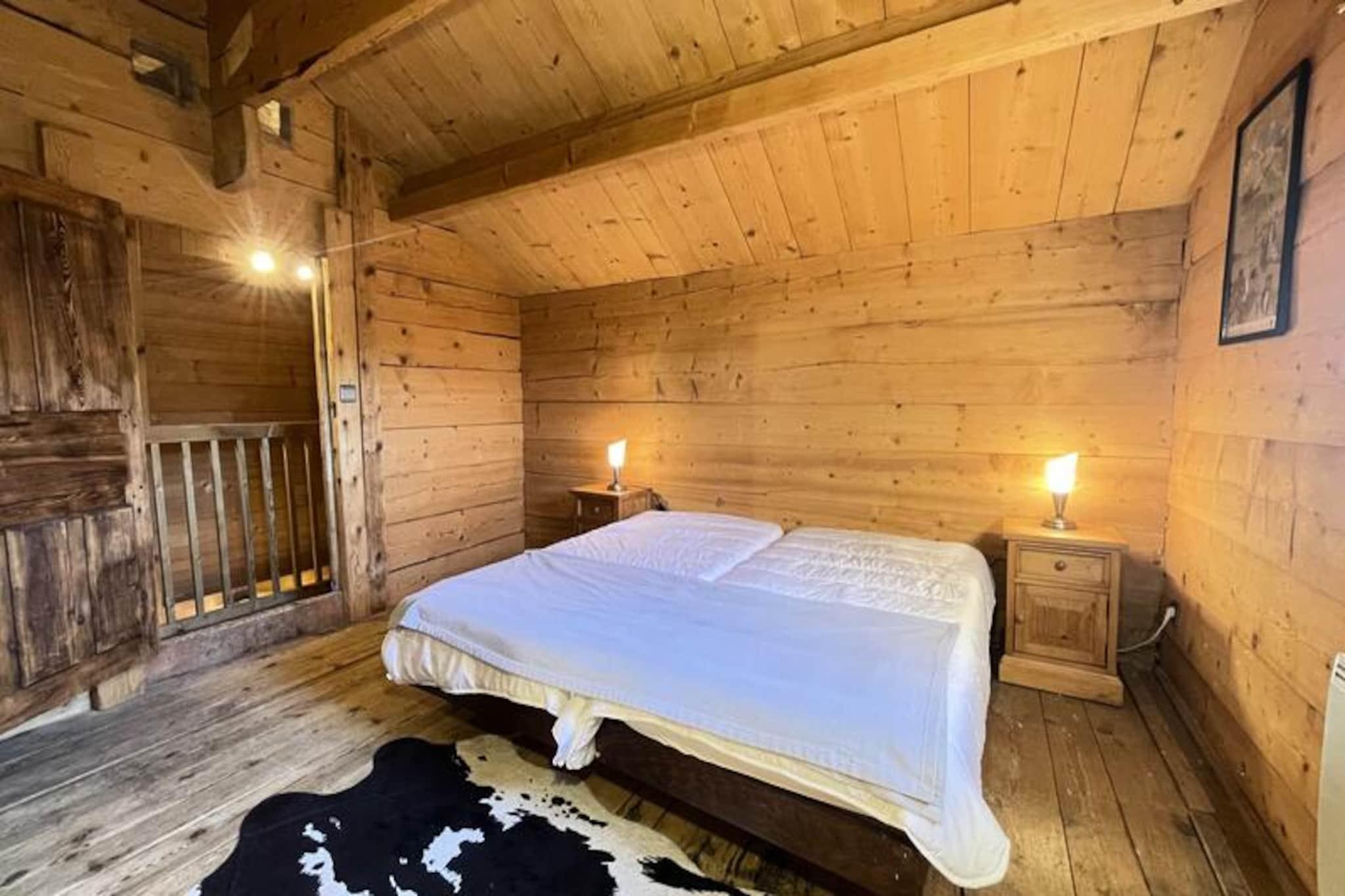 Midt i det betagende alpine landskab i Notre Dame de Bellecombe tilbyder denne charmerende Savoyard-hytte et unikt tilflugtssted for dem, der søger ro og eventyr. Omgivet af majestætiske tinder og kun 500 meter fra Boulangère-skiliften, giver den problemfri adgang til det berømte skiområde Espace Diamant, der kan prale af 192 km sammenhængende pister. Uanset om du er her for at grave dig gennem uberørt sne eller udforske frodige sommerstier, er denne hytte den perfekte base for din bjergflugt. Den sydvestvendte balkon inviterer dig til at nyde panoramaudsigten over de omkringliggende tinder, inklusive den ikoniske Mont Blanc, mens du nyder den friske alpine luft. \n\nIndenfor blander hytten traditionel charme med moderne komfort. Hovedplanen har et fuldt udstyret køkken, der åbner ud til en hyggelig opholds- og spisestue, perfekt til at dele måltider og historier efter en dag med eventyr. Et soveværelse med dobbeltseng, et separat toilet og et brusebad fuldender planløsningen. Ovenpå, der er tilgængelig via en stejl trappe, finder du et andet soveværelse, to mezzanin-rum med enkeltsenge og et arbejdsområde til dem, der har brug for at holde kontakten. Gennemtænkte faciliteter såsom WiFi, vaskemaskine/tørretumbler og privat parkering sikrer et problemfrit ophold.\n\nChaletens beliggenhed placerer dig tæt på den pulserende landsby Notre Dame de Bellecombe, kun 5 km væk, hvor du kan udforske lokale butikker og restauranter. Om sommeren tilbyder Mont Rond-stoleliften adgang til fantastiske udsigter, mens nærliggende stier og Flumet-søen lover uendelige udendørsaktiviteter. For vintersportsentusiaster gør liftkort med rabat og opbevaring af udstyr din ferie endnu mere bekvem.\n\nUanset om du rejser som familie, en gruppe venner eller søger en romantisk ferie, tilbyder dette autentiske chalet en uforglemmelig alpin oplevelse. Lad skønheden i Val d'Arly og den varme Savoyard-gæstfrihed skabe minder, du vil værdsætte for livet.