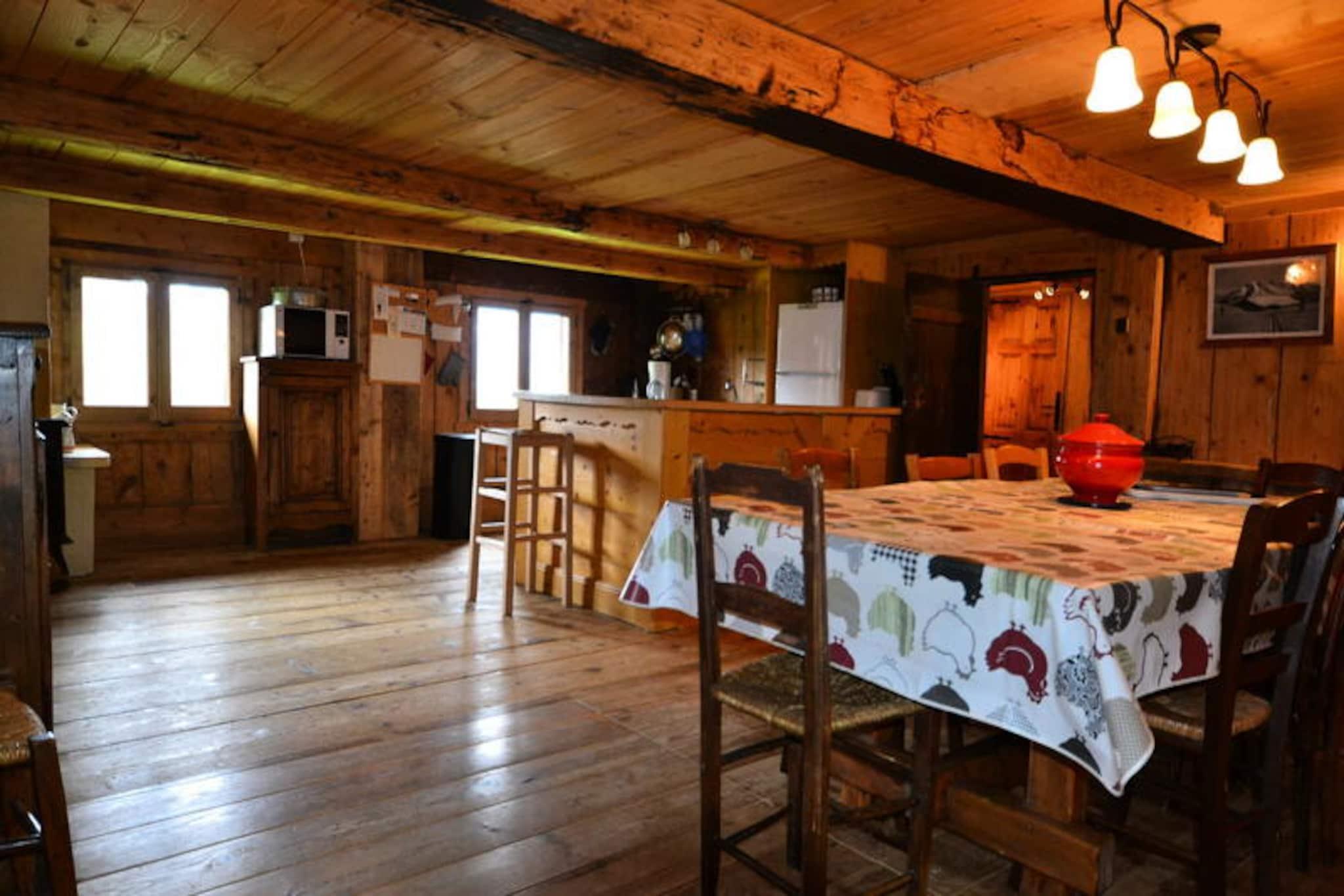 Midt i de franske alpers fredfyldte skønhed inviterer La Ferme des Frasses dig til at opleve en ferie fyldt med autenticitet og charme. Dette smukt renoverede Savoyard-bondegård, beliggende kun 500 meter fra Boulangère-skiliften, tilbyder direkte adgang til det berømte skiområde Espace Diamant. Med 192 kilometer sammenhængende pister, der strækker sig over seks maleriske landsbyer, er det et paradis for både skientusiaster og naturelskere. Bondegårdens østvendte terrasse tilbyder en betagende udsigt over Mont Charvin og dalen, hvilket sætter scenen for uforglemmelige alpine morgener. \n\nDen rummelige lejlighed på 145 m² i stueetagen er omhyggeligt designet til at rumme op til otte gæster. Den hyggelige stue har bløde sofaer, et fladskærms-tv og en dvd-afspiller, perfekt til afslapning efter en dag med eventyr. Det åbne køkken og spisestue, udstyret med moderne bekvemmeligheder som keramisk kogeplade, ovn, opvaskemaskine og dekorativ brændeovn, gør madlavningen til en fornøjelse. Sovepladserne omfatter to dobbeltværelser, et soveværelse med køjeseng og en sovesofa i stuen, hvilket sikrer komfort for familier eller vennegrupper. Et stort badeværelse med badekar og separat toilet øger bekvemmeligheden, mens gratis Wi-Fi holder dig forbundet. \n\nBag gården lokker landsbyen Notre Dame de Bellecombe med sine charmerende landsbyer og pulserende atmosfære. Om vinteren forbedrer den nærliggende skiskole og lokale spisesteder dit ophold, mens sommeren åbner op for en verden af ??vandrestier, mountainbikeruter og panoramaudsigt over Mont Blanc via Mont Rond-stoleliften. Flumet-søen og fritidscentret, kun 9 kilometer væk, tilbyder yderligere rekreative muligheder. \n\nUanset om du søger spændende skieventyr eller rolige sommerferier, kombinerer La Ferme des Frasses rustik elegance med moderne komfort og lover et uforglemmeligt alpint tilflugtssted.