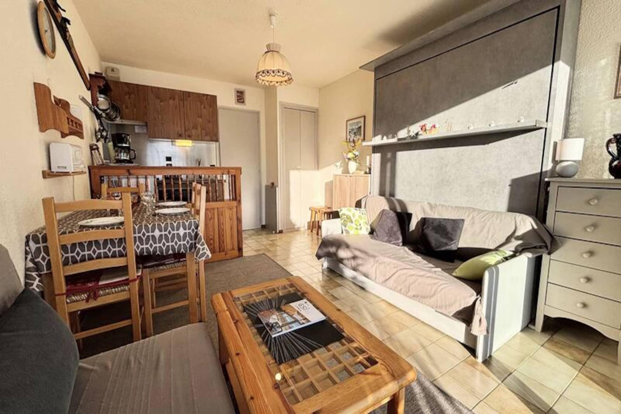 Midt i de betagende landskaber i de franske alper tilbyder denne charmerende studiolejlighed et hyggeligt tilflugtssted til din næste bjergferie. Ejendommen ligger i stueetagen og er perfekt placeret for skientusiaster, med pister som Teret, Quarts og Reguet kun få skridt væk. Uanset om du er her for at grave dig gennem frisk puddersne eller nyde den pulserende alpine atmosfære, placerer denne indkvartering dig i hjertet af det hele. Om sommeren forvandles de frodige omgivelser til et paradis for udendørsaktiviteter med tennisbaner og en forfriskende udendørs pool, der er udelukkende tilgængelig for gæster. \n\nDet 25 m² store studio er omhyggeligt designet til at maksimere komfort og funktionalitet. En alkove i entréen har to køjesenge, mens det åbne køkken og opholdsstue har en dobbeltseng, der kan foldes ned, hvilket skaber et alsidigt rum til op til fire gæster. Badeværelset er udstyret med et separat toilet for ekstra bekvemmelighed. Gæsterne kan også nyde den praktiske anvendelighed af et skiskab og adgang til en rummelig parkeringsplads lige ved foden af ??bygningen. For dem, der søger yderligere faciliteter, er en privat lukket garage tilgængelig til ugentlig leje i boligen. \n\nBeliggende kun 50 meter fra ESF skiskole og skiliftbilletkontorer, og 100 meter fra bymidten og butikkerne, er alt hvad du behøver inden for rækkevidde. Om sommeren kan du udforske de naturskønne stier, nyde lokal mad eller blot slappe af ved poolen. De nærliggende attraktioner og faciliteter sikrer et mindeværdigt ophold, uanset om du besøger stedet i de sneklædte vintermåneder eller den solrige sommersæson. \n\nMed sin førsteklasses beliggenhed, gennemtænkte faciliteter og den majestætiske alpine kulisse er dette studie et ideelt valg for par, familier eller små grupper, der søger både eventyr og afslapning i hjertet af de franske alper.