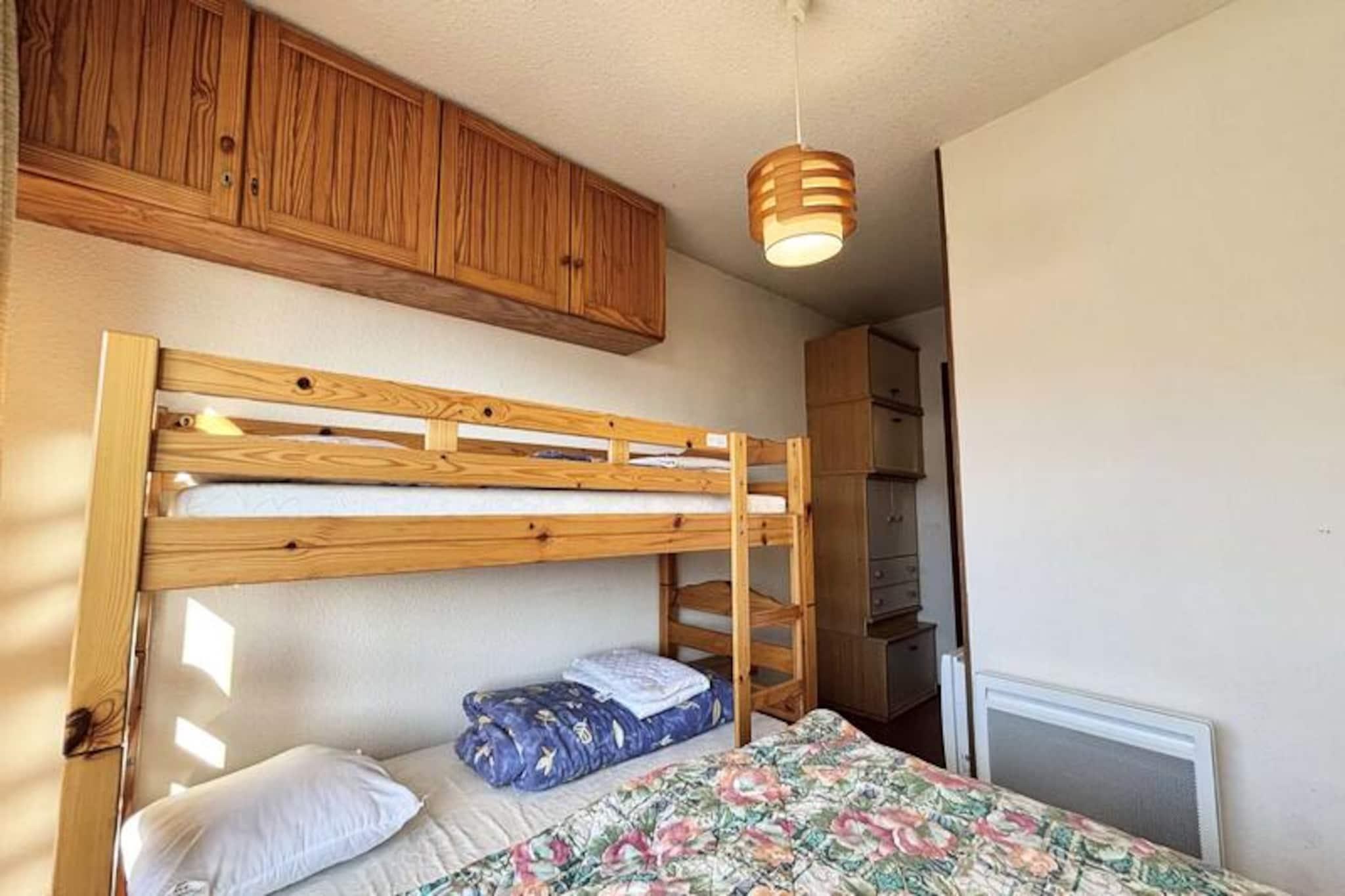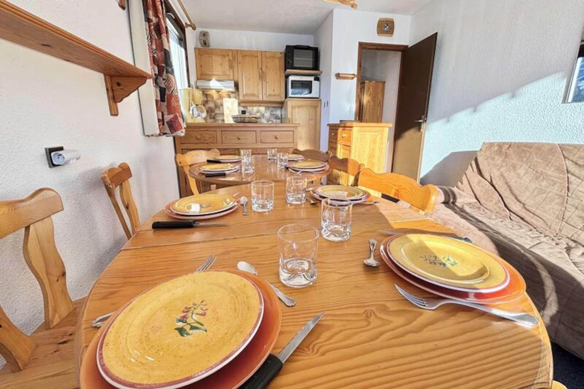 Højt over Tarentaise-dalen tilbyder denne charmerende ferielejlighed en perfekt blanding af alpin komfort og bekvemmelighed. Vågn op til en betagende udsigt over bjergene fra den rummelige hjørnebalkon, og træd ind i en verden af ??eventyr lige uden for døren. Uanset om du er her for at grave dig gennem pudrede skråninger om vinteren eller sole dig i sommersolen ved den private pool, lover dette tilflugtssted uforglemmelige øjeblikke i hjertet af de franske alper. \n\nLejligheden på 49 m² er omhyggeligt designet til at rumme op til otte gæster. Den har et hyggeligt soveværelse i kahytten med køjesenge, et andet soveværelse med en dobbeltseng og ekstra køjesenge (bemærk: den øverste køjeseng er ikke egnet til børn under seks år) og en stue med en dobbeltsovesofa. Det åbne køkken inviterer dig til at tilberede solide måltider efter en dag med udforskning, mens det separate badeværelse, brusebad og toilet sikrer komfort og privatliv for alle. Med elevatoradgang, et skirum og valgfri privat garageudlejning er hver eneste detalje blevet tænkt over for at gøre dit ophold problemfrit. \n\nBeliggende kun 50 meter fra ESF skiskole og billetkontorer, og 100 meter fra byens centrum, finder du alt hvad du behøver inden for rækkevidde. Om sommeren kan du nyde stedets tennisbane og udendørs swimmingpool, eller udforske de omkringliggende stier og naturlige skønhed. Den store parkeringsplads ved foden af ??bygningen bidrager til bekvemmeligheden og gør denne ejendom til en fantastisk base for dine alpine eventyr. \n\nUanset om du søger spændende skidage, rolige sommerferier eller et hyggeligt tilflugtssted med dine kære, er denne lejlighed det perfekte valg. Med sin uovertrufne beliggenhed og indbydende faciliteter er det tid til at skabe varige minder i de maleriske franske alper.
