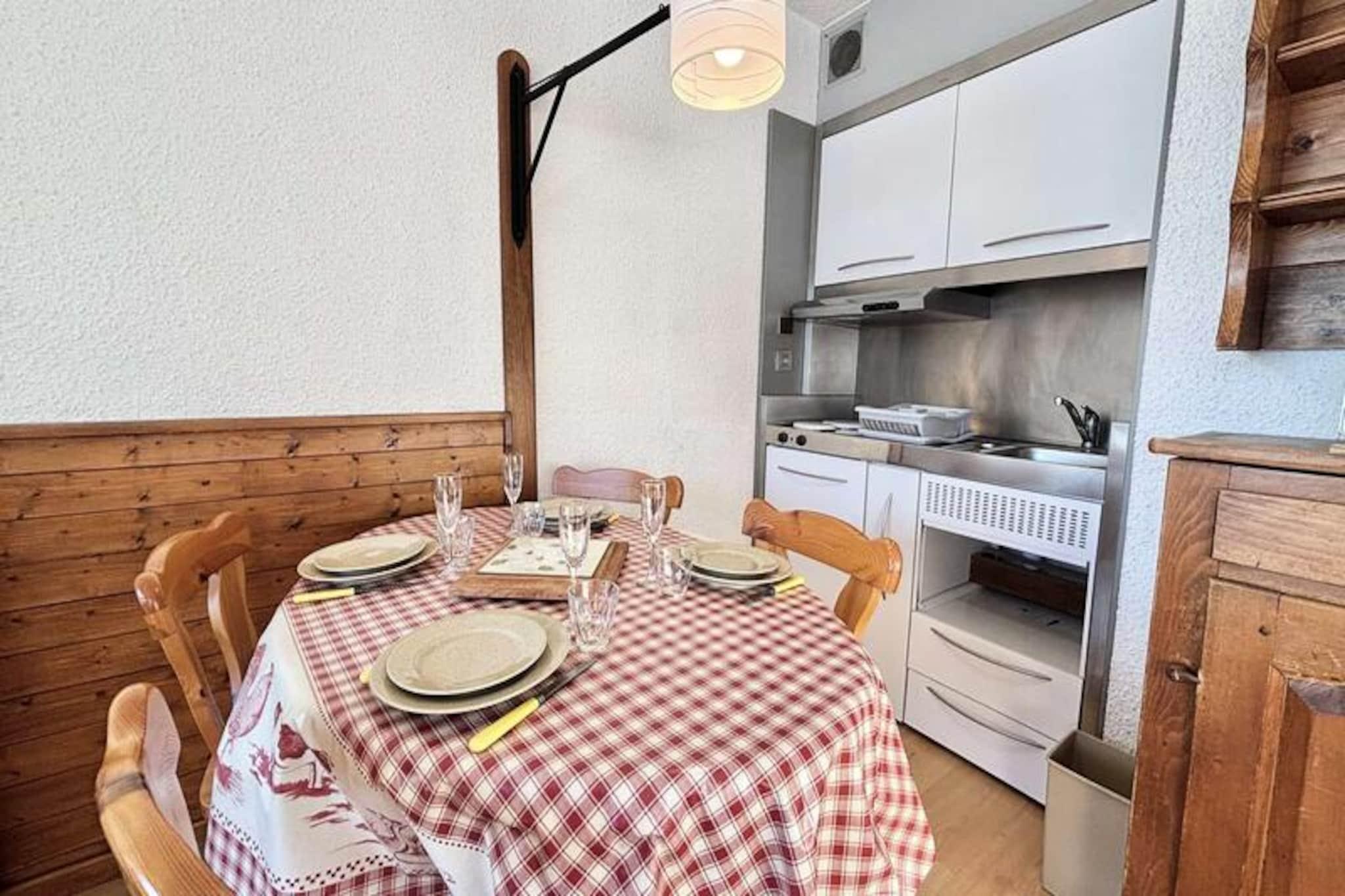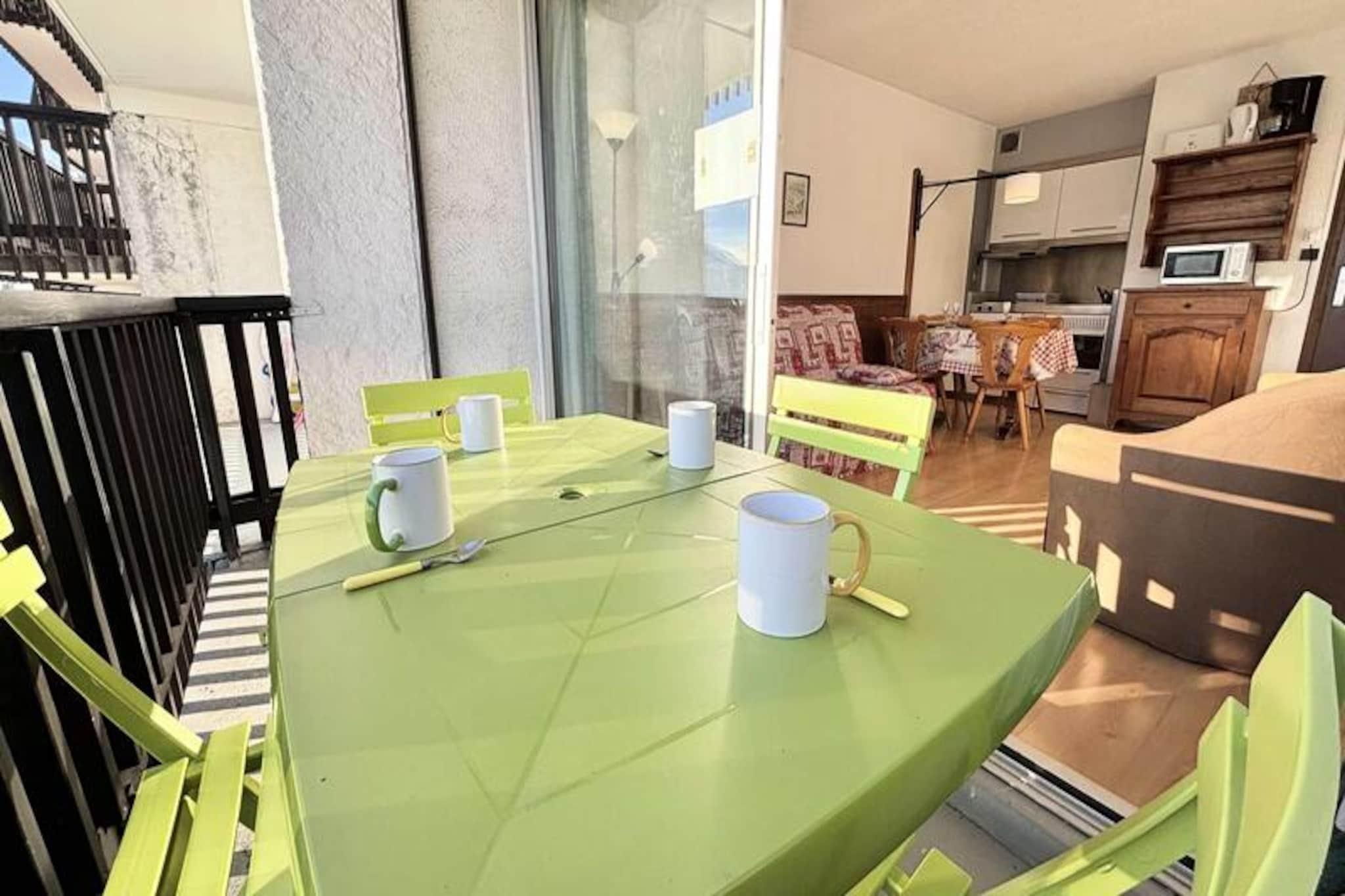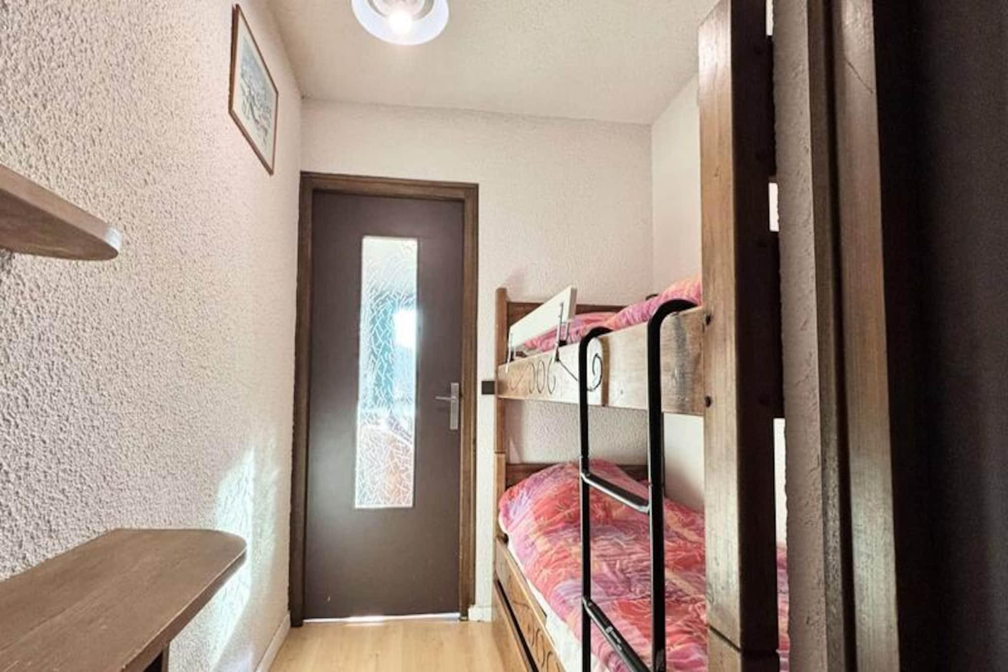 Højt over de uberørte skråninger i de franske alper inviterer denne charmerende studiolejlighed dig til at opleve den perfekte blanding af eventyr og afslapning. Med en betagende udsigt over bjergene fra din private balkon føles hvert øjeblik fyldt med alpin ro. Uanset om du er her for spændingen ved skiløb eller roen ved sommerferier, tilbyder dette hyggelige tilflugtssted alt, hvad du behøver for en uforglemmelig ferie. \n\nDet 26 m² store studio er omhyggeligt designet til at maksimere komfort og bekvemmelighed. Det ligger på første sal med elevatoradgang og har en alkove med to køjesenge, et brusebad med toilet og et tekøkken, der åbner ind i en indbydende opholdsstue med sovesofa. Balkonen giver et fantastisk udsigtspunkt, hvorfra man kan nyde de omkringliggende bjergtoppes skønhed. Gæsterne har også adgang til et privat skirum, der sikrer en problemfri overgang fra afslapning til eventyr. For dem, der ankommer i bil, er der en rummelig parkeringsplads til rådighed, og der kan arrangeres privat garageudlejning i bygningen. \n\nDenne lejlighed, der ligger ved foden af ??Teret-, Quarts- og Reguet-pisterne, er enhver skiløbers drøm. ESF-skiskolen og liftkortkontorerne ligger kun 50 meter væk, mens bymidten og butikkerne kun ligger 100 meter fra din dør. Om sommeren forvandles ejendommen til et paradis for udendørsaktiviteter med en privat tennisbane og en udendørs swimmingpool, som gæsterne kan nyde. \n\nUanset om du jagter puddersne på pisterne eller soler dig i sommersolen, er denne studiolejlighed din port til det bedste af de franske alper. Skab varige minder i en destination, der kombinerer naturlig skønhed, moderne faciliteter og uovertruffen adgang til alpine eventyr.