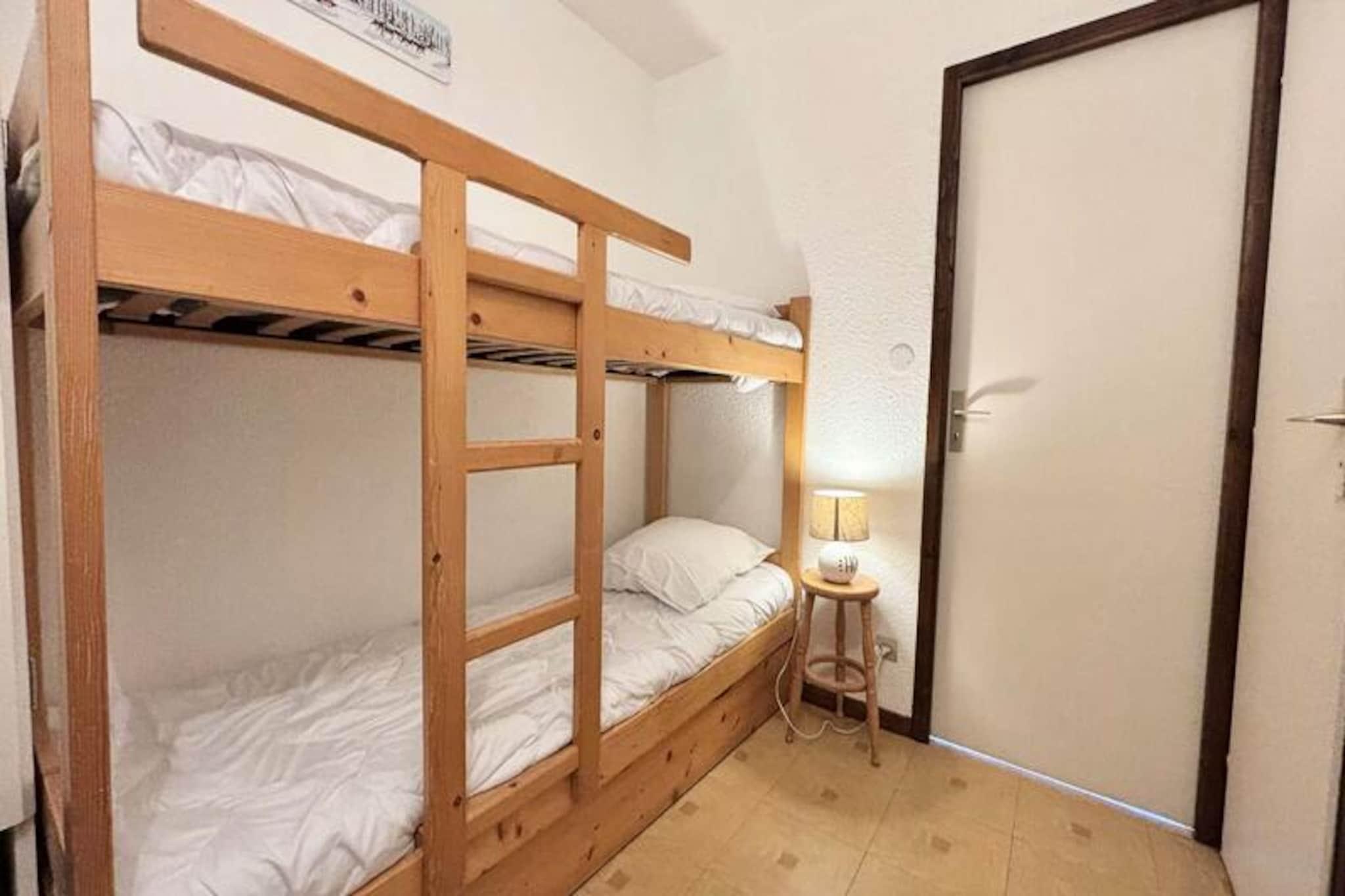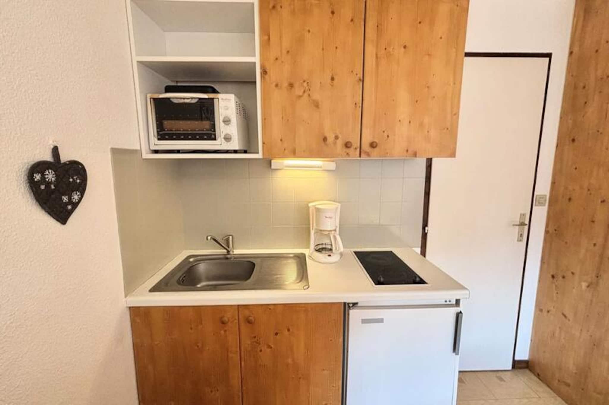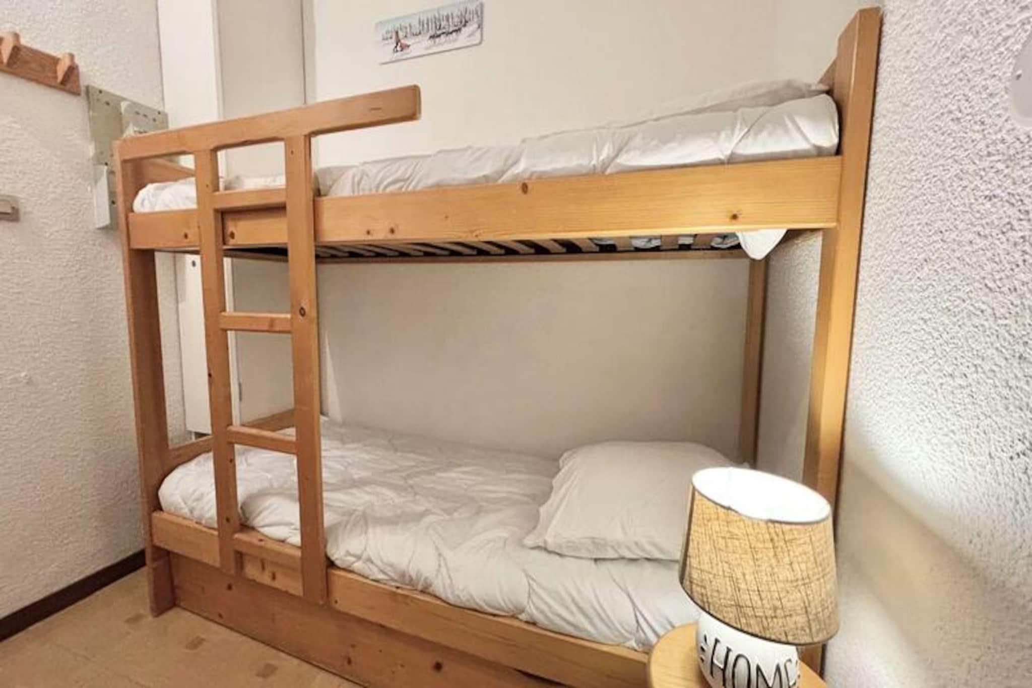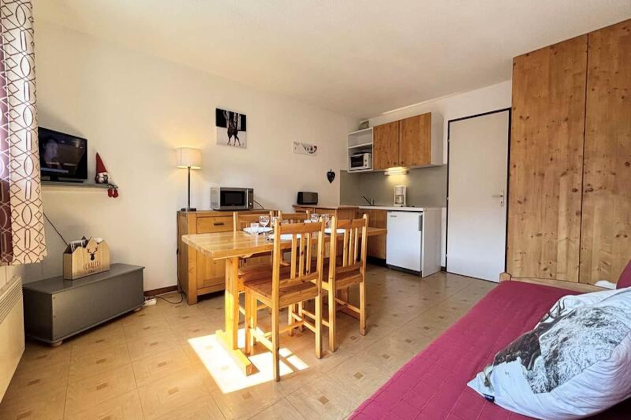 I hjertet af de franske alper, hvor snedækkede tinder møder fredfyldt alpin charme, tilbyder denne dejlige studiolejlighed et hyggeligt tilflugtssted til din bjergferie. Beliggende på første sal er denne 25 m² store bolig perfekt til par eller små familier, der søger en rolig base tæt på alt, hvad der sker. Med sin varme og indbydende atmosfære er det et paradis til afslapning efter en dag med udforskning af de betagende omgivelser. Balkonen tilbyder et fredeligt sted at nyde frisk bjergluft og nyde den naturskønne udsigt. \n\nIndenfor er studiolejligheden omhyggeligt designet til at maksimere komfort og funktionalitet. Indgangen har en sovealkove med to køjesenge, ideel til børn eller ekstra gæster, mens stuen tilbyder to enkeltsenge til afslappende nætter. Tekøkkenet er fuldt udstyret, så du kan tilberede solide måltider til dine eventyr. Et separat badeværelse og toilet sikrer bekvemmelighed, og skiboksen og den overdækkede parkeringsplads gør dit ophold praktisk. Bemærk venligst, at den øverste køjeseng ikke er egnet til børn under seks år.\n\nLejligheden ligger kun 400 meter fra landsbyens butikker og 600 meter fra skiskolen og pisterne og tilbyder nem adgang til alt, hvad du behøver for en uforglemmelig ferie. En gratis shuttle-service stopper kun få skridt fra boligen og tager dig til pisterne på få minutter. Uanset om du er her for at stå på ski, snowboarde eller blot nyde den alpine skønhed, er denne beliggenhed ideel til at fordybe dig i regionens charme.\n\nMed yderligere tjenester som sengelinned, håndklæder og rengøring tilgængelig efter anmodning sikrer denne studiolejlighed et behageligt og problemfrit ophold. Skab uforglemmelige minder i dette hyggelige tilflugtssted, omgivet af de franske alpers majestætiske skønhed.