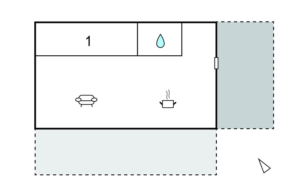 Træd gennem de store skydedøre direkte ud på terrassen og nyd solrige timer på liggestolene. Udendørsområdet er velholdt og byder på masser af plads til afslappende eftermiddage. Der er en lille træhytte i haven til børn.