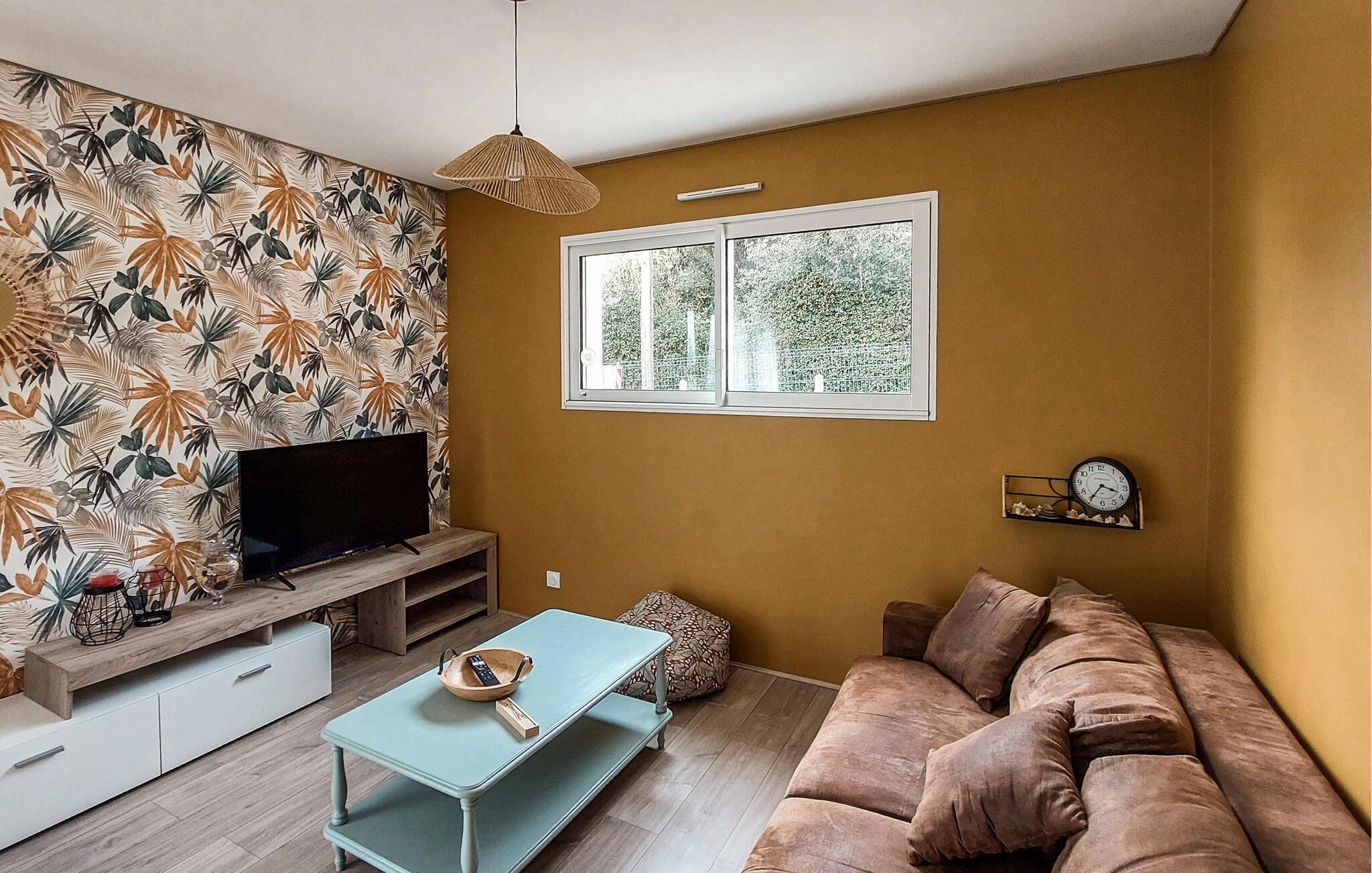 Tilbring en afslappende tid i denne behageligt møblerede bolig ved Atlanterhavskysten. Huset ligger i udkanten af ??et roligt boligområde, ikke langt fra skov og strand. De lyse opholdsrum tilbyder alt, hvad I behøver for et behageligt ophold. Find jer til rette i den store sofa, se en film sammen eller spil kort ved spisebordet. Det åbne køkken lægger op til at lave mad og nyde måltider sammen.