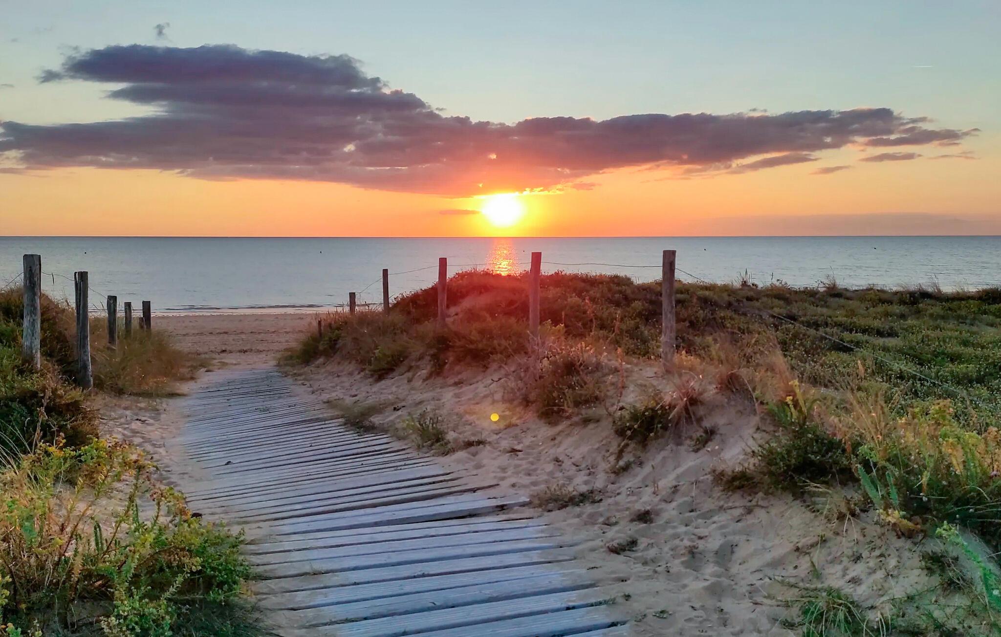 Slap af på den brede, fine sandstrand eller tag en frisk dukkert i Atlanterhavet. Friluftsmennesker kan nyde en tur til det nærliggende vådområde Marais Breton Vendéen. Her kan I nyde fuglekiggeri eller tage en afslappet bådtur.