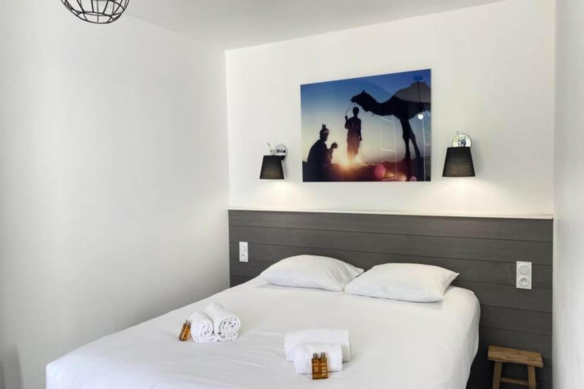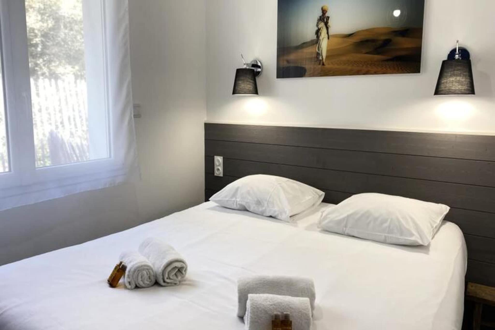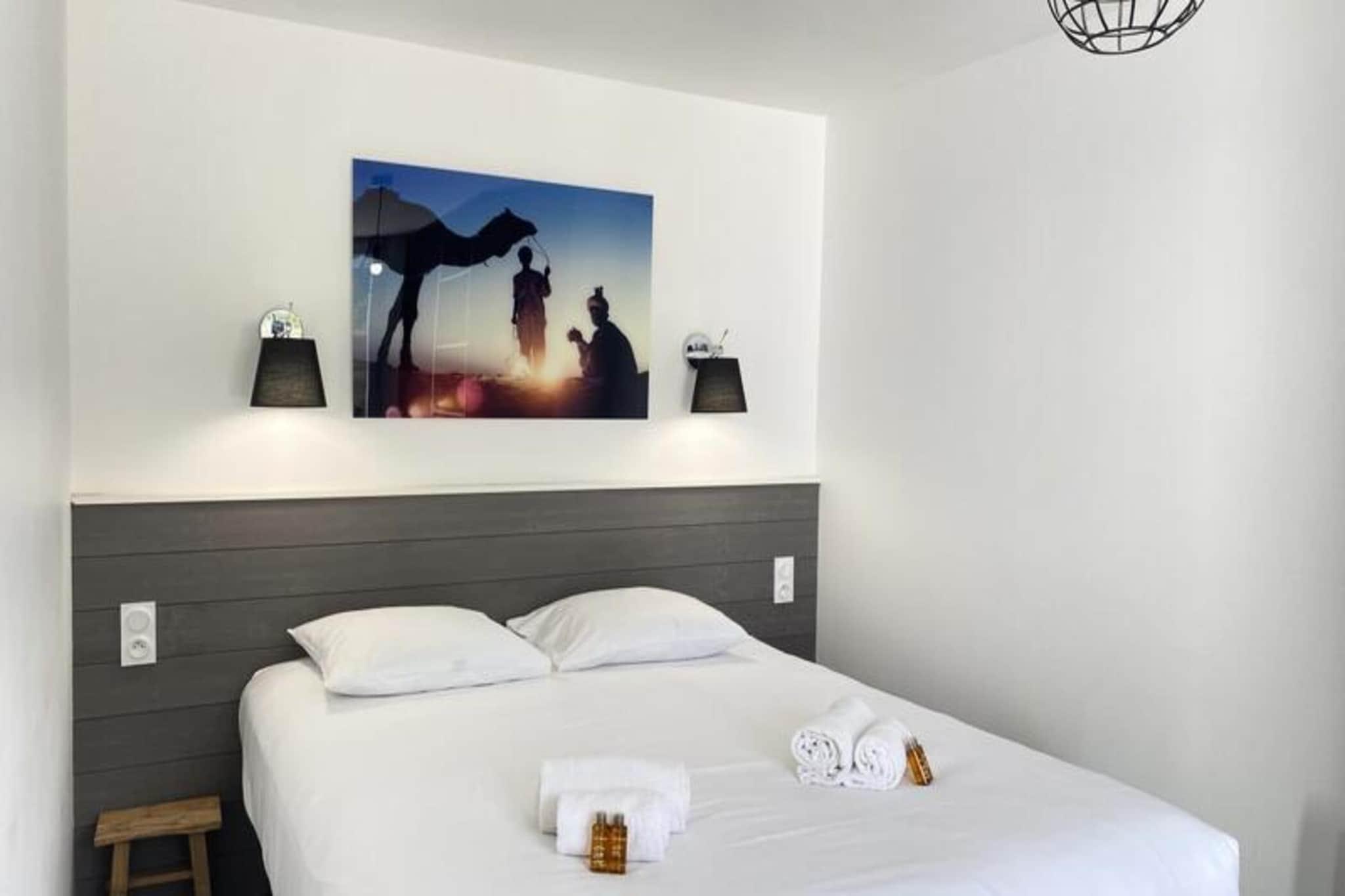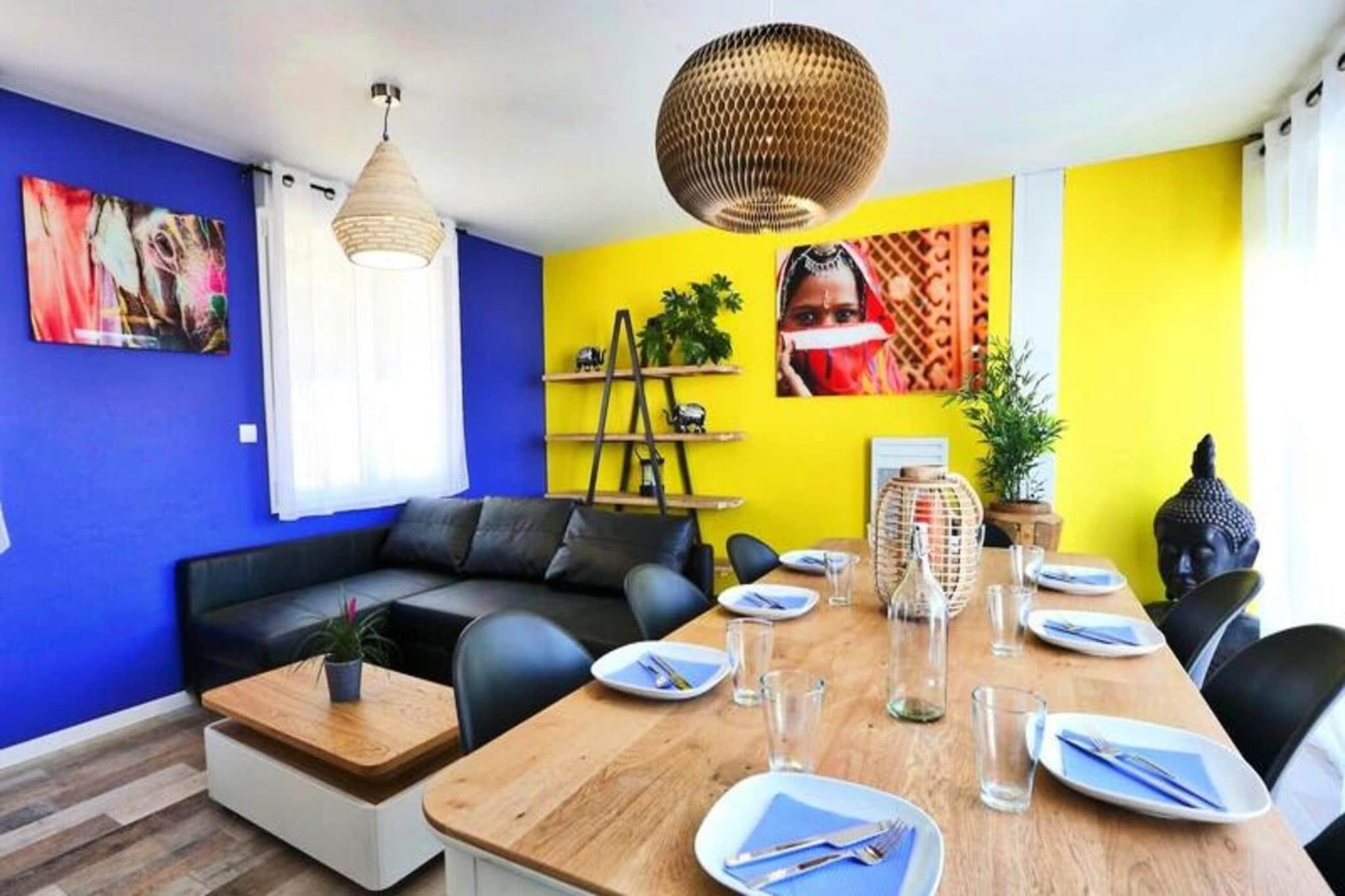 Dette feriehus p? 65 m², indrettet med et indisk tema, kan rumme op til 8 g?ster. Indkvarteringen omfatter tre sovev?relser med dobbeltsenge og en sovesofa i stuen til ekstra soveplads. Ejendommen er k?ledyrsvenlig og accepterer k?ledyr under 25 kg mod et ekstra gebyr. En privat terrasse giver et fredeligt sted at slappe af med havem?bler, et udend?rs bord og stole og en grill eller elektrisk plancha til udend?rs m?ltider. K?ledyr er velkomne mod et ekstra gebyr, men ejendommen er ikke-ryger. Ejendommen ligger i hjertet af Pays-de-Monts nationalskov, kun f? minutter fra stranden. G?sterne kan udforske de omkringliggende cykelstier, der er perfekte til at cykle eller g?. En r?kke caf?er, lokale butikker og markeder er let tilg?ngelige for en ?gte smag af regionen. Den n?rliggende naturlige sk?nhed sikrer et afslappende og behageligt ophold. Indvendigt omfatter det fuldt udstyrede k?kken k?leskab, fryser, opvaskemaskine, ovn, mikroovn og kaffemaskine. Opholdsstuen har tv og h?rt?rrer, mens vaskemaskine, strygebr?t og strygejern ogs? er til r?dighed. Den private 6-personers spa er tilg?ngelig mod et ekstra gebyr, og tilbyder ekstra afslapning under dit ophold. Valgfri reng?ring er tilg?ngelig, og et babys?t kan rekvireres mod et till?gsgebyr.