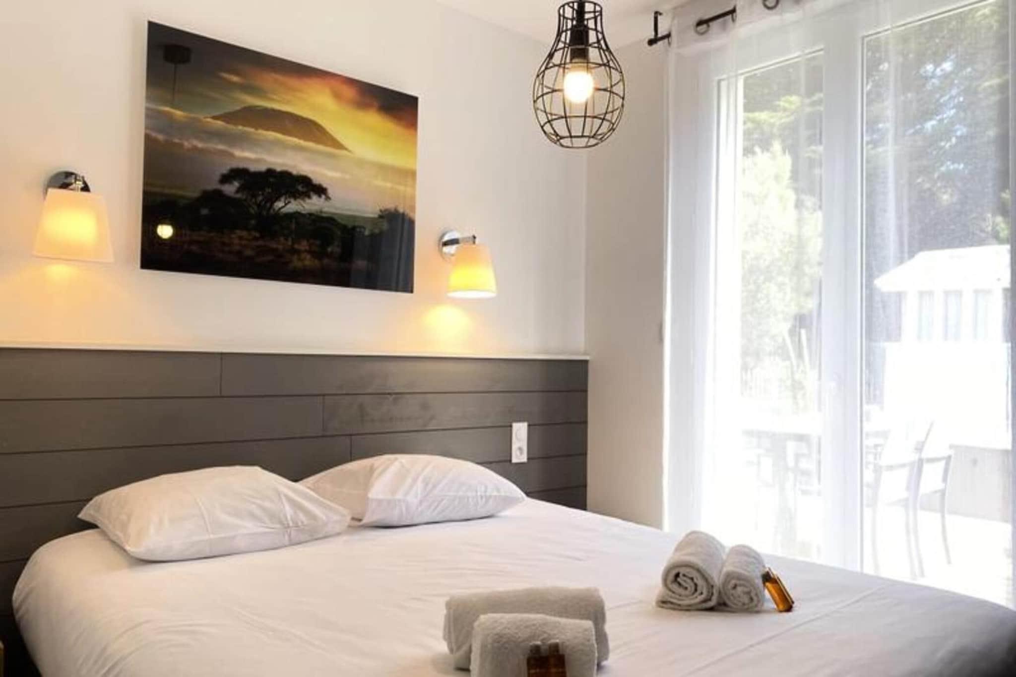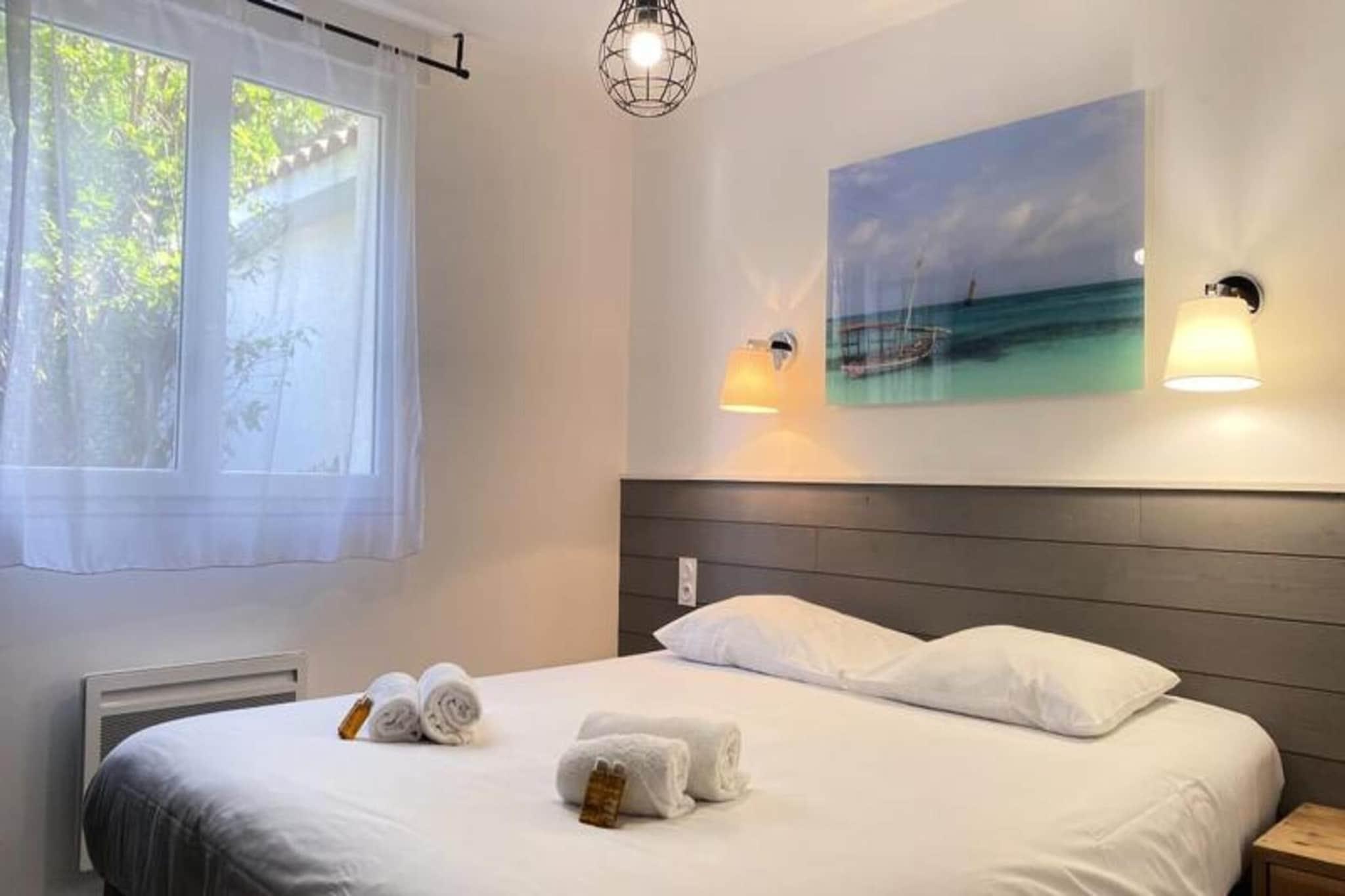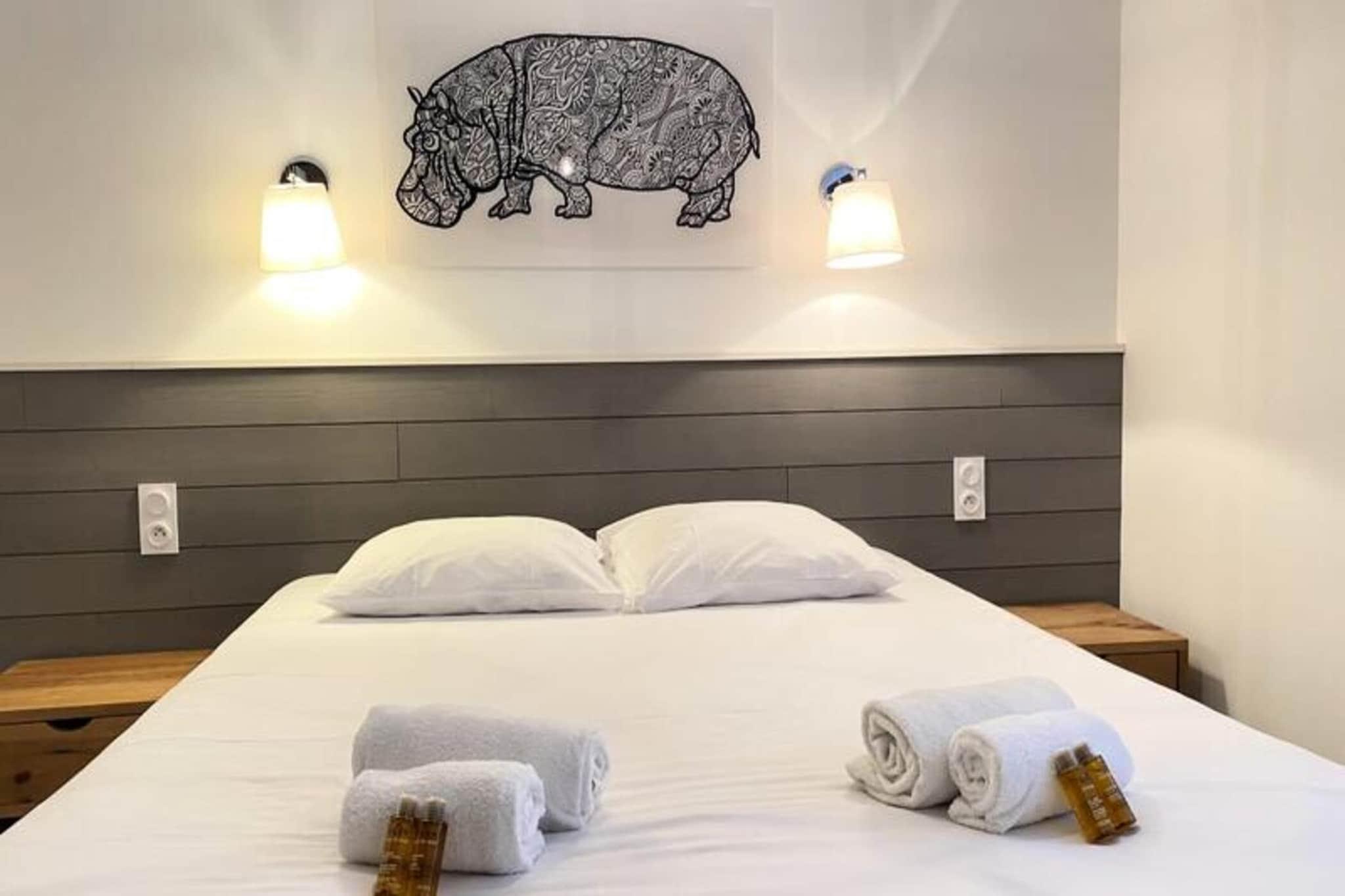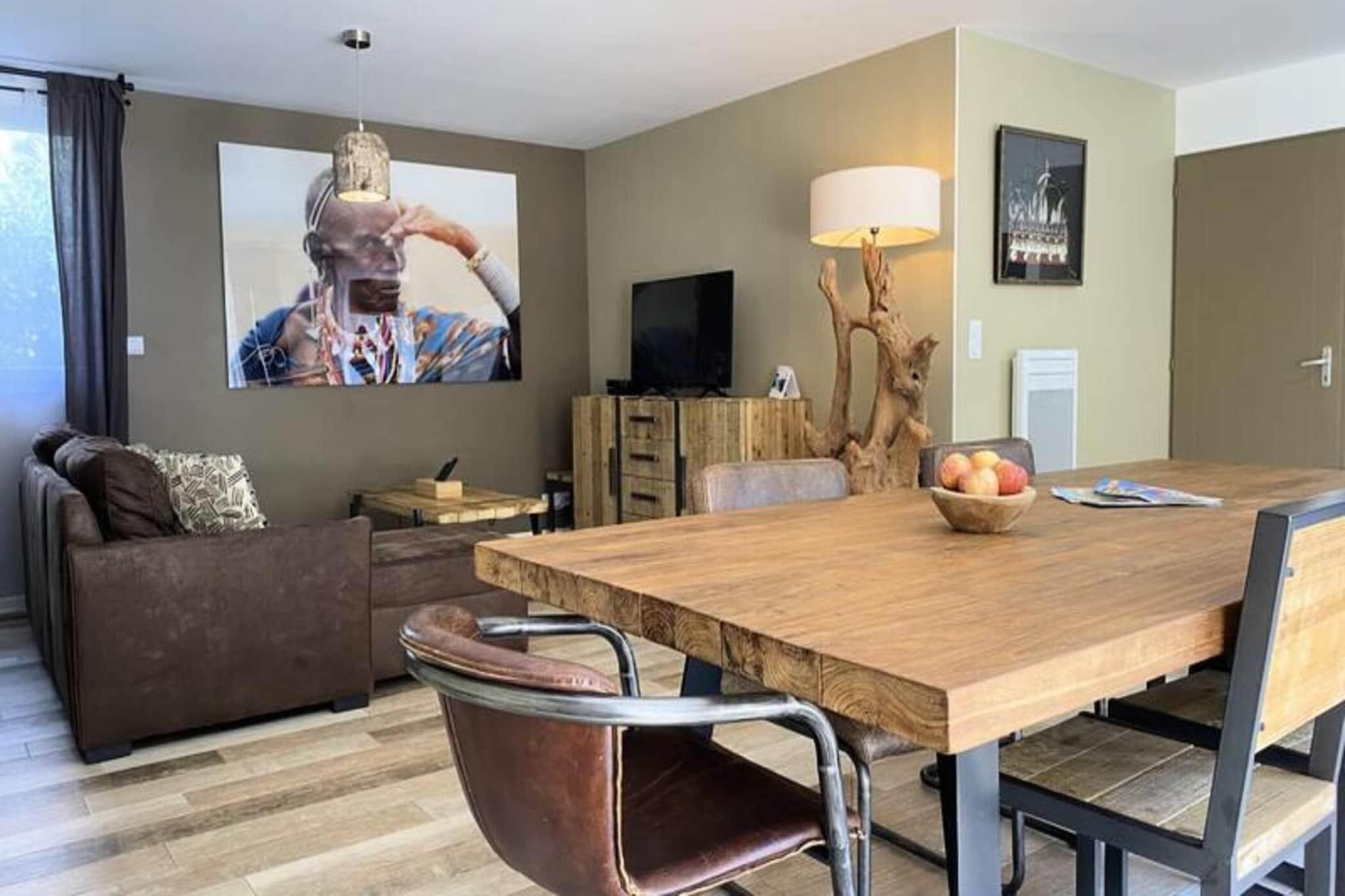 Dette feriehus p? 80 m², med tema omkring Tanzania, tilbyder et fredeligt tilflugtssted for op til 10 personer. Det har 4 sovev?relser med dobbeltsenge og en sovesofa til dobbeltseng i stuen. Hjemmet er k?ledyrsvenligt for dyr under 25 kg, mod et lille ekstra gebyr. Senget?j leveres, men h?ndkl?der er ikke inkluderet, med mulighed for leje. En privat spa til 6 personer er ogs? tilg?ngelig mod et ekstra gebyr, perfekt til at slappe af efter en dag med aktiviteter. Ejendommen er ikke egnet til st?jende k?ledyr, og g?ster bedes rydde op inden afrejse, medmindre de v?lger slutreng?ring. Beliggende i hjertet af Pays-de-Monts nationalskov, er hjemmet kun f? minutter fra stranden og omgivet af natursk?nne cykelstier. I n?rheden kan g?sterne udforske naturstier, slappe af p? stranden eller bes?ge lokale caf?er og markeder for at opleve regionens charme. De rolige skovmilj?er giver en fredfyldt kulisse for en afslappende ferie. Ejendommen omfatter et fuldt udstyret k?kken med ovn, k?leskab, fryser, opvaskemaskine, mikroovn, kaffemaskine og andre v?sentlige ting. Den rummelige opholdsstue har et fjernsyn med TNT-kanaler, og badev?relset er veludstyret med en h?rt?rrer. Nyd udend?rs spisning p? tr?terrassen med havem?bler, parasol og grillfaciliteter, perfekt til afslappede m?ltider.