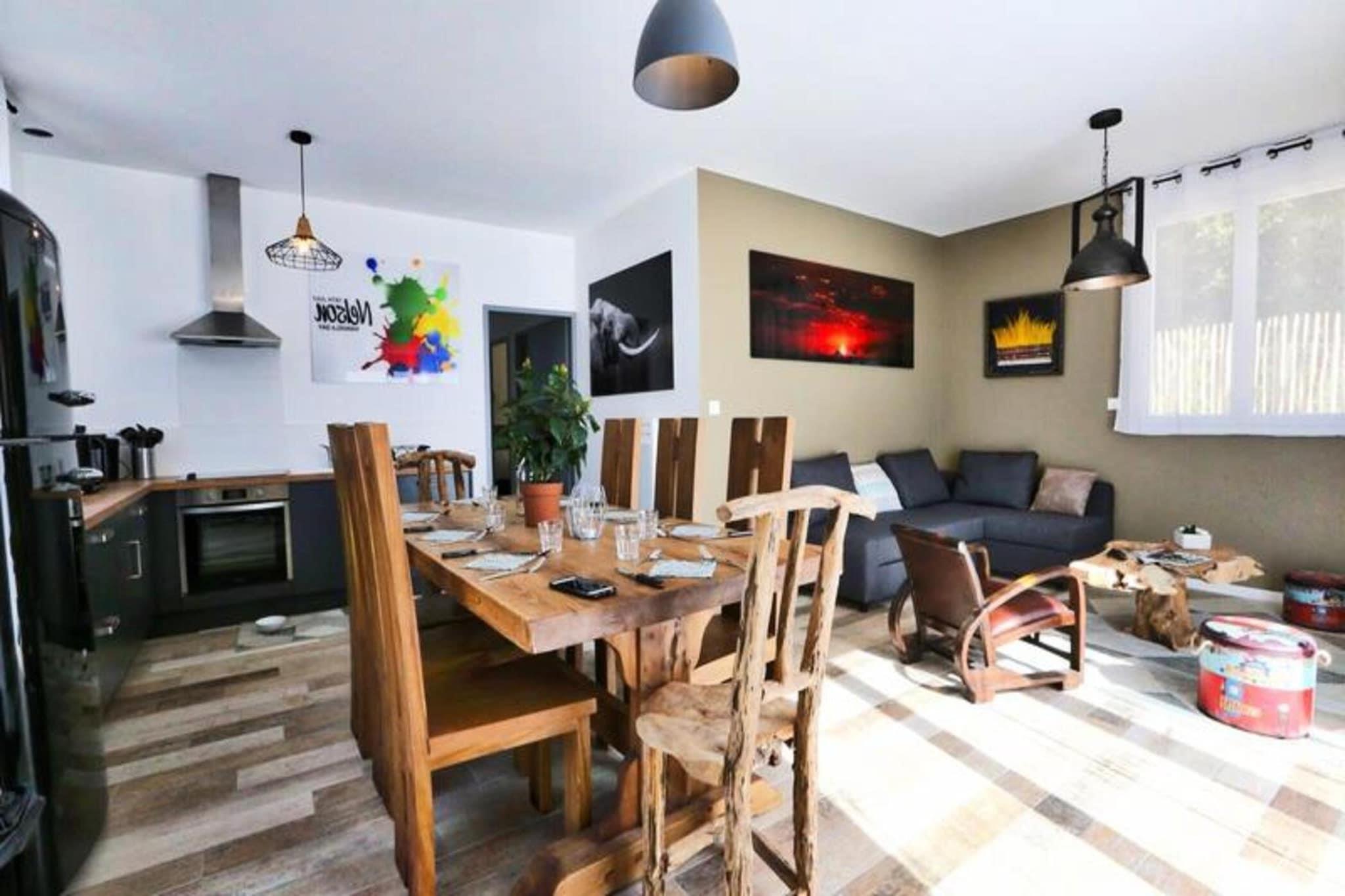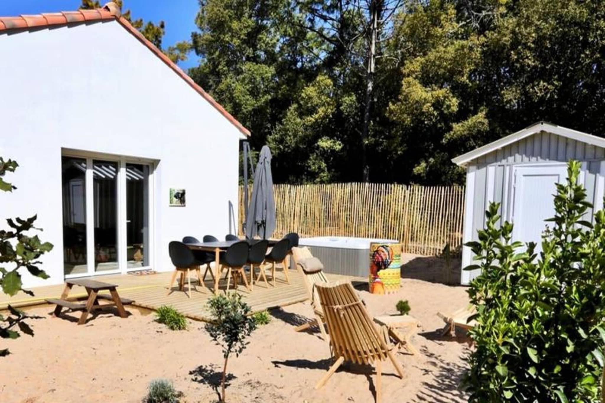 Beliggende i hjertet af en smuk skov, er dette charmerende feriehus på 70 m² indrettet med et sydafrikansk tema og kan komfortabelt rumme op til 8 gæster. Ejendommen har tre hyggelige soveværelser med dobbeltsenge og en konvertibel dobbelt sovesofa i stuen til ekstra soveplads. Det er kæledyrsvenligt og tillader velopdragne kæledyr, der vejer mindre end 25 kg mod et mindre tillæg. En privat terrasse med havemøbler tilbyder et fredeligt tilflugtssted, komplet med et udendørs bord, stole, parasol og en grill til udendørs spisning. For dem, der søger ultimativ afslapning, inkluderer ejendommen også en valgfri privat 6-personers spa i haven. Ejendommen er ideelt beliggende kun få minutter fra stranden og omgivet af den fantastiske Pays-de-Monts nationalskov, perfekt for naturelskere. Gæsterne kan udforske talrige nærliggende cykelstier og nyde de rolige omgivelser. Lokale caféer og markeder er inden for rækkevidde, hvilket giver et praktisk sted at få en bid mad eller shoppe efter lokale produkter. Den fredelige atmosfære og nærheden til stranden sikrer et afslappende og behageligt ophold. Feriehuset er fuldt udstyret med et veludstyret køkken med ovn, køleskab, fryser, opvaskemaskine, mikroovn, kaffemaskine, brødrister og alt nødvendigt køkkenudstyr. Opholdsstuen byder på et fjernsyn med TNT-kanaler, en hårtørrer og en vaskemaskine for ekstra bekvemmelighed. Ejendommen er velholdt, med mulighed for yderligere rengøring efter anmodning.