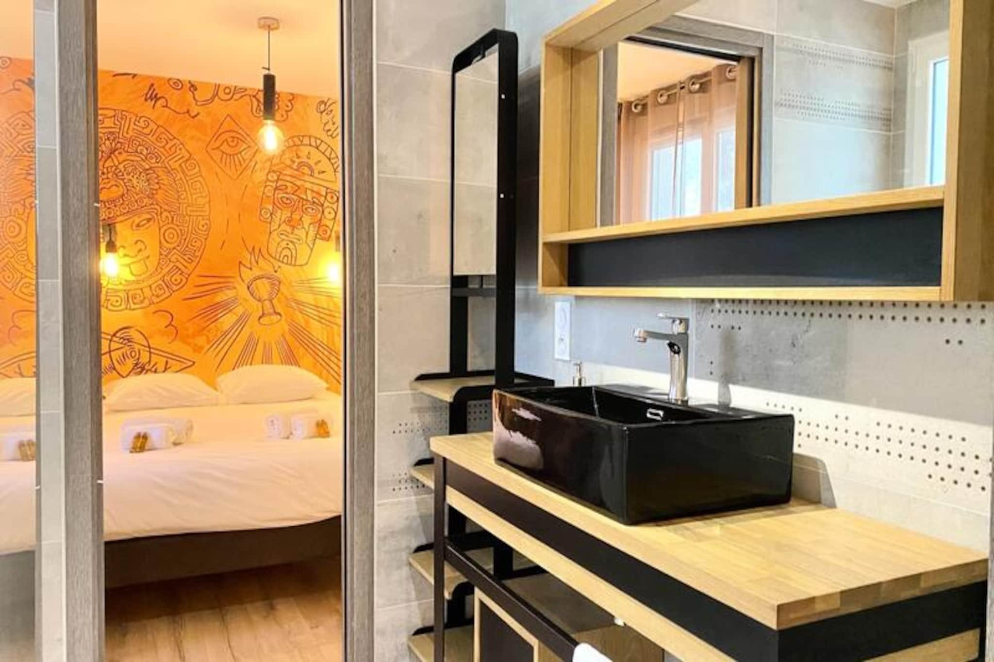 Denne rummelige villa på 280 m², beliggende i hjertet af skoven, tilbyder et roligt tilflugtssted for op til 15 personer. Det har 8 soveværelser, herunder 7 dobbeltsenge og 2 enkeltsenge (som kan omdannes til en dobbeltseng). Villaen har også 4 badeværelser og 4 toiletter, hvilket gør den perfekt til store grupper. Gæsterne kan nyde komforten i et stort receptionsområde med en lounge, stue og bar. Kæledyr under 25 kg er tilladt, hvilket gør det ideelt for familier med lodne ledsagere. Beliggende kun få minutter fra stranden, er denne villa omgivet af den fantastiske Pays-de-Monts nationalskov, der tilbyder rigelige muligheder for at udforske nærliggende cykelstier. Området giver også nem adgang til lokale caféer, markeder og butikker, hvilket gør det til en perfekt destination for både udendørsentusiaster og dem, der søger afslapning. Villaen er fuldt udstyret med moderne bekvemmeligheder, herunder et køkken med ovn, køleskab med fryser, opvaskemaskine, mikroovn og en Krups fuldkorns kaffemaskine. Et velværerum med sauna og balneo er til rådighed, og udenfor kan I slappe af på den store private terrasse med havemøbler, grill og svømmespa. Yderligere funktioner omfatter bordfodbold, brætspil og en vandcykel.