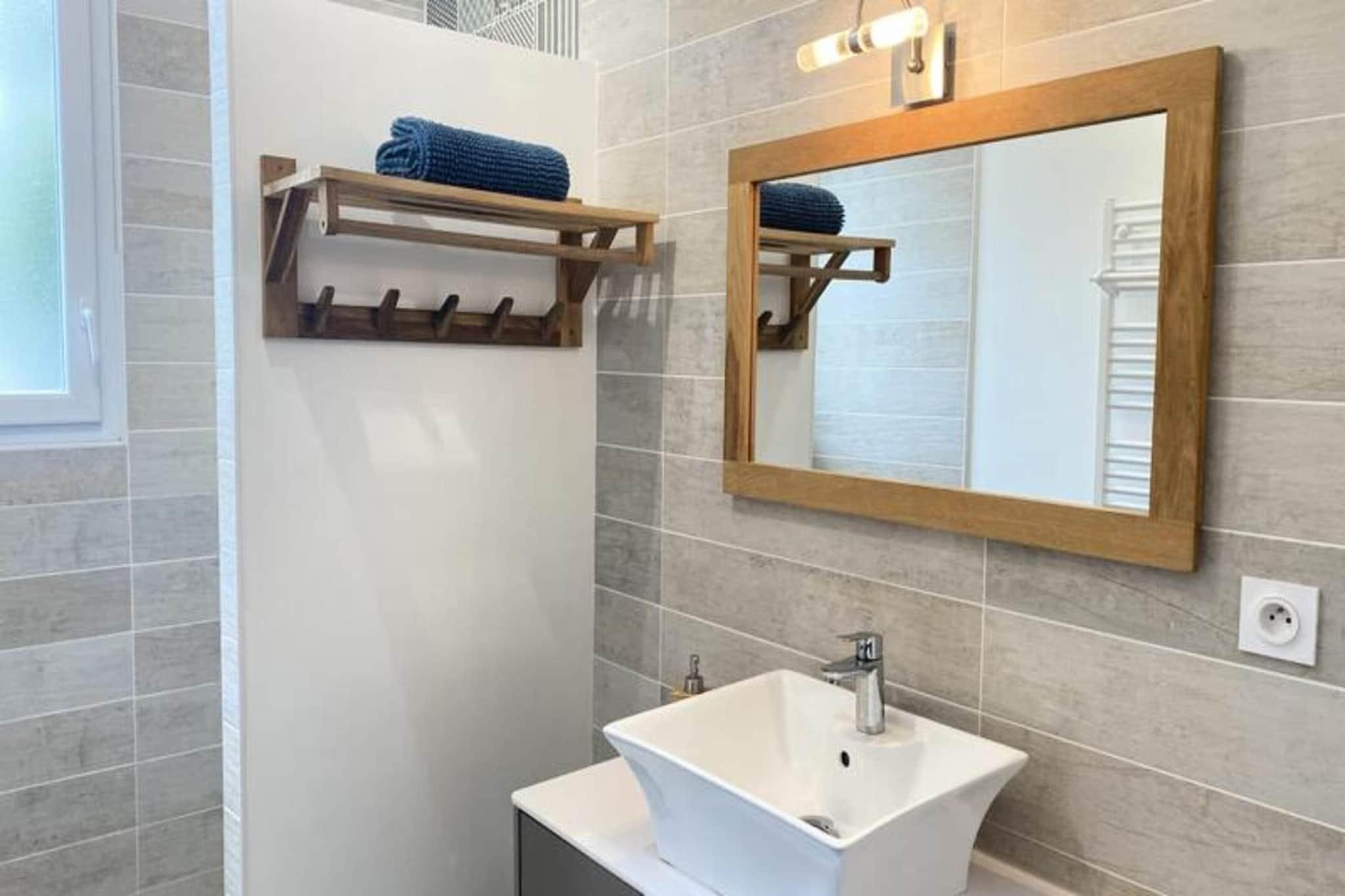 Denne charmerende lejlighed p? 50 m², designet med et thai-inspireret tema, tilbyder et afslappende ophold for op til 6 g?ster. I stuen er der en sovesofa til dobbeltseng, mens de to sovev?relser hver har dobbeltsenge. Ejendommen er ikke-ryger, og k?ledyr under 25 kg og ikke st?jende er velkomne mod et gebyr. Et depositum p? EURO 750 er p?kr?vet, og h?ndkl?der leveres ikke, selvom leje er tilg?ngelig. En privat 6-personers spa er tilg?ngelig mod et ekstra gebyr, perfekt til at slappe af. G?ster forventes at g?re rent inden afrejse eller kan v?lge en slutreng?ring for 85 EURO. Beliggende i hjertet af Pays-de-Monts National Forest tilbyder dette tilflugtssted nem adgang til naturen. Stranden ligger kun f? minutter v?k, og der er adskillige cykelstier omkring omr?det, som er ideelle for udend?rsentusiaster. De fredelige skovmilj?er giver en fredfyldt kulisse for en foryngende ferie. I n?rheden finder du lokale butikker, caf?er og restauranter, du kan udforske under dit ophold. Lejligheden har et fuldt udstyret k?kken med ovn, k?leskab, fryser, opvaskemaskine, mikroovn, keramisk kogeplade, kaffemaskine, br?drister, Nespresso-maskine og kedel. Yderligere faciliteter omfatter vaskemaskine, strygebr?t, tv med TNT-kanaler og h?rt?rrer. Udenfor forbedrer en rummelig tr?terrasse med havem?bler, en parasol og en grill eller elektrisk plancha ferieoplevelsen.