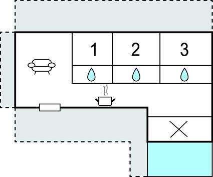 Badeværelse 6m2 (nr. 1) - WC. Varmt og koldt vand. Bruser