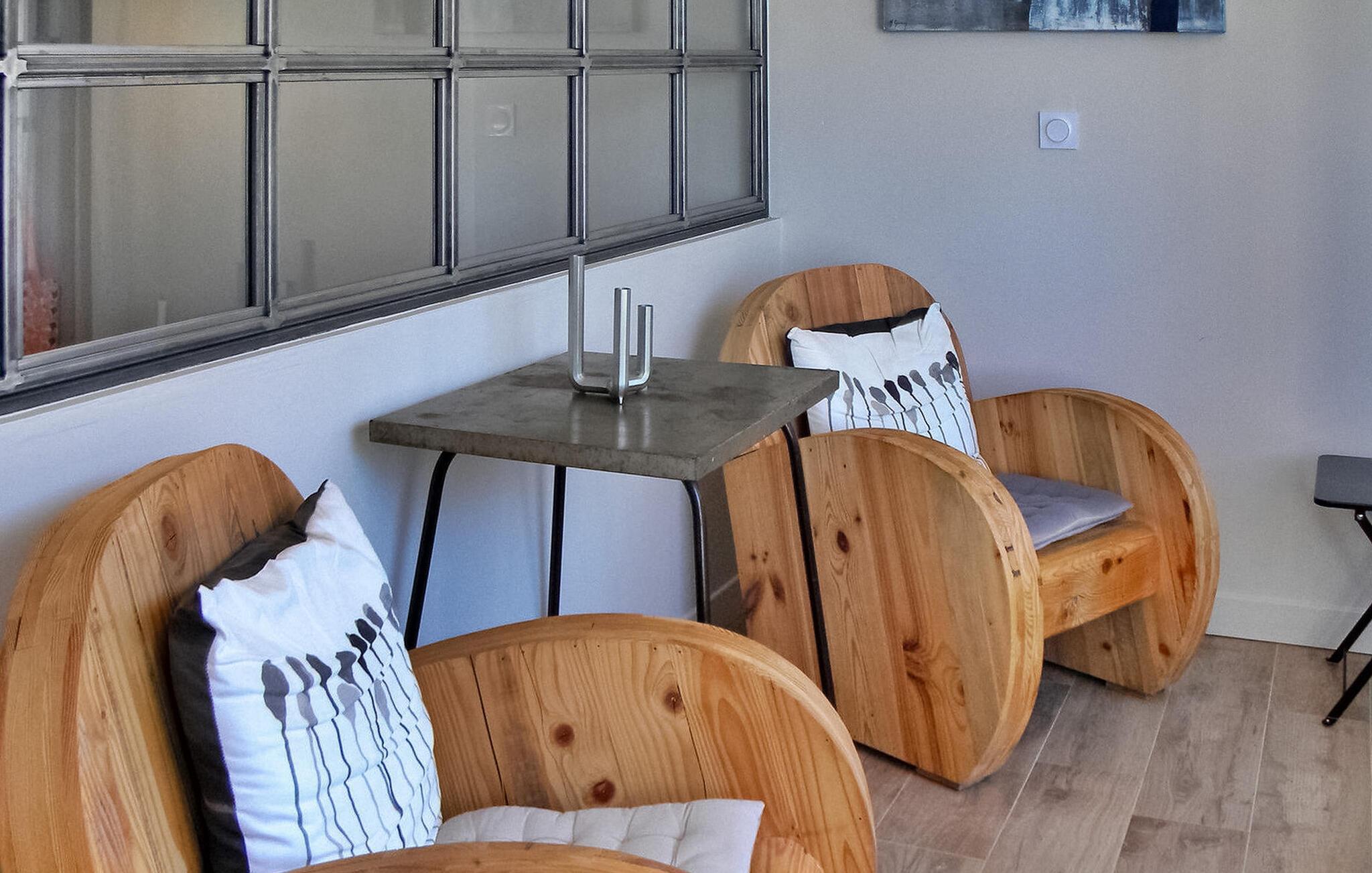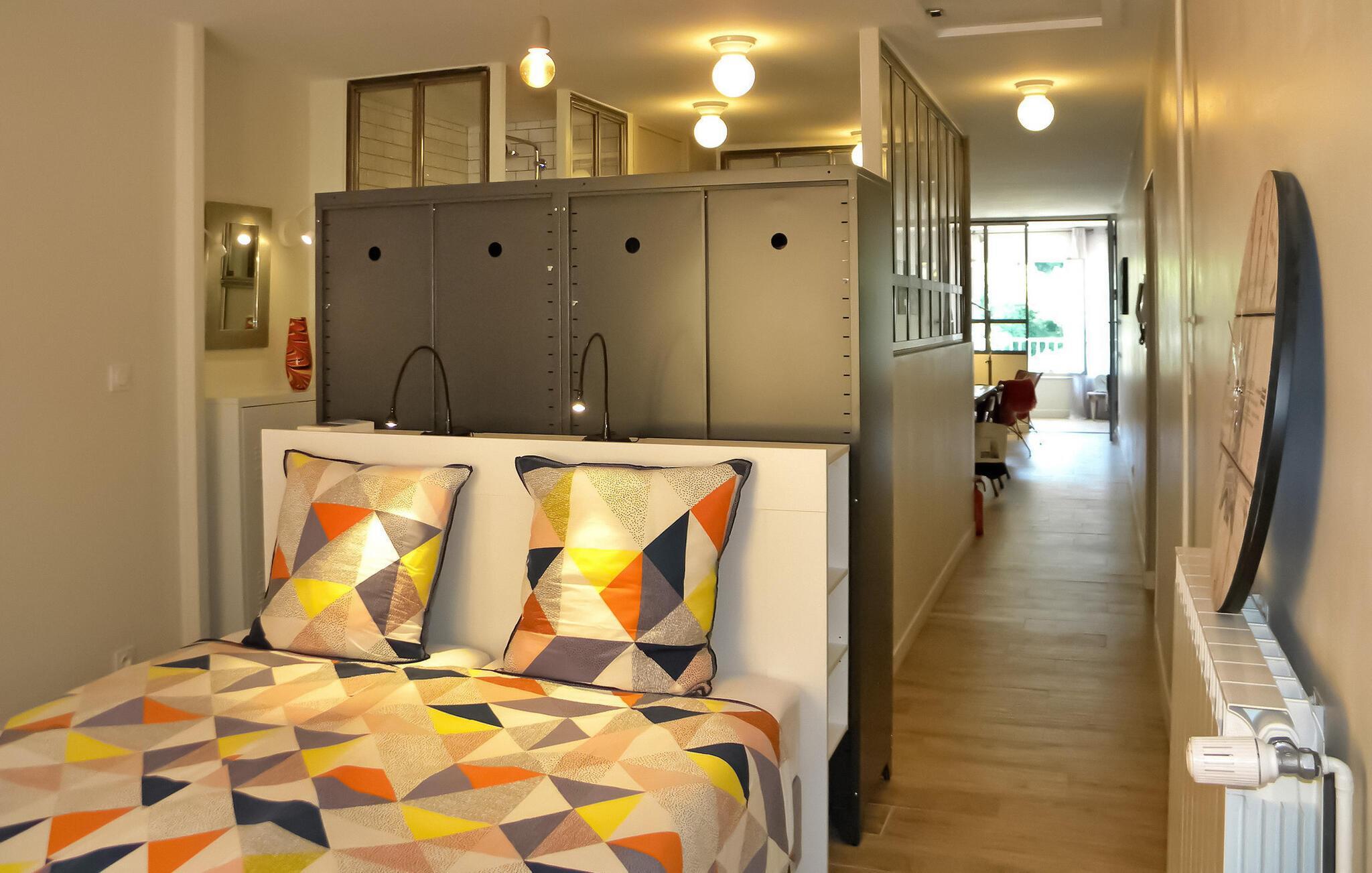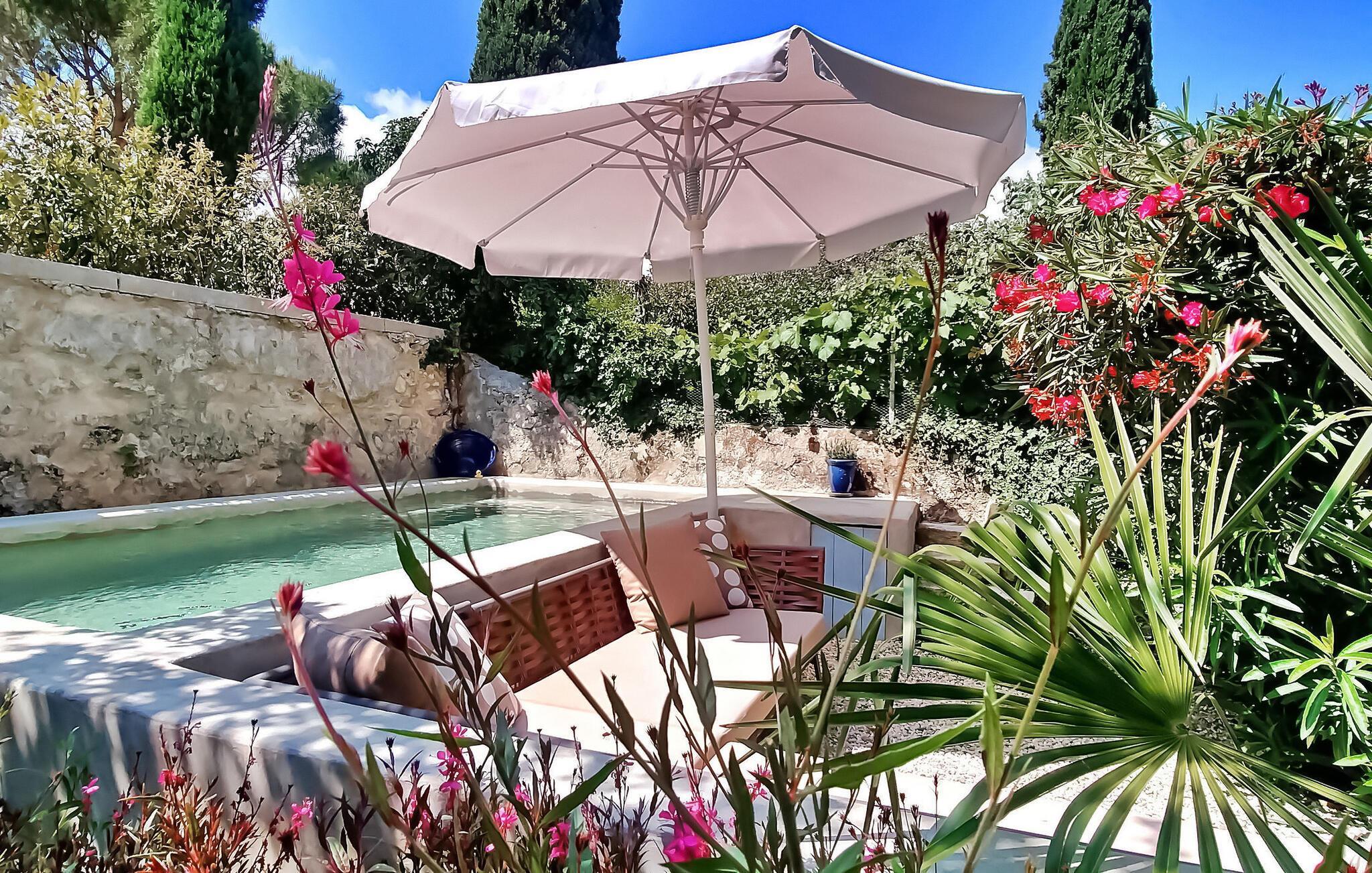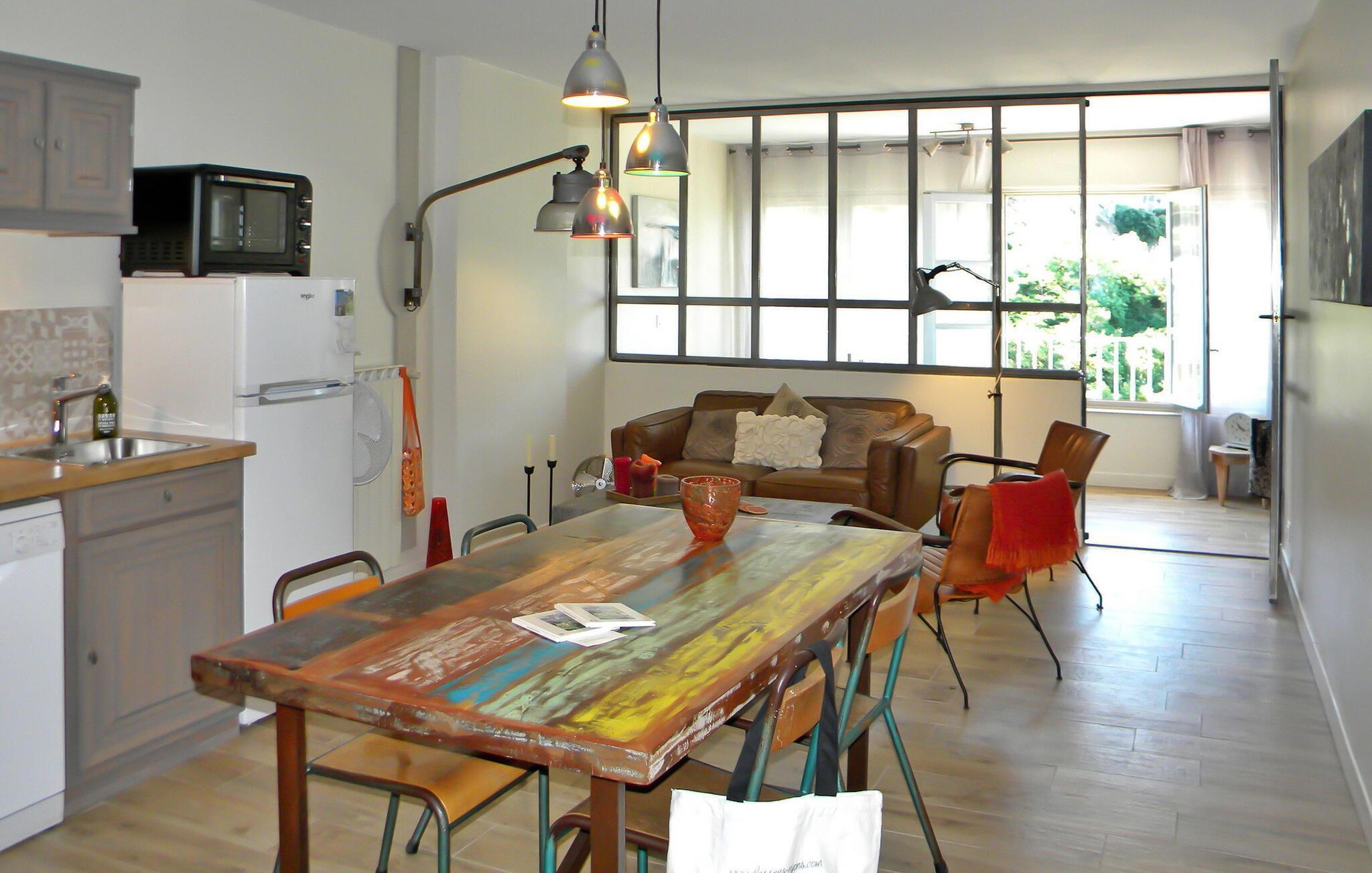 Beliggende mellem Nyons' historiske centrum og flodbredden, tilbyder denne loft-stil lejlighed i et smukt restaureret palæ et fortryllende ophold. En del af et omhyggeligt renoveret palæ med tre hyggelige ferielejligheder, dette rum er ideelt til en intim flugt. Imødekommende ejere, der bor i stueetagen, sikrer en varm modtagelse, mens de respekterer gæsternes privatliv. Haven, den lille pool og den nærliggende flod giver dejlige steder til afslapning. Lejligheden i loftstil på tredje sal byder på en fascinerende udsigt over floden, den romerske bro og de majestætiske bjerge fra loggiaen. Gæster deler udendørs rum med andre beboere og ejere, såsom en malerisk have udstyret med møbler og liggestole, sammen med et forfriskende romersk bassin (4,5 x 2,5 m), perfekt til afkøling. Ved siden af den berømte romerske bro tilbyder flodens strande mulighed for afslappede svømmeture. Parkeringsmulighederne omfatter en nærliggende gade og offentlig parkering ca. 50 m fra huset. Derudover fungerer palæets gamle kælder, elegant møbleret, som et køligt afslapningsrum, mødelokale eller et sted for at prøve regionale produkter. Bemærk venligst, at dyr ikke er tilladt af hensyn til alle gæsters komfort og ro. Huset ligger i centrum af Nyons, ved floden med en storslået udsigt over floden, den romerske bro og bjergene. Alle butikker og restauranter ligger inden for gåafstand. Stort provencalsk marked hver torsdag.