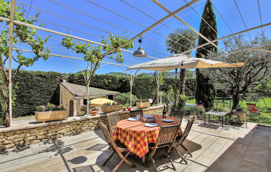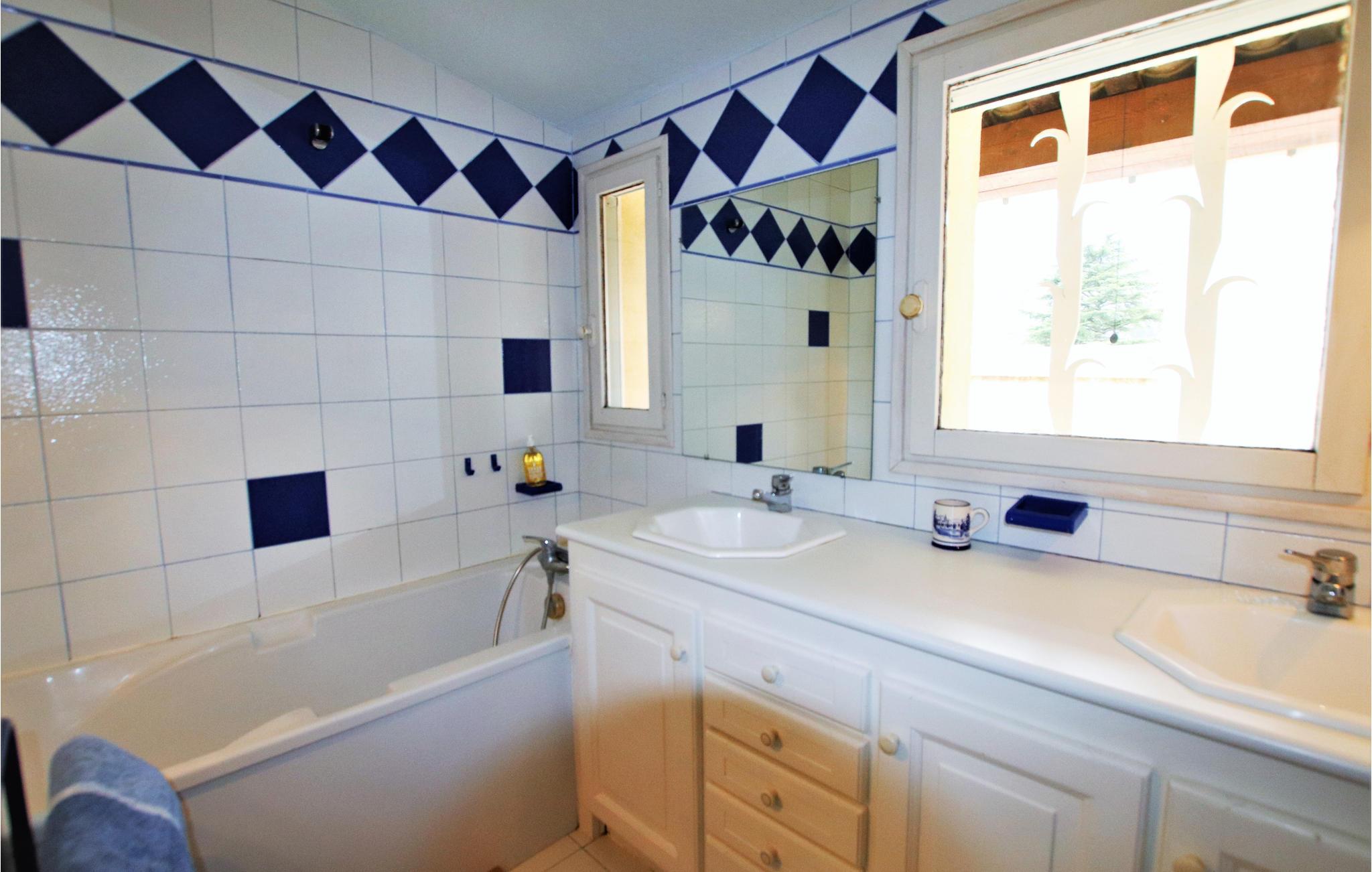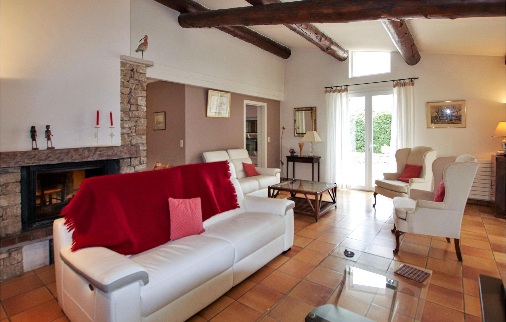 Denne atypiske familiebolig er designet af en arkitekt og har forskellige solterrasser, et solarium og mange afslapningsområder. Huset ligger midt i en grøn, skovklædt og lukket park med en stor privat pool samt et sommerkøkken. Indretningen er venlig, varm og behagelig med fokus på kvalitetsmaterialer, så her er det nemt at sænke skuldrene og slappe af.