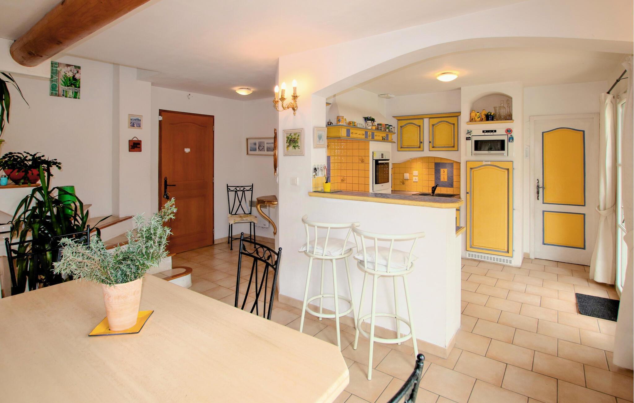 Denne velindrettede villa tilbyder jer en rummelig og komfortabel base for en uforglemmelig ferie i smukke Provence. Eksperimentér med friske krydderurter i det indbydende køkken og nyd jeres måltider i den lyse og hyggelige opholdsstue. Planlæg jeres aktiviteter i den behagelige sofa, og slap af efter en begivenhedsrig dag med en hyggelig spilleaften med familien.