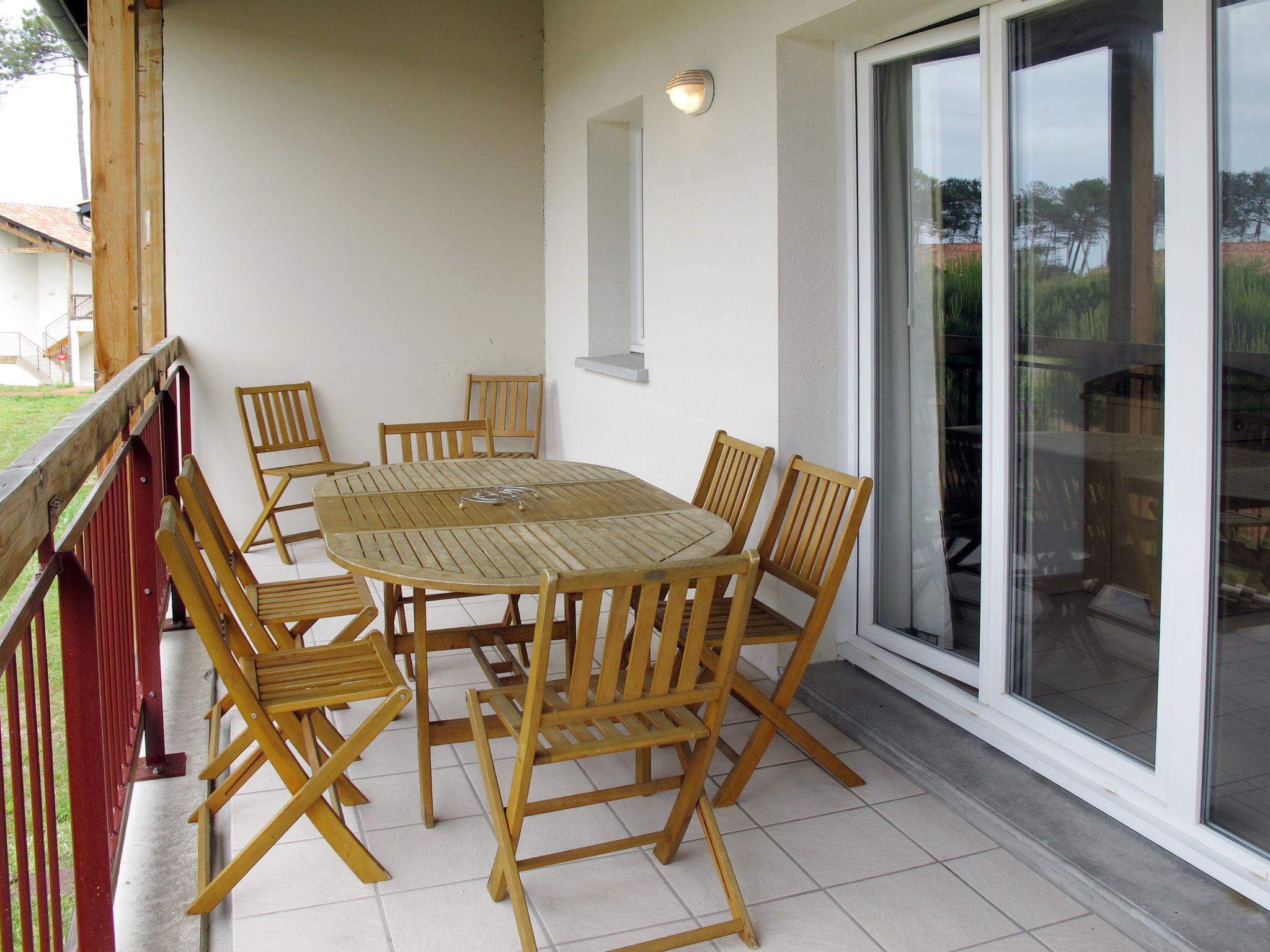 Free shuttle service to the beach in July/August. Resort "L'Allée des Dunes". 50 houses in the residence. 100 apartments in the residence. 3 km from the centre of Ondres, 12 km from the centre of Bayonne, 20 km from the centre of Biarritz, 1.4 km from the sea. For shared use: property 5 ha (fenced) with lawn and trees, swimming pool (400 m2, seasonal availability: 05.Apr. - 29.Aug.). Children's pool, tennis, table tennis, boccia. In the complex: reception, WiFi, table tennis, washing machine, tumble dryer (for shared use, extra). Bread roll service. Parking. Shop 500 m, supermarket 3 km, sandy beach 1.4 km. Surf school 1 km, riding stable 1 km. Please note: the photograph shows a typical example. The holiday properties may differ in living space, floorplan, equipment and furnishing.