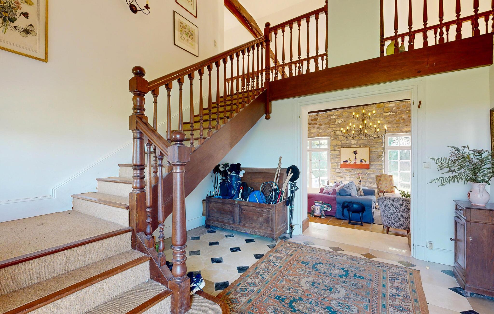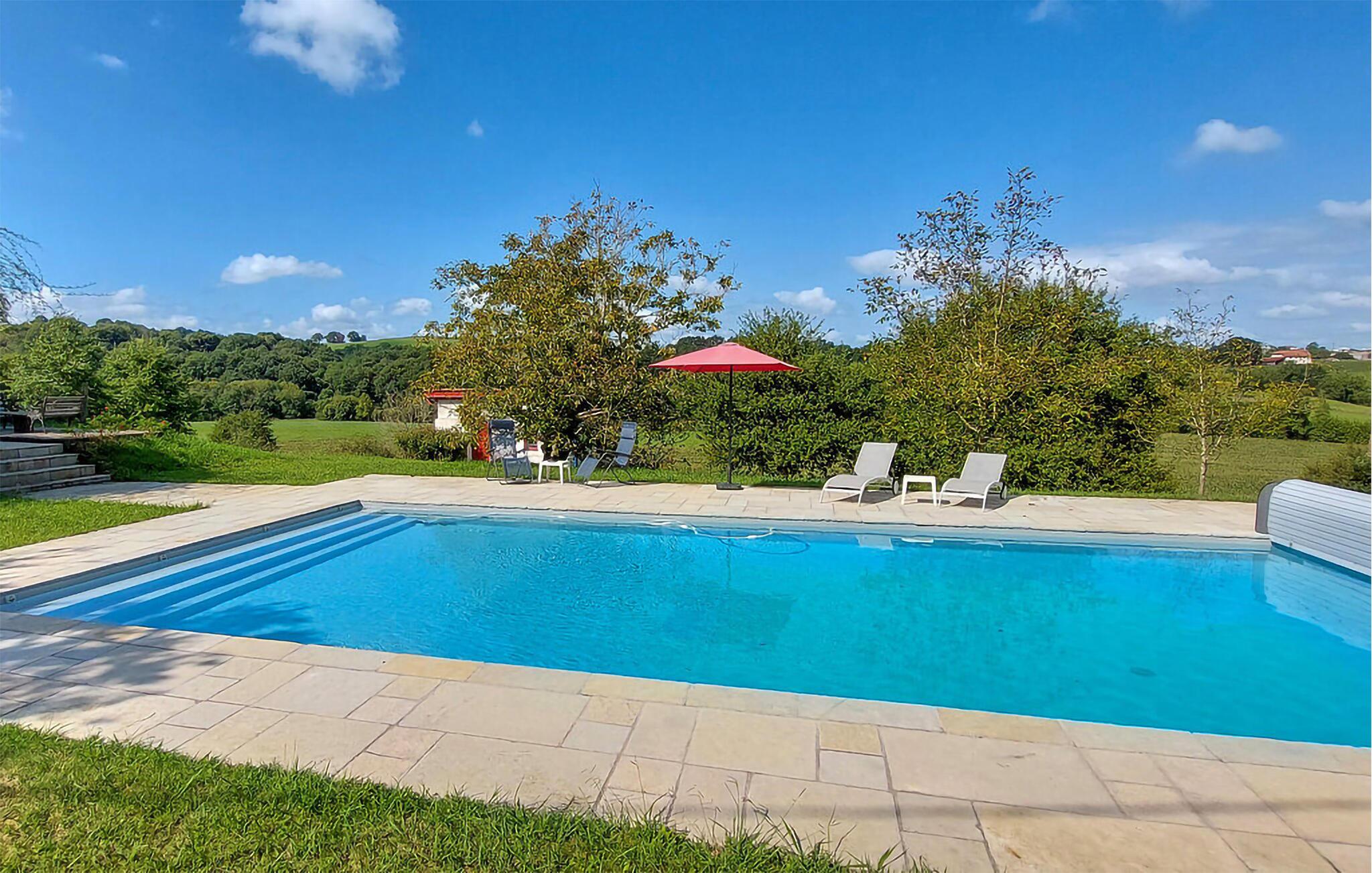 Dette charmerende landhus i typisk baskisk stil forener rustik karakter, moderne komfort og fremragende fritidsmuligheder. Beliggende i rolige omgivelser, men alligevel kun en kort køretur fra kysten, er det et ideelt udgangspunkt for familier og grupper, der ønsker at kombinere afslapning og eventyr. Indenfor venter der jer rummelige opholdsrum med synlige bjælker, naturstensdetaljer og hyggelige pejse, som skaber en varm og indbydende atmosfære. Lav mad og spis sammen i det fuldt udstyrede landkøkken.