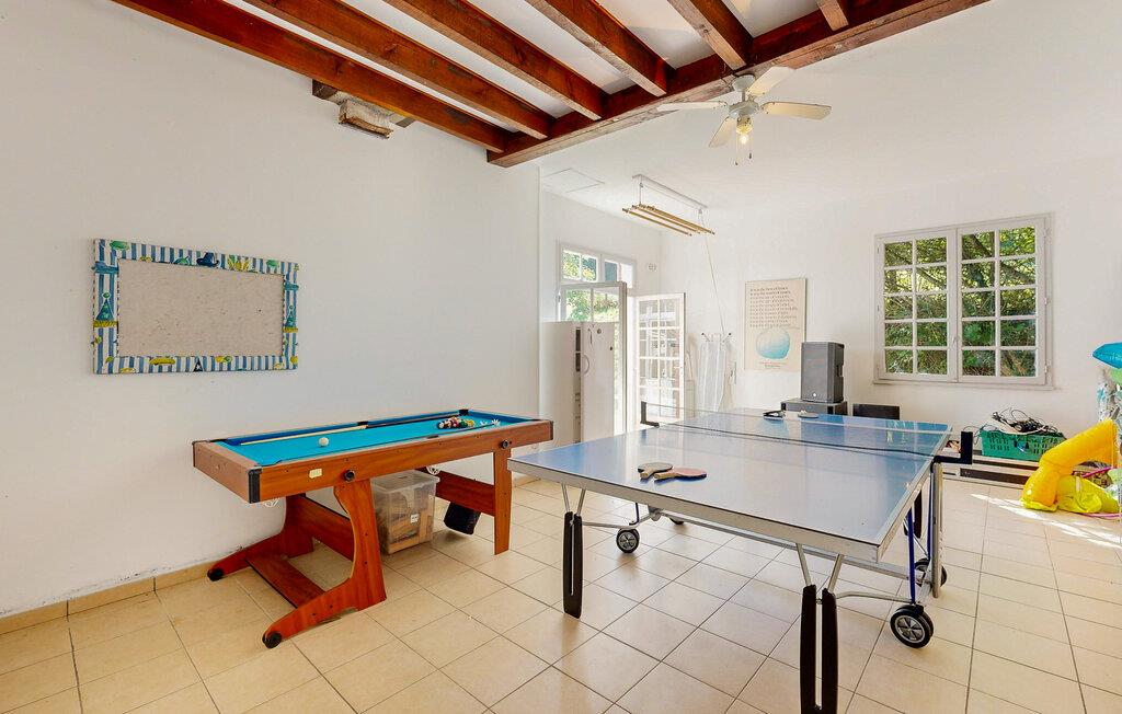 Udenfor står en stor swimmingpool, en privat tennisbane og masser af plads til leg og afslapning til rådighed for jer. Terrassen indbyder til hyggelige stunder sammen, hvor I kan nyde solen, den fantastiske udsigt og kolde drikke. Brug de skyggefulde terrasser til måltider under åben himmel eller blot til at nyde roen i landskabet.