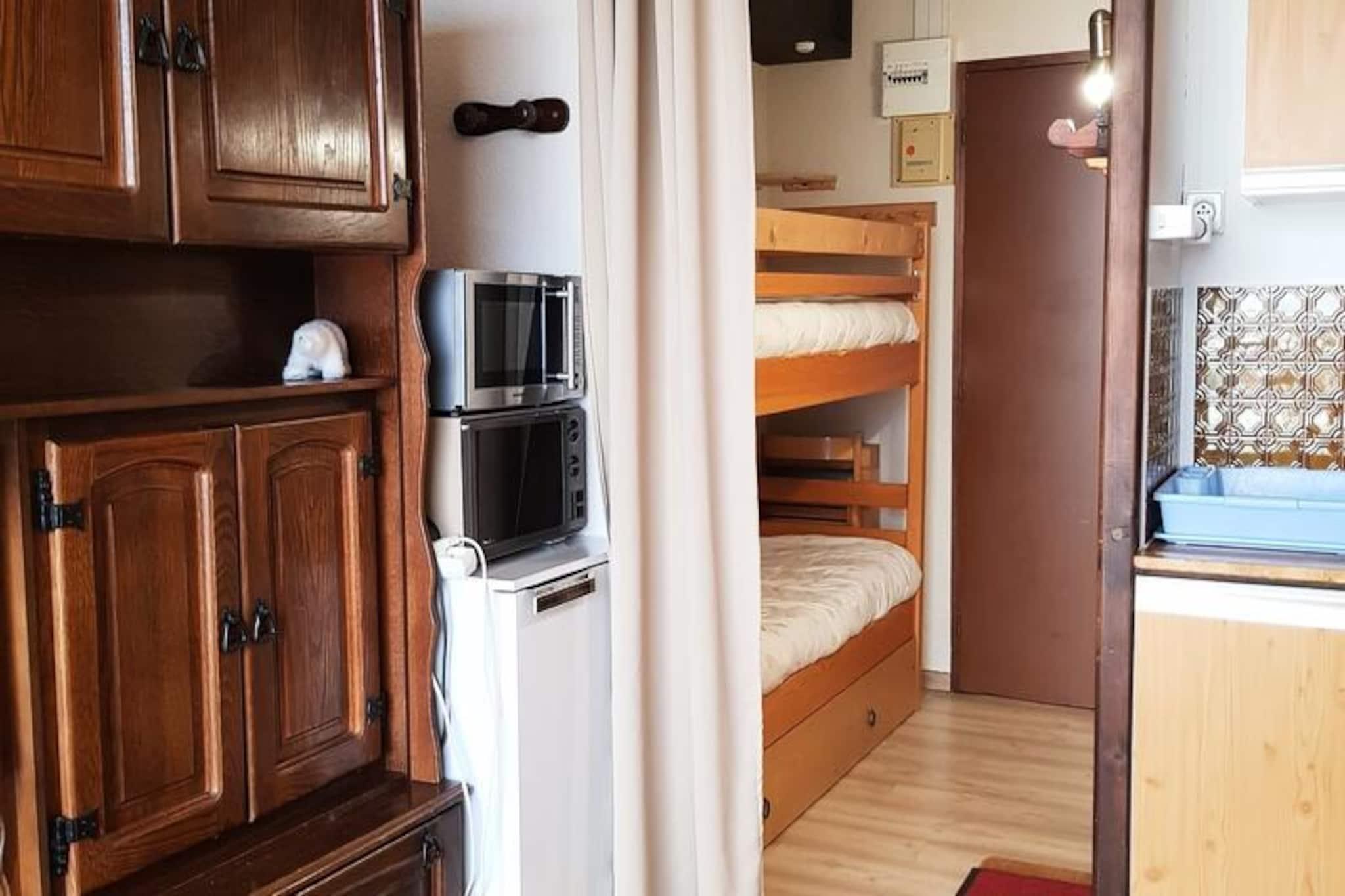 Denne charmerende studiohytte i Orcières-Merlette er badet i sollys og tilbyder en betagende udsigt over dalen. Den er et paradis for bjergentusiaster. Kun 50 meter fra pisterne er det det perfekte tilflugtssted for dem, der søger spændingen ved alpine eventyr kombineret med komforten i en hyggelig, veludstyret bolig. Uanset om du er her for at stå på ski på uberørte pister eller blot nyde den fredfyldte bjergatmosfære, lover denne ejendom et uforglemmeligt ophold. Studiet, der måler 23 m², er omhyggeligt designet til at rumme op til fire gæster. Stuen har en komfortabel dobbelt sovesofa, mens et separat soveområde tilbyder to hyggelige køjesenge, hvilket gør det ideelt for familier eller små grupper. Tekøkkenet er udstyret med to elektriske kogeplader, et køleskab, en mikrobølgeovn og en opvaskemaskine til seks personer, så du har alt, hvad du behøver for at tilberede solide måltider efter en dag på pisterne. Den sydvestvendte altan indbyder til afslapning og nydelse af de fantastiske alpine solnedgange, mens moderne faciliteter som tv og elektrisk håndklædetørrer øger din komfort. Kæledyr er velkomne, hvilket gør det til et perfekt valg for dem, der rejser med firbenede venner. Beliggende i en bolig med to adgangssteder finder du butikker og vigtige serviceydelser bekvemt i nærheden. Om vinteren er beliggenheden uovertruffen for skiløbere, og om sommeren forvandles området til et paradis for vandrere og naturelskere. Orcières-Merlette gennemgår også spændende renoveringer for at forbedre sine faciliteter, hvilket sikrer en endnu bedre oplevelse i fremtiden. Uanset om du er tiltrukket af spændende udendørsaktiviteter eller den fredelige charme i de franske alper, tilbyder denne studiohytte en varm og indbydende base for din bjergferie. Book dit ophold og skab minder, der vil vare hele livet.