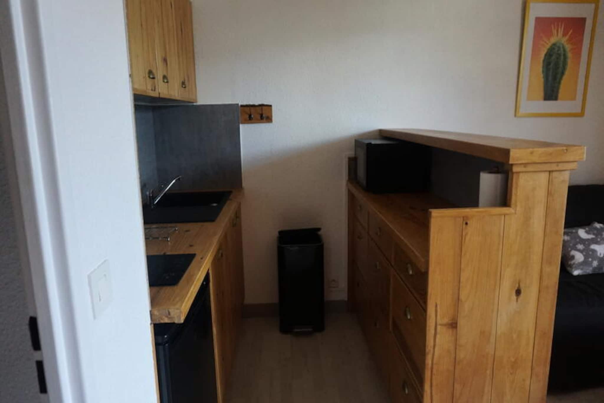 Højt over de fredfyldte dale i Hautes-Alpes tilbyder denne charmerende studiohytte i Orcières-Merlette et hyggeligt tilflugtssted for både eventyrere og naturelskere. Badet i sollys fra sin sydvendte balkon tilbyder ejendommen en fantastisk udsigt over de omkringliggende bjerge og det livlige feriested nedenfor, hvilket skaber den perfekte alpine flugt for par eller små familier, der søger både afslapning og udforskning. Kompakt, men gennemtænkt designet, har dette 27 m² store studio plads til op til fire gæster med en komfortabel dobbeltsovesofa i opholdsstuen og to hyggelige køjesenge i en separat alkove. Tekøkkenet, der er udstyret med elektriske kogeplader, køleskab, mikrobølgeovn/grill og opvaskemaskine, sikrer, at du nemt kan tilberede måltider, mens badeværelset har et badekar til afslapning efter en dag på pisterne. Et separat toilet giver ekstra bekvemmelighed. Boligen, der ligger på femte sal med elevatoradgang, inkluderer også et skiskab til dit udstyr, hvilket gør den til et ideelt valg for skientusiaster. Beliggende i hjertet af feriestedet, kun få skridt fra pisterne og en række butikker, sikrer ejendommen, at alt hvad du behøver er inden for rækkevidde. Om vinteren forvandles feriestedet til et snedækket eventyrland, der tilbyder exceptionelle skiløbs- og snowboardmuligheder, mens sommeren byder på livlige vandrestier, mountainbiking og betagende alpine landskaber. Orcières-Merlette gennemgår også spændende renoveringer for at forbedre sine faciliteter, hvilket lover en endnu mere fornøjelig oplevelse i de kommende år. Uanset om du er her for at grave dig gennem frisk puddersne, udforske Alpernes skønhed eller blot slappe af og nyde bjergatmosfæren, tilbyder denne studiohytte en indbydende base for uforglemmelige minder i enhver sæson.