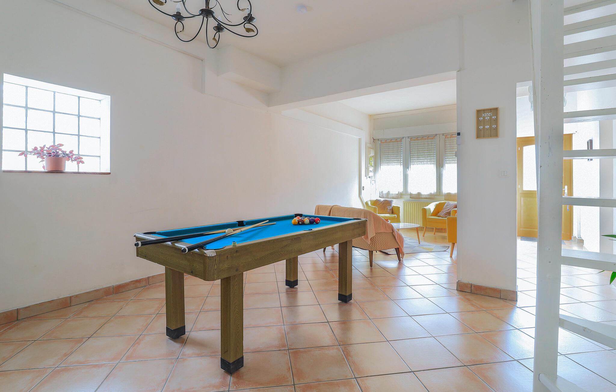 Tilbring en afslappende ferie i dette familievenlige feriehus, som tilbyder masser af plads til fælles tid og individuelle retræter. Ejendommen ligger i Hauts-de-France-regionen, nær den charmerende landsby Cassel. Gør det behageligt i den rummelige opholdsstue. Den lyse stue med sofaer, lænestole, TV og harmoniske farveaccenter lægger op til afslapning. Spil billard sammen eller nyd lange aftener ved spisebordet ved siden af ??pejsen. Det separate køkken har direkte adgang til haven.