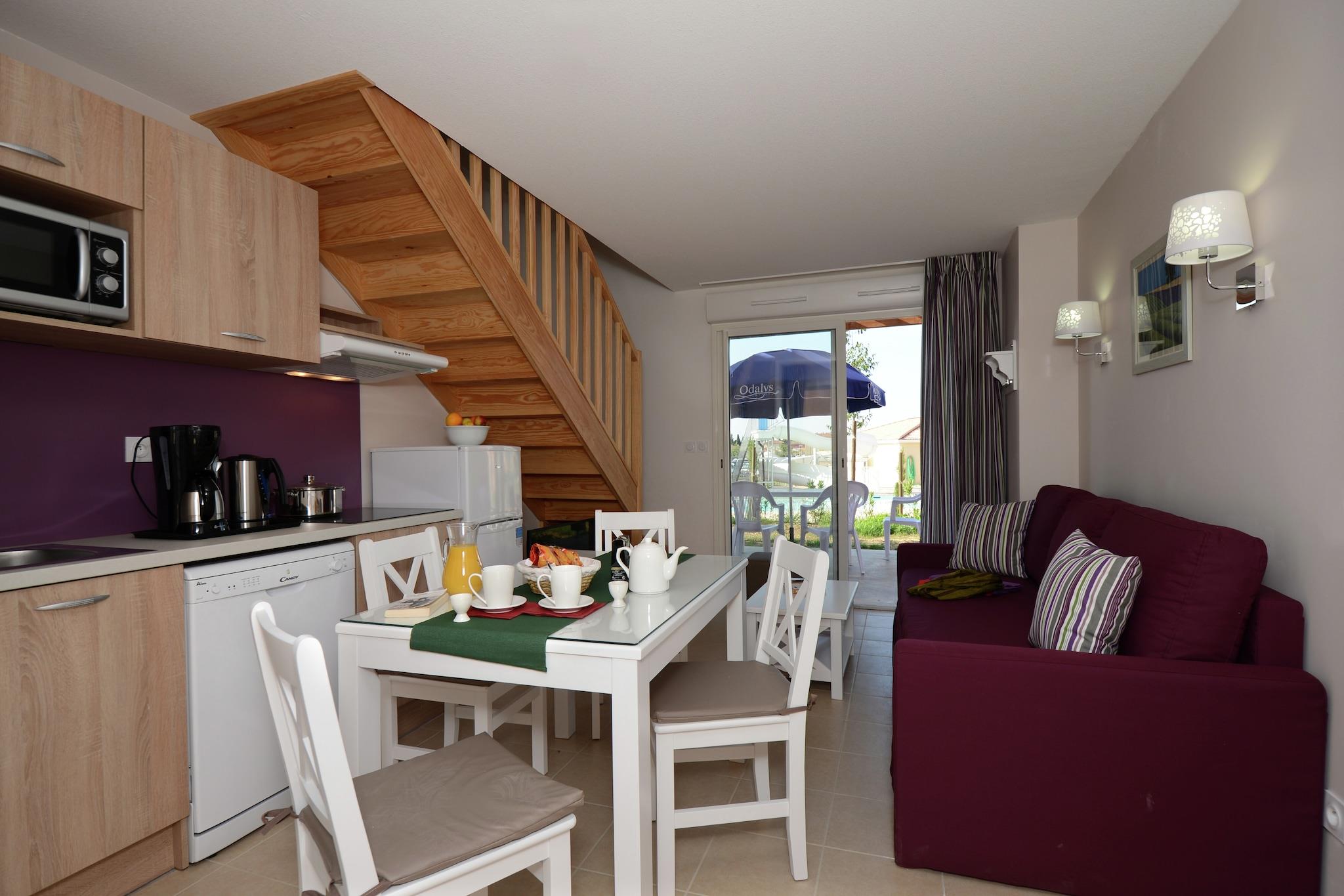 Stueetage: (tekøkken(komfur(Komfur med fire kogeplader, glaskeramisk), kaffemaskine, combi-mikroovn, opvaskemaskine , køleskab), Stue/soveværelse(dobbeltsovesofa), soveværelse(2x enkeltseng(90 x 190 cm)), badeværelse(bruser, toilet), terrasse, havemøbler) På 1. etage: (soveværelse(dobbeltseng(160 x 190 cm)), badeværelse(badekar), toilet) parkering, swimmingpool(deles med andre gæster, udendørs, opened from Apr upto and including Sep), swimmingpool(deles med andre gæster, opvarmet, overdækket)