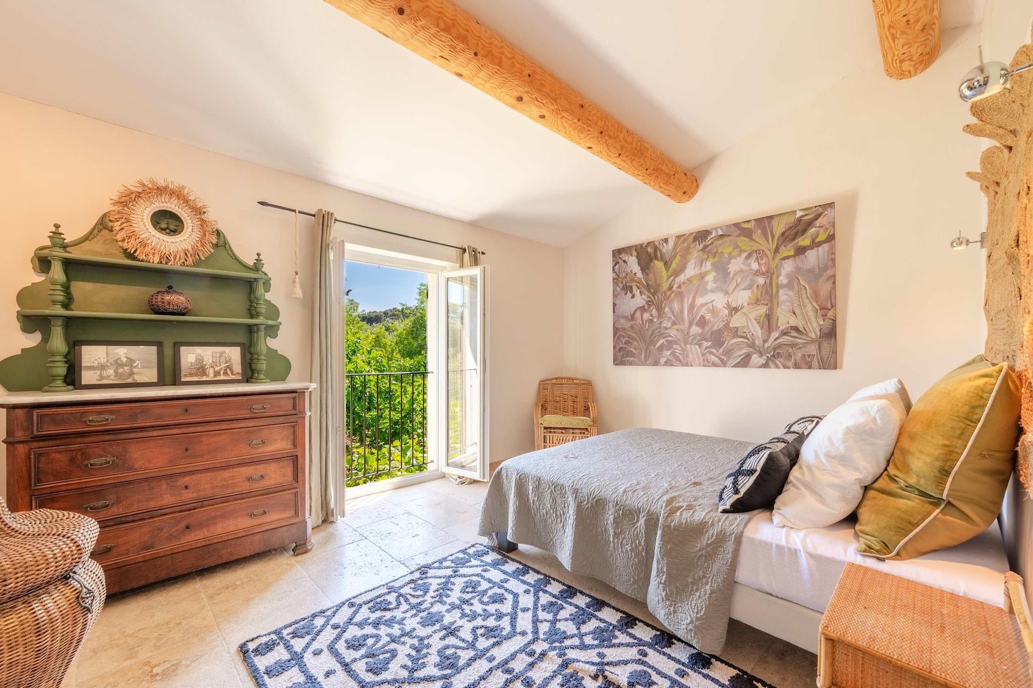 Flygt til de bølgende bakker i Alpilles og slå dig ned i denne fredelige villa i den rolige landsby Paradou, hvor olivenlunde, stenveje og provencalsk ro omgiver dig. Det er den ideelle base for dem, der ønsker at nyde vandreture på landet, landsbycharme - og stadig dele gode stunder med andre under ét tag. Når du træder ind, finder du et hjem bygget til en gruppe. Indenfor finder du en rummelig og charmerende åben opholdsstue med stue, spisestue og et fuldt udstyret køkken, et soveværelse med eget badeværelse. Når du går ovenpå, finder du et møbleret soveværelse med en queensize-seng og et tilhørende badeværelse, to soveværelser med henholdsvis en queensize-seng og to enkeltsenge, med et fælles badeværelse og toilet. Der er et separat gæsteværelse med en queensize-seng og et veludstyret badeværelse, et toilet og en lille have, der er forbundet med hovedhusets have, med adgang til poolen. Fordi du er i Paradou, er du ikke langt fra det hyggelige landsbyliv - på markedsdagen kan du slentre gennem de lokale boder, smage olivenolie, kigge i kunsthåndværksbutikker eller prøve en lille bys café. De nærliggende bakker i Alpilles byder på smukke vandre- eller cykelruter blandt krat, vinmarker og klippefyldte højderygge. For et sceneskift ligger historiske landsbyer, slotte, ruiner fra romertiden og gamle stenlandsbyer spredt i nærheden. Denne villa er mere end et sted at sove - det er en langsom og enkel start på Provence-kulturen - fælles måltider, stier på landet, rolige nætter og fælles grin. Fantastisk til venner, familier eller en gruppe, der ønsker komfort og frihed pakket ind i landlig charme.