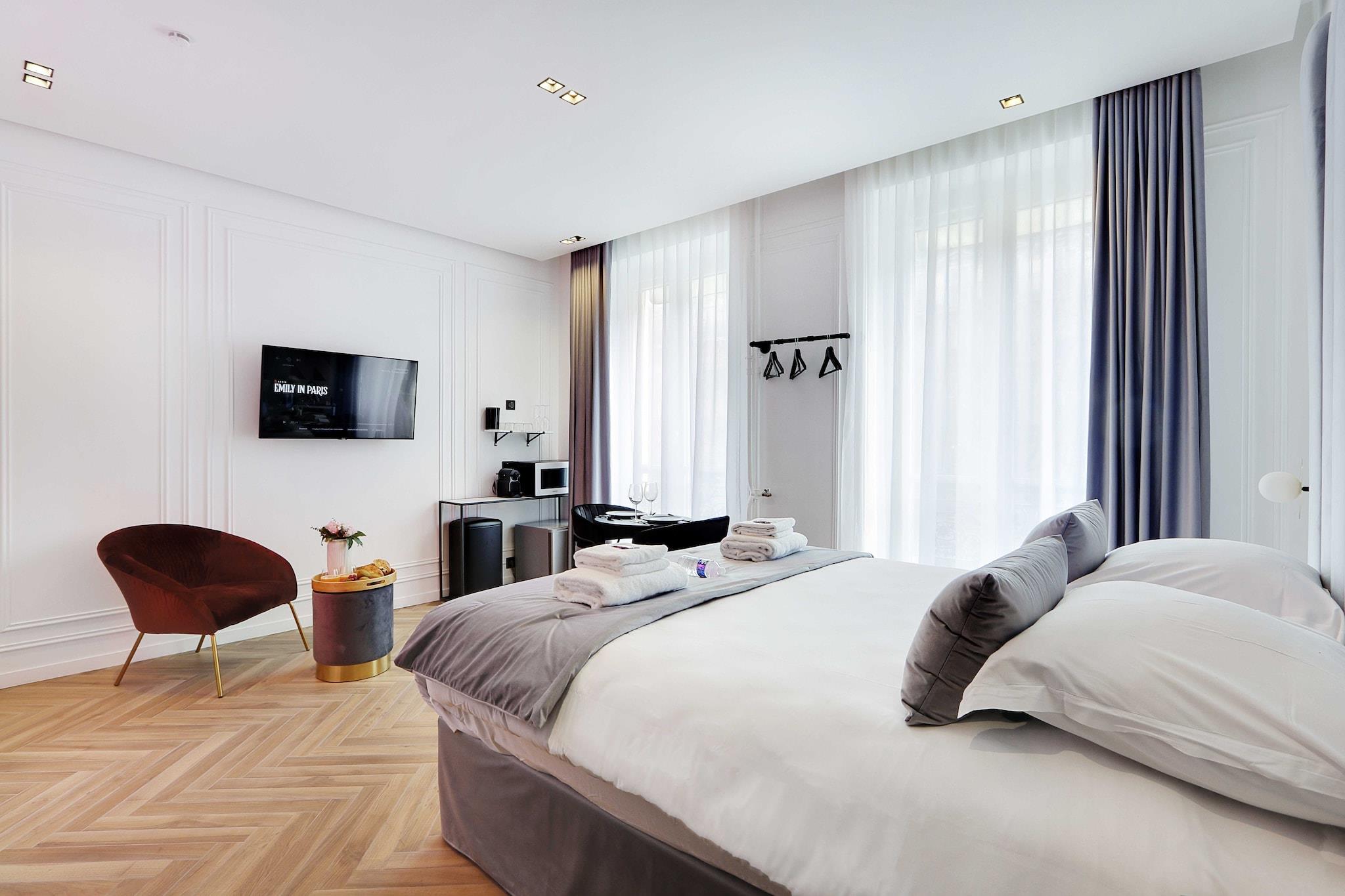 Fordyb dig i hjertet af den parisiske spænding med denne fantastiske suite til to personer med aircondition og jacuzzi, yderst godt placeret i det symbolske kvarter Rue de Rivoli. Forestil dig selv i dette moderne og raffinerede rum på 25 m², hvor du finder den privatliv og ro, du har brug for efter at have udforsket det berømte Marais-distrikt og Beaubourg centrum. Det er det ideelle sted for en uforglemmelig ferie i hovedstaden.
