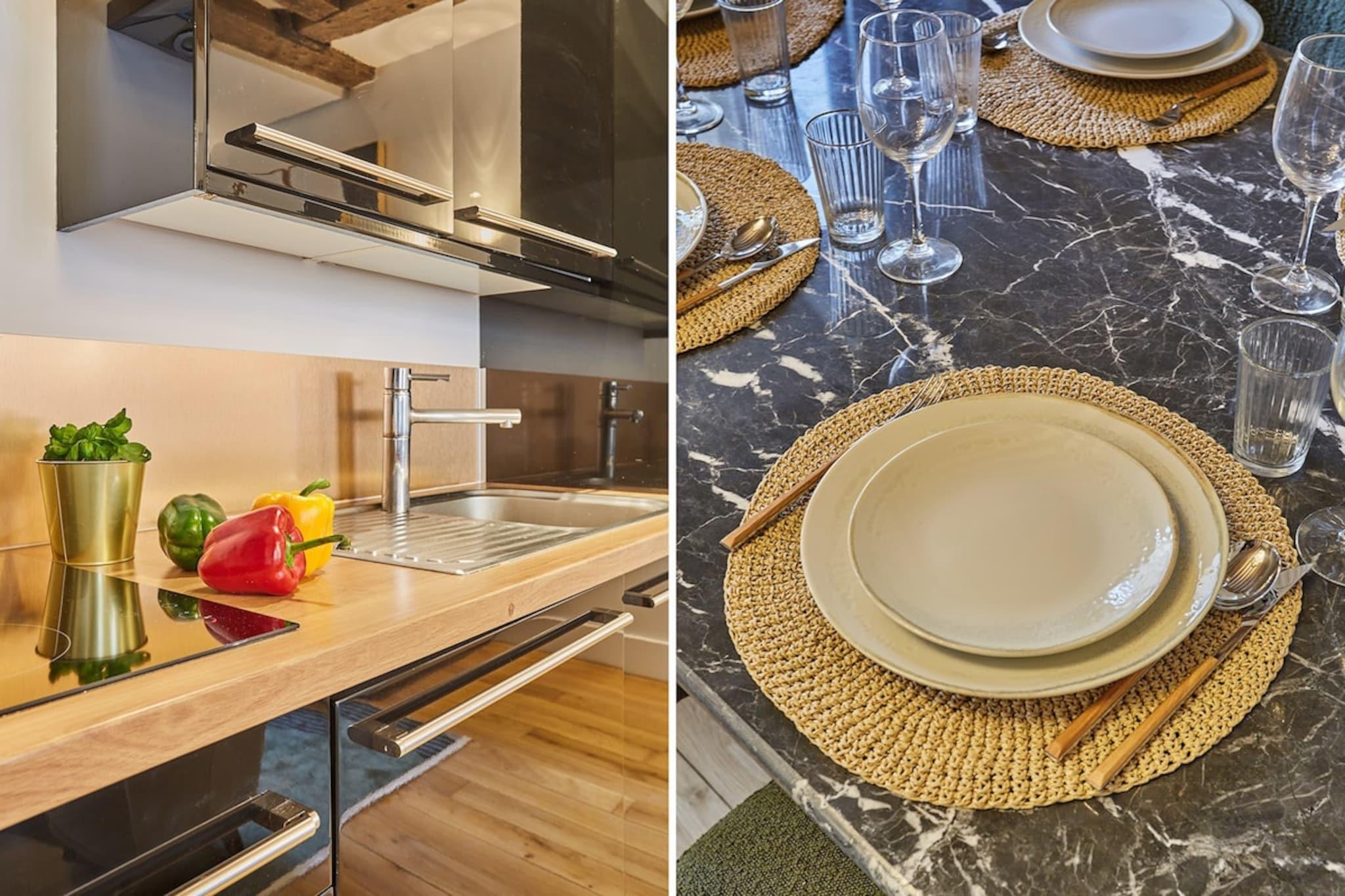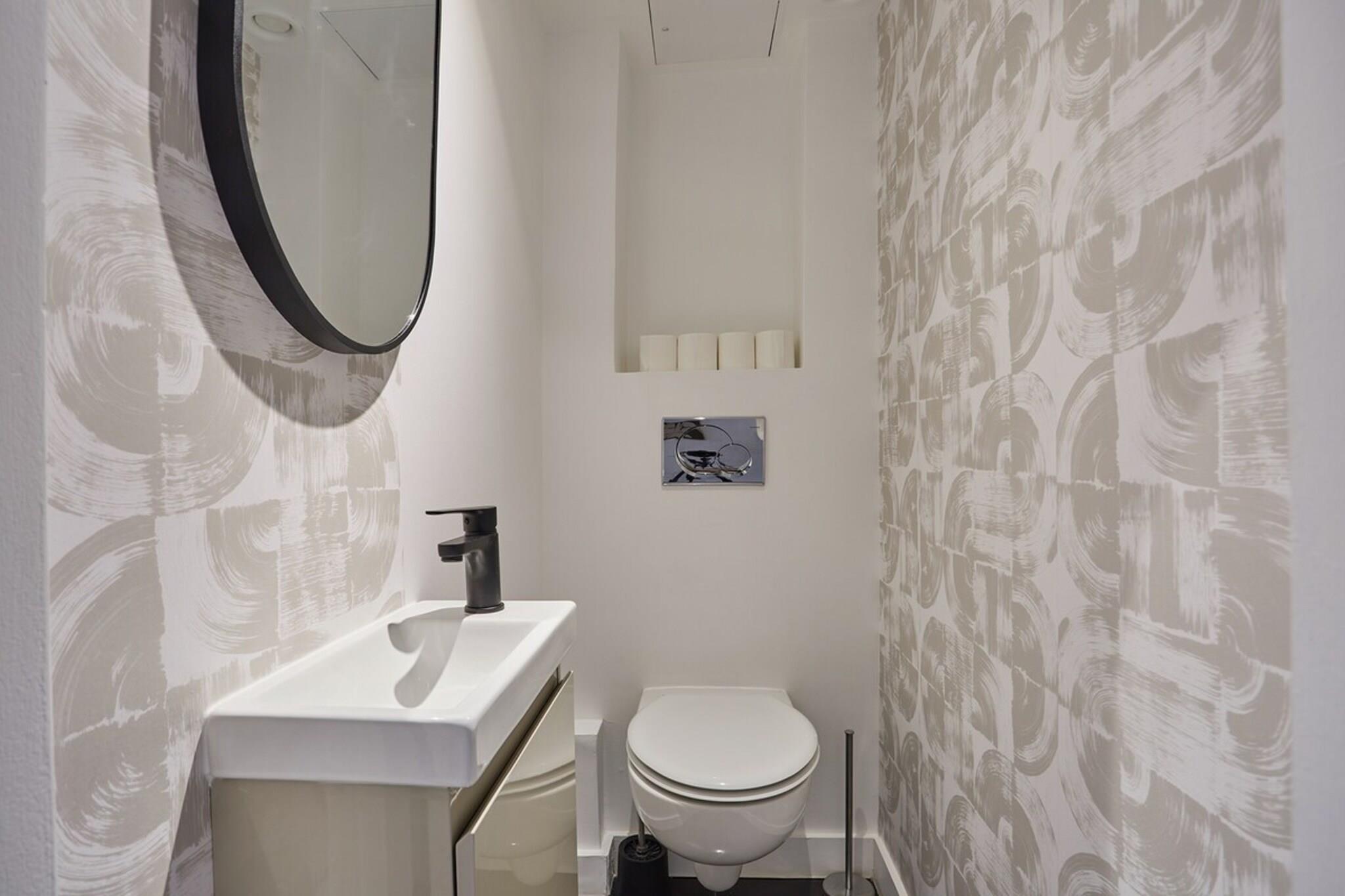 På 1. etage: , , , , , Stue(enkeltsovesofa), Køkken, soveværelse(Queen Bed), soveværelse(Queen Bed), badeværelse, badeværelse, Førstehjælp, Fjernsyn, spisebord, kakkelovn, elkedel, brødrister, kaffemaskine, ovn, mikrobølgeovn, opvaskemaskine , køleskab, fryser, tørretumbler, vaskemaskine, varme, strygejern, føntørrer, , , , , , , Baking sheet, Carbon monoxide detector, Coffee, Downtown, Shower gel, Wine glasses