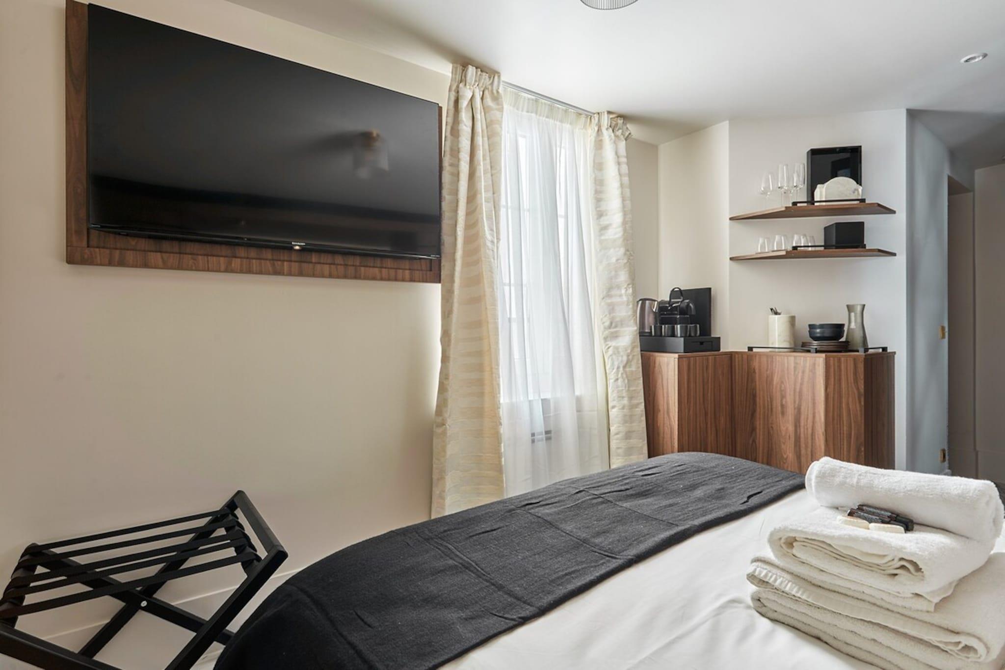 , , , Stue(Queen Bed), badeværelse(bruser, toilet), Førstehjælp, Fjernsyn, elkedel, brødrister, kaffemaskine, mikrobølgeovn, køleskab, tørretumbler, vaskemaskine, varme, klimaanlæg, strygejern, føntørrer, , , , , Carbon monoxide detector, Coffee, Downtown, Resort access, Shower gel, Wine glasses