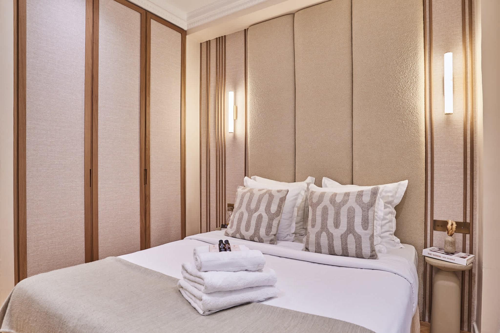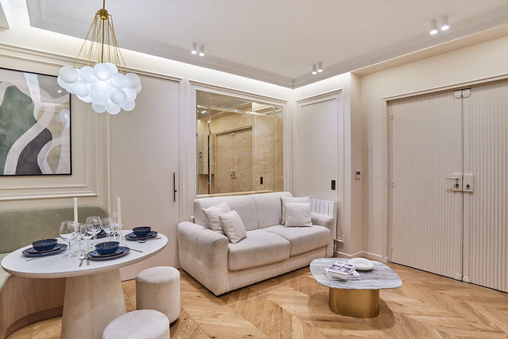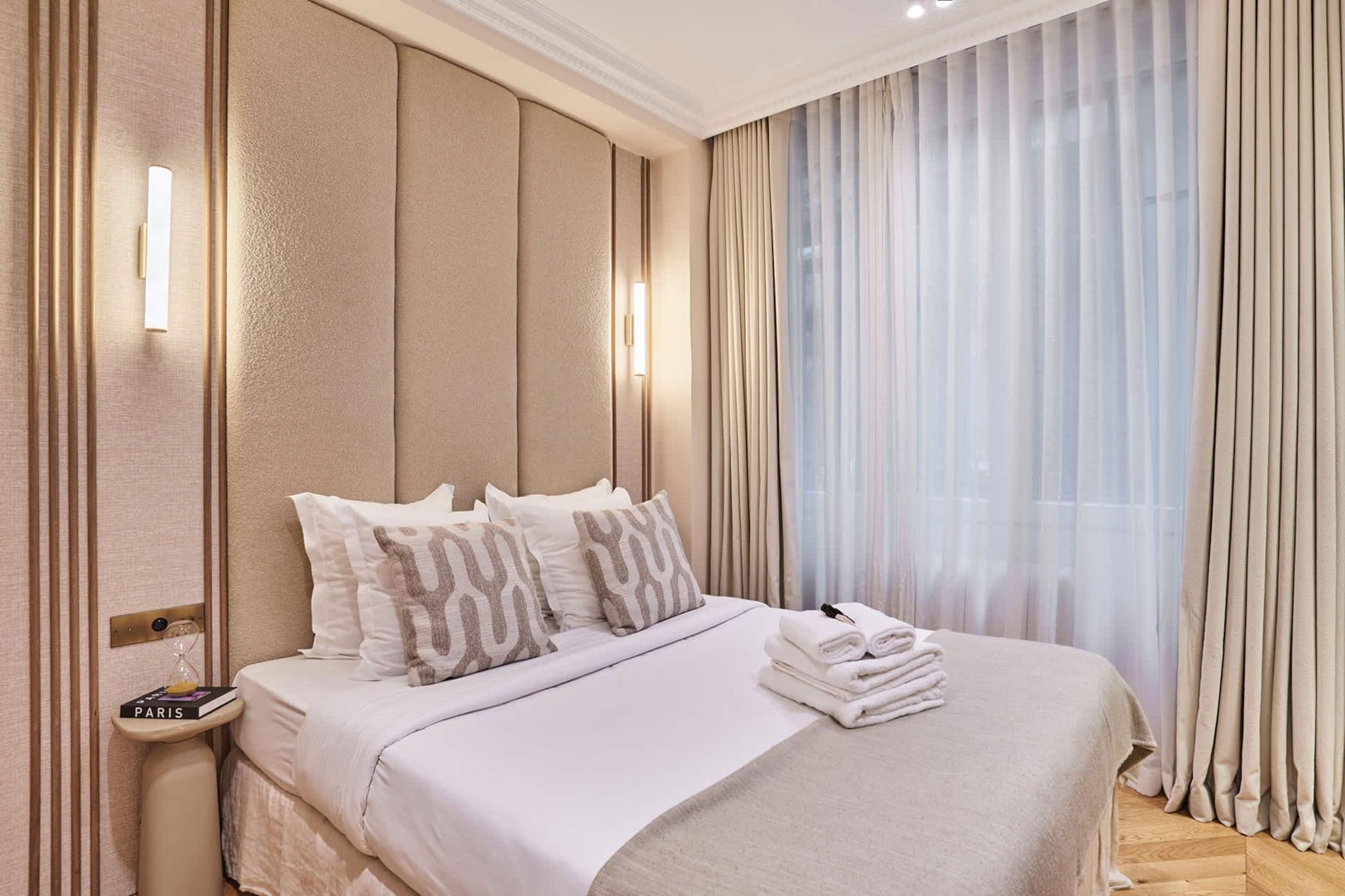 Luksuriøs lejlighed med aircondition i centrum af Paris, et stenkast fra Place de l'Opéra og Galeries Lafayette, mellem Place Vendôme, Rue de la Paix og Rue du Faubourg Saint Honoré. Du kan nå Louvre til fods på kun 9 minutter. Denne eksklusive lejlighed med 2 soveværelser og 2 badeværelser er elegant, moderne, fuldt udstyret og indrettet af anerkendte arkitekter, ideel til et vellykket ophold med familie eller venner.