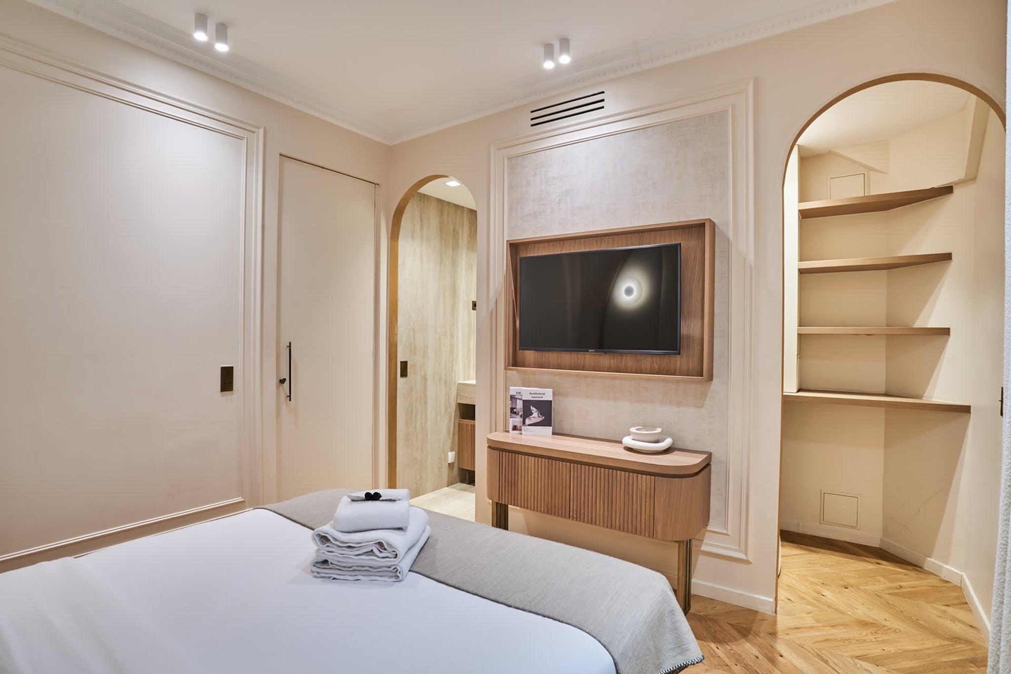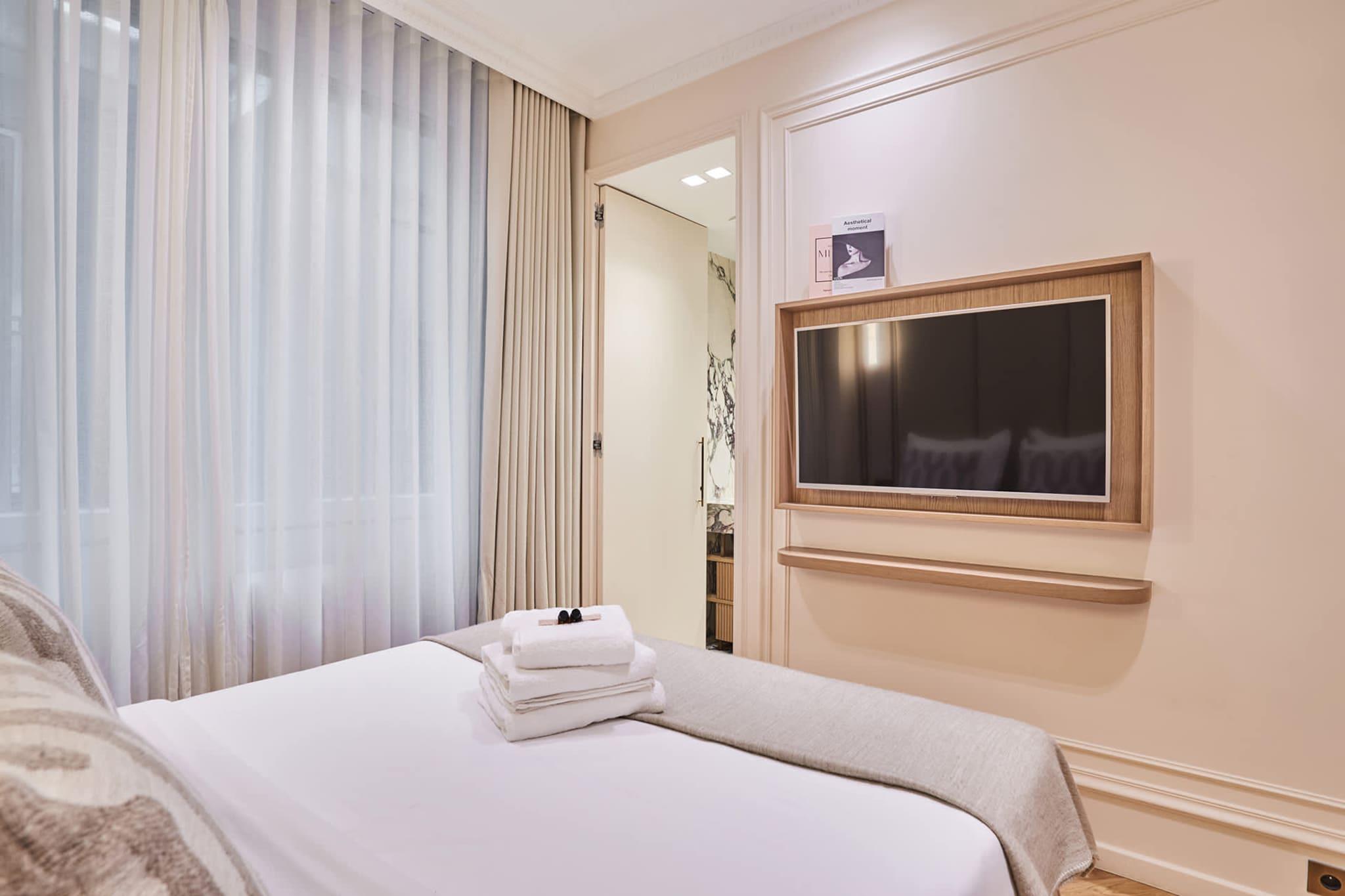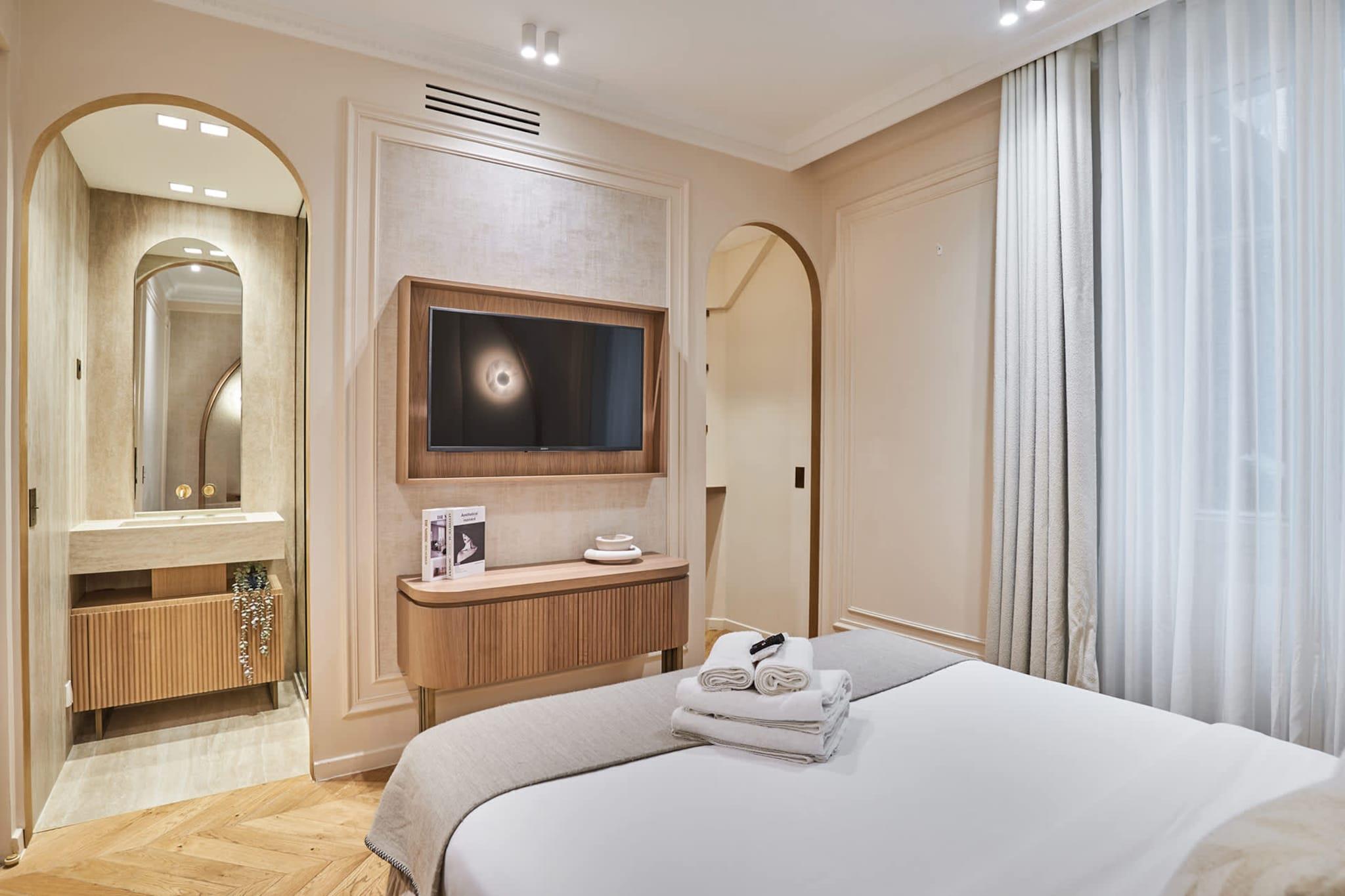 Luksuriøs lejlighed med aircondition i centrum af Paris, et stenkast fra Place de l'Opéra og Galeries Lafayette, mellem Place Vendôme, Rue de la Paix og Rue du Faubourg Saint Honoré. Du kan nå Louvre til fods på kun 9 minutter. Denne eksklusive lejlighed med 2 soveværelser og 2 badeværelser er elegant, moderne, fuldt udstyret og indrettet af anerkendte arkitekter, ideel til et vellykket ophold med familie eller venner.