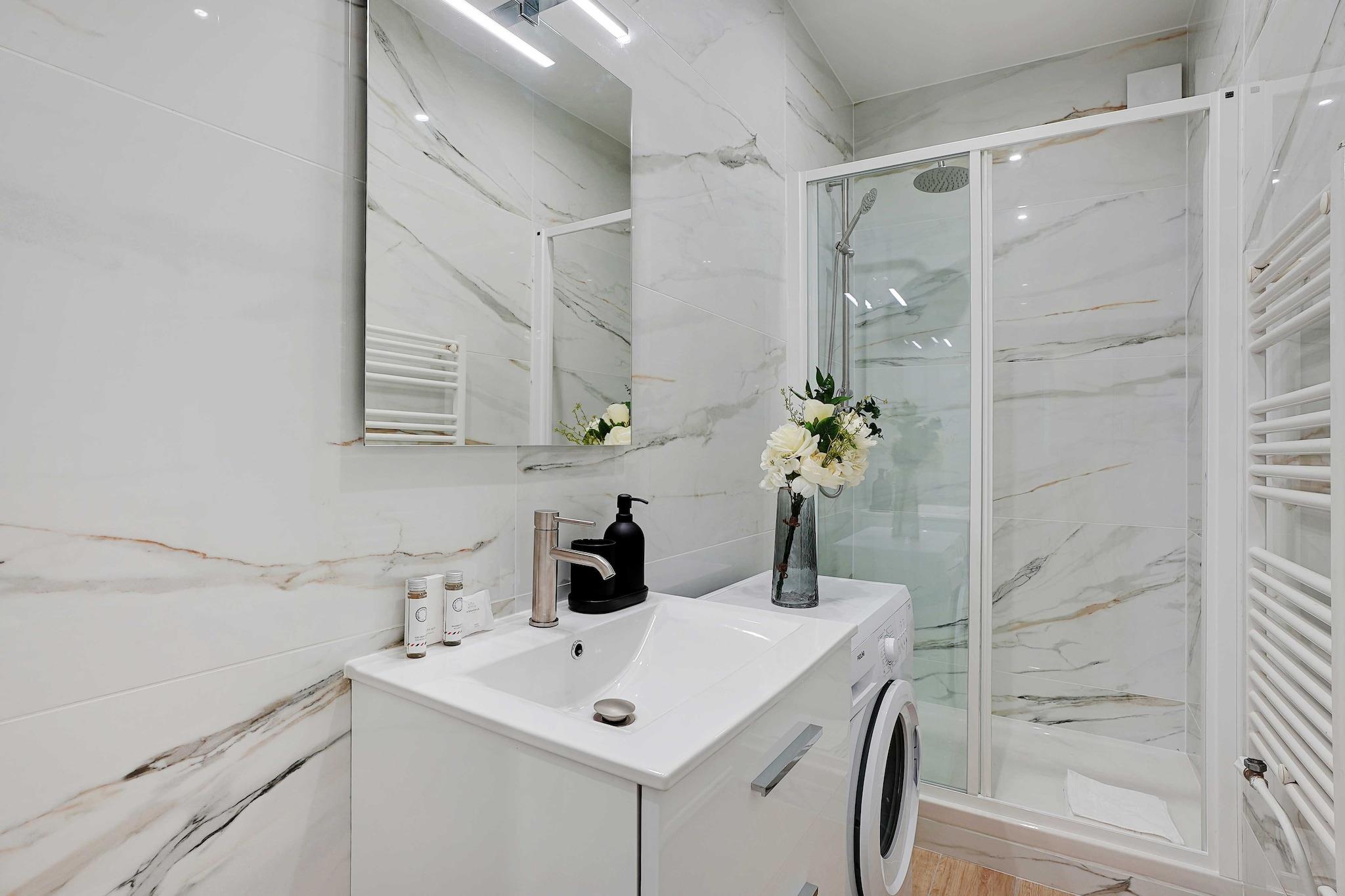 På 3. etage: (Stue(, , enkeltsovesofa, Fjernsyn), Køkken(kakkelovn, elkedel, brødrister, kaffemaskine, ovn, mikrobølgeovn, opvaskemaskine , køleskab, ), soveværelse(dobbeltseng), soveværelse(dobbeltseng), soveværelse(dobbeltseng), badeværelse(bruser, toilet, føntørrer, Håndklæder/sengelinned (inkl.), )) , , , vaskemaskine, balkon eller terrasse, varme, strygejern, , ,