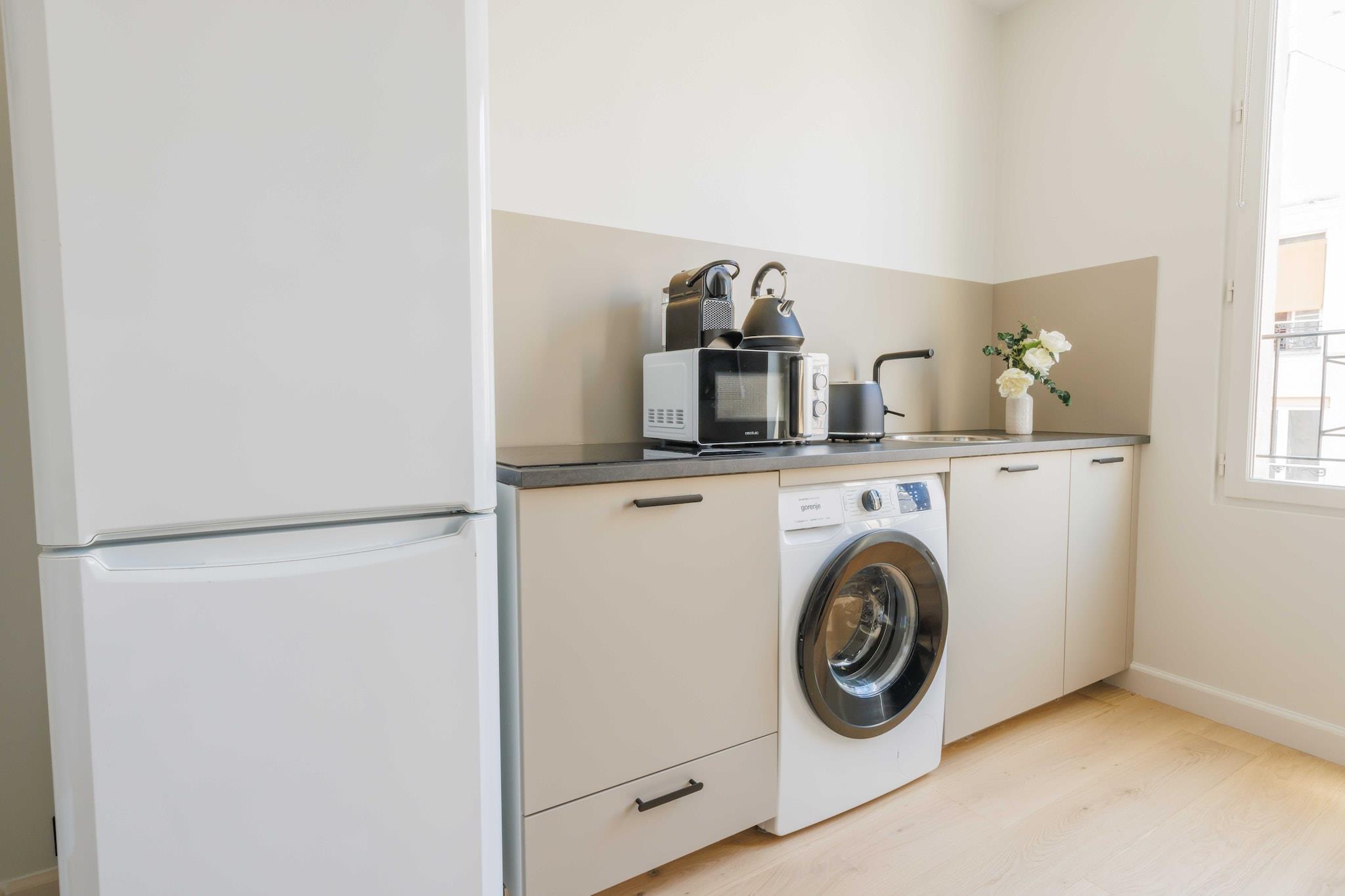 På 4. etage: (Stue(Fjernsyn, varme), Køkken(kakkelovn, elkedel, brødrister, kaffemaskine(espresso), mikrobølgeovn, køleskab, håndvask, elektriske kogeplader, , , Wine glasses), soveværelse(, , varme, crib(free), Queen Bed), badeværelse(bruser, håndvask, strygebræt, strygejern, føntørrer, , )) , , Førstehjælp, Legeområde, vaskemaskine, Håndklæder/sengelinned (inkl.), , , Carbon monoxide detector, Cleaning Disinfection, Downtown, Enhanced cleaning practices, High touch surfaces disinfected, Long term stays allowed, Town