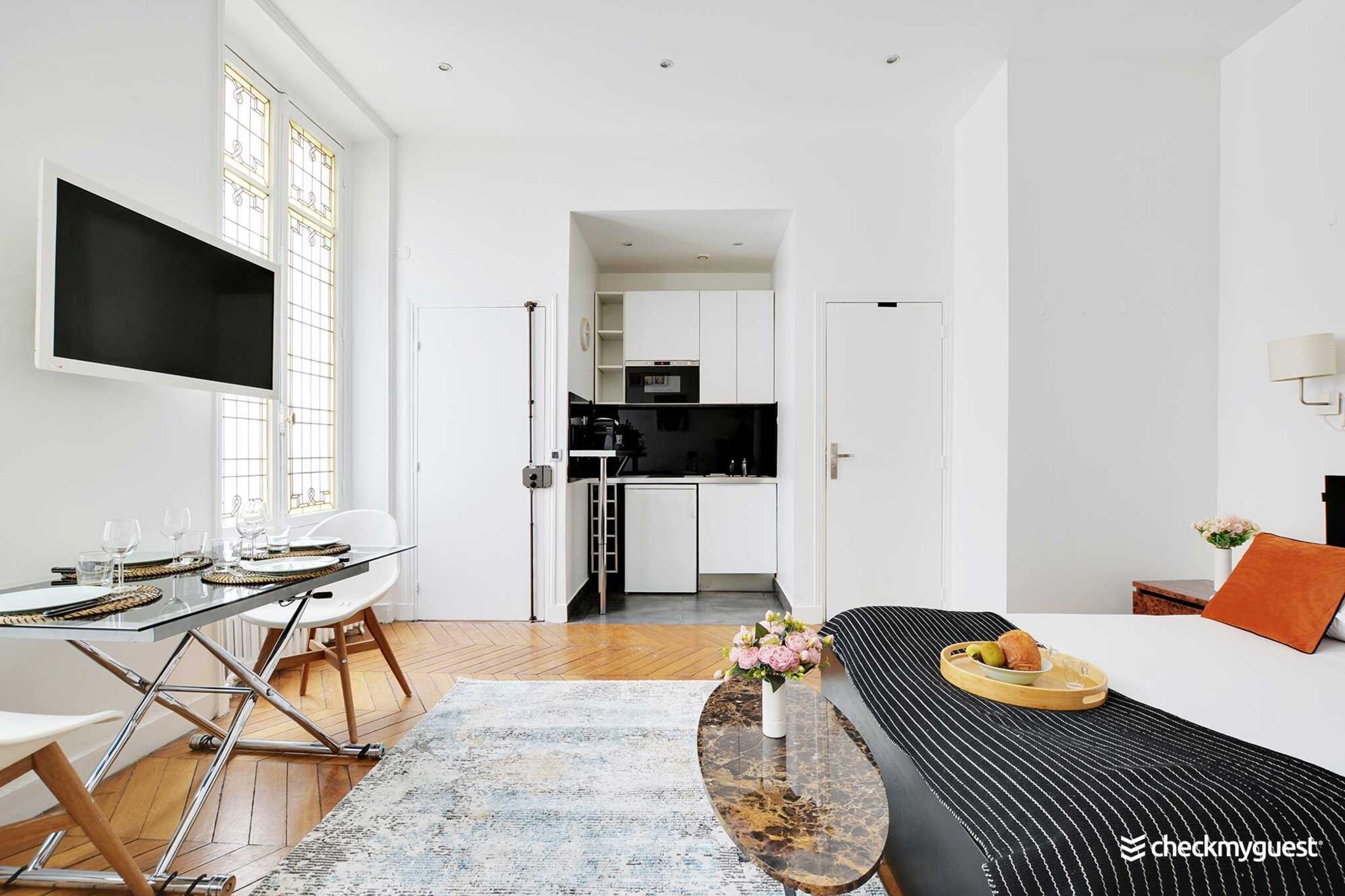 Stueetage: (åbent køkken(kakkelovn, elkedel, brødrister, kaffemaskine, mikrobølgeovn, køleskab, , ), Stue/soveværelse(, enkeltsovesofa, dobbeltseng, Fjernsyn, spisebord), badeværelse(bruser, toilet, føntørrer, Håndklæder/sengelinned (inkl.), )) , , tørretumbler, vaskemaskine, varme, strygejern, , Carbon monoxide detector, Cleaning Disinfection, Downtown, Enhanced cleaning practices, High touch surfaces disinfected, Long term stays allowed, Town, Washer in common space
