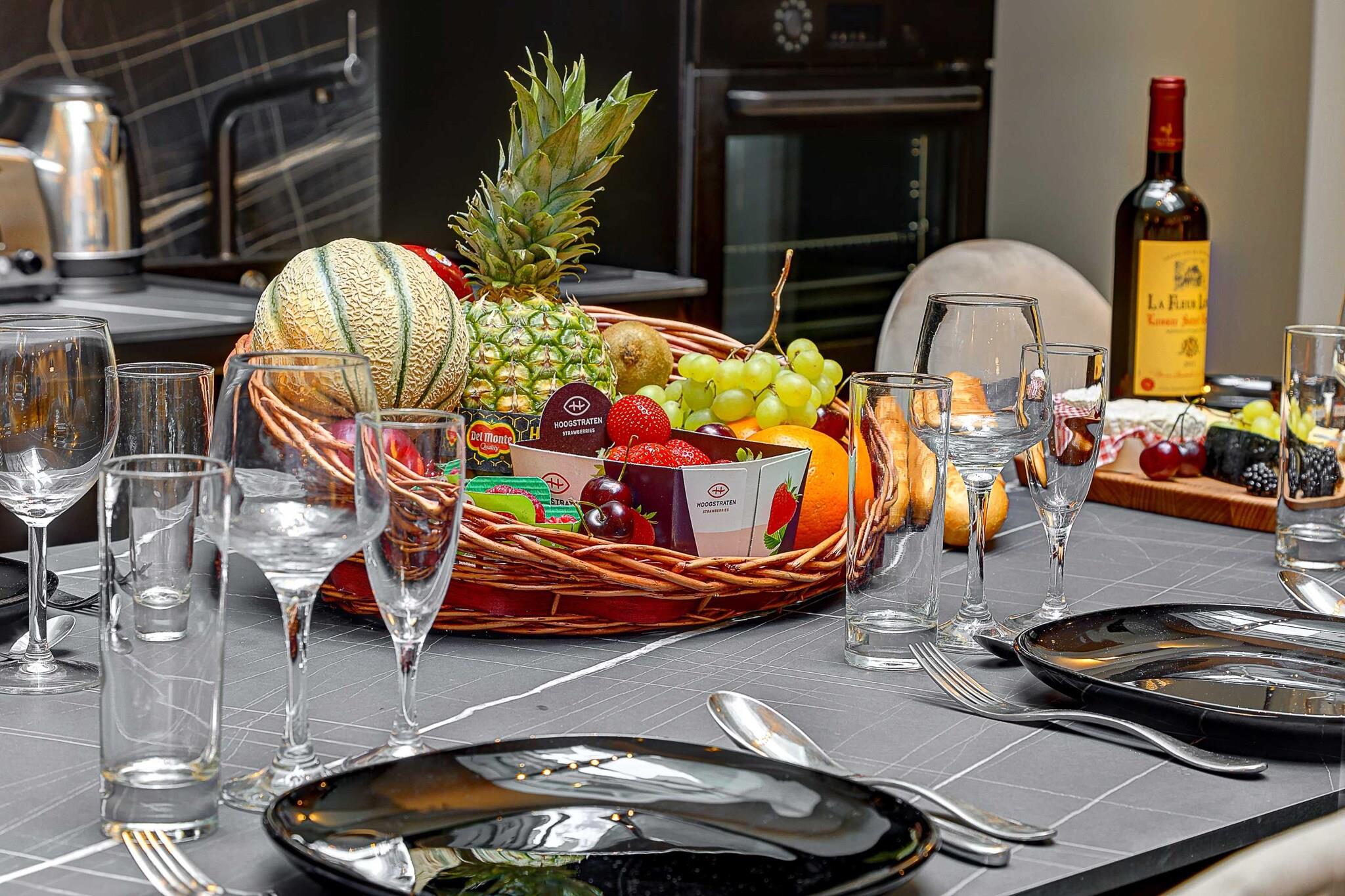 Stueetage: (Stue(, stereoanlæg, klimaanlæg), Stue(enkeltsovesofa, enkeltsovesofa, Fjernsyn, spisebord), Køkken(kakkelovn, elkedel, brødrister, kaffemaskine, ovn, mikrobølgeovn, opvaskemaskine , køleskab, , ), soveværelse(, , Fjernsyn, Queen Bed), soveværelse(Fjernsyn, Queen Bed), soveværelse(Fjernsyn, Queen Bed), badeværelse(bruser, håndvask, toilet, vaskemaskine, Håndklæder/sengelinned (inkl.)), badeværelse(bruser, håndvask, toilet, føntørrer, Håndklæder/sengelinned (inkl.)), badeværelse(tørretumbler, bruser, håndvask, toilet, Håndklæder/sengelinned (inkl.))) , varme, strygejern, , , Carbon monoxide detector, Cleaning Disinfection, Downtown, Enhanced cleaning practices, High touch surfaces disinfected, Long term stays allowed, Path to entrance lit at night, Room-darkening shades, Town, Wide doorway, Wide hallway clearance