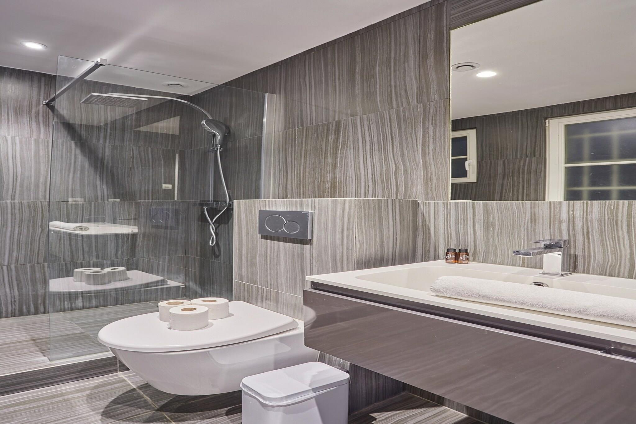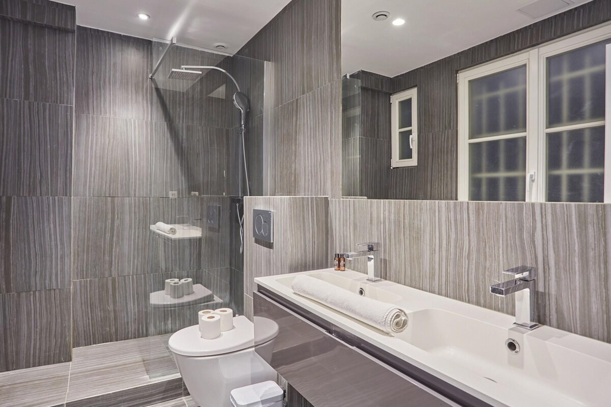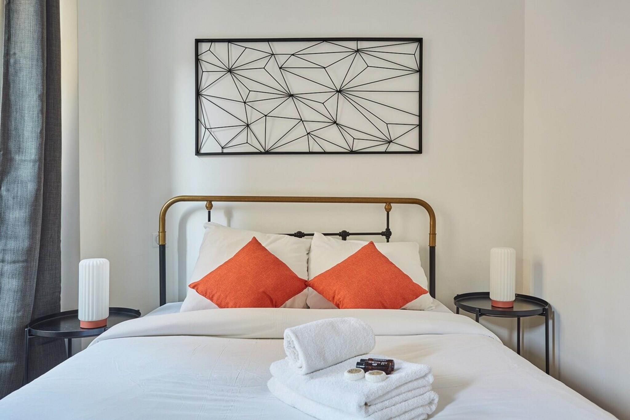 På 1. etage: (Stue(dobbeltsovesofa), Køkken(spisebord, elkedel, brødrister, kaffemaskine, mikrobølgeovn, køleskab, fryser, varme, , , Baking sheet, Wine glasses), soveværelse(dobbeltseng), soveværelse(dobbeltseng), badeværelse(bruser, toilet), badeværelse(bruser, toilet)) , , , Førstehjælp, Fjernsyn, tørretumbler, vaskemaskine, strygejern, føntørrer, , , Carbon monoxide detector, Cleaning products, Coffee, Downtown, Extra pillows and blankets, Room-darkening shades, Shower gel