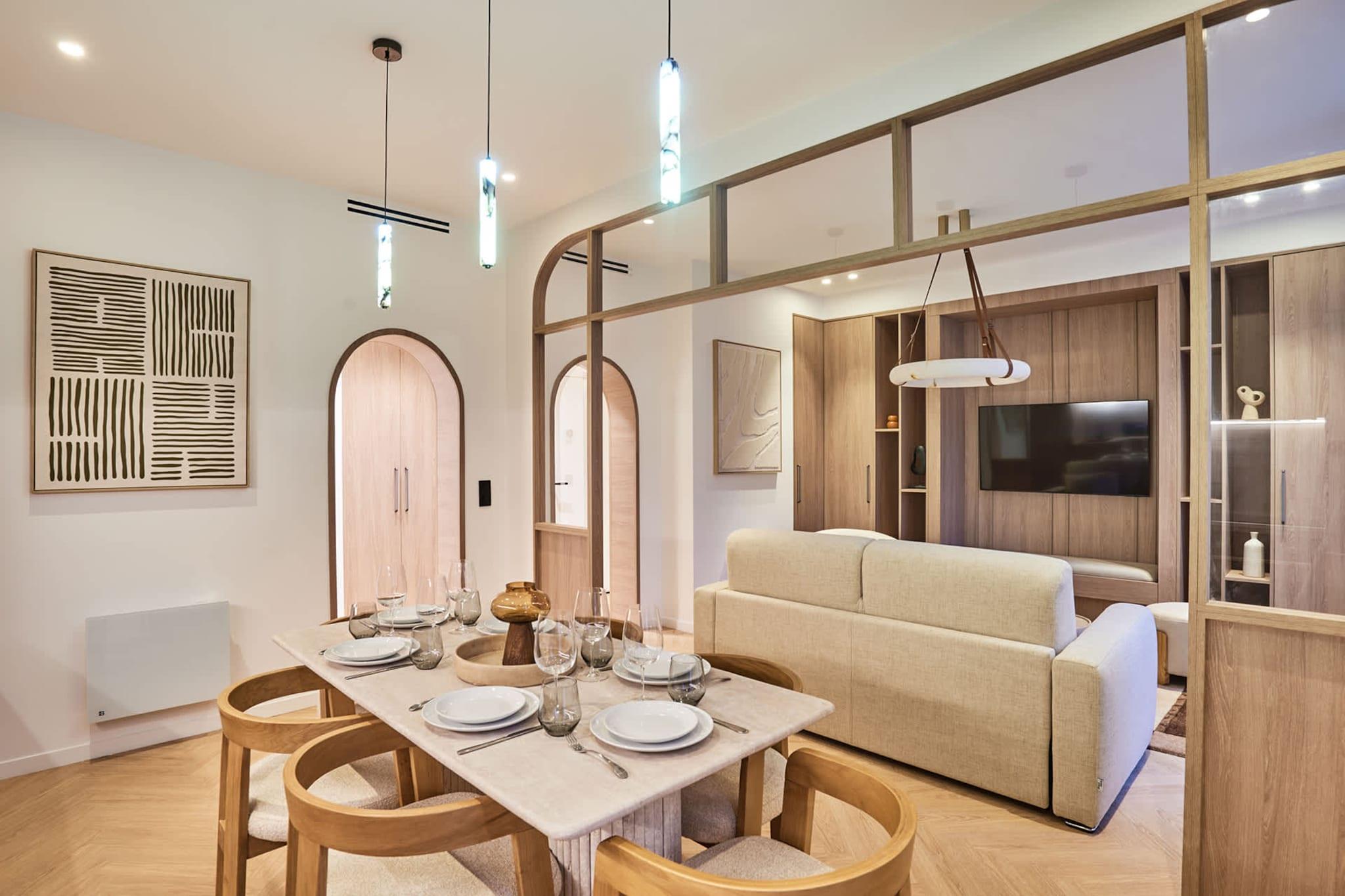 Denne overdådige lejlighed med aircondition ligger på Boulevard Saint-Michel, en symbolsk færdselsåre i hjertet af Paris. Dette område, rigt på historie og kultur, tilbyder en uforglemmelig oplevelse for besøgende fra hele verden. Min topmoderne, fuldt udstyrede lejlighed, smagfuldt indrettet af professionelle, er ideel til en vellykket parisisk ferie med familie eller venner.
