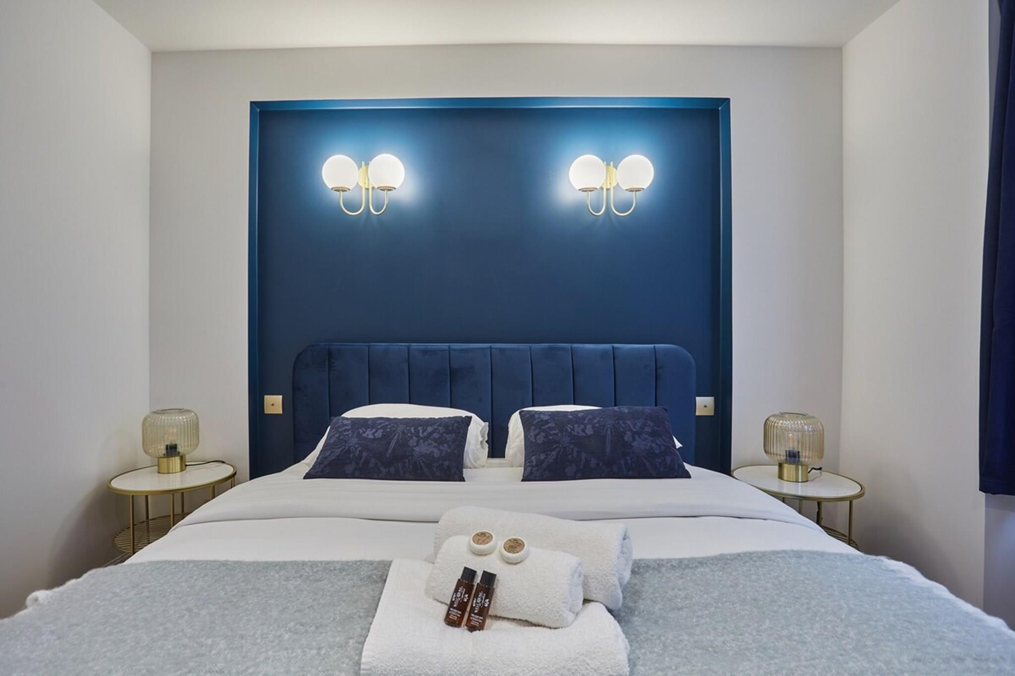 På 1. etage: (Stue(dobbeltsovesofa), Køkken(spisebord, elkedel, brødrister, kaffemaskine, mikrobølgeovn, køleskab, fryser, varme, , , Baking sheet, Wine glasses), soveværelse(Queen Bed), soveværelse(Queen Bed), badeværelse(bruser), badeværelse(bruser), toilet(toilet)) , , , Førstehjælp, Fjernsyn, tørretumbler, vaskemaskine, strygejern, føntørrer, , , Carbon monoxide detector, Cleaning products, Coffee, Downtown, Extra pillows and blankets, Room-darkening shades, Shower gel